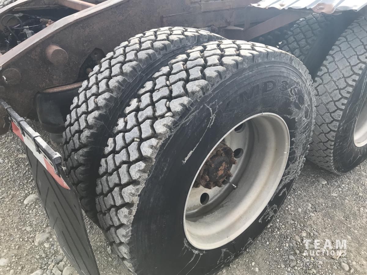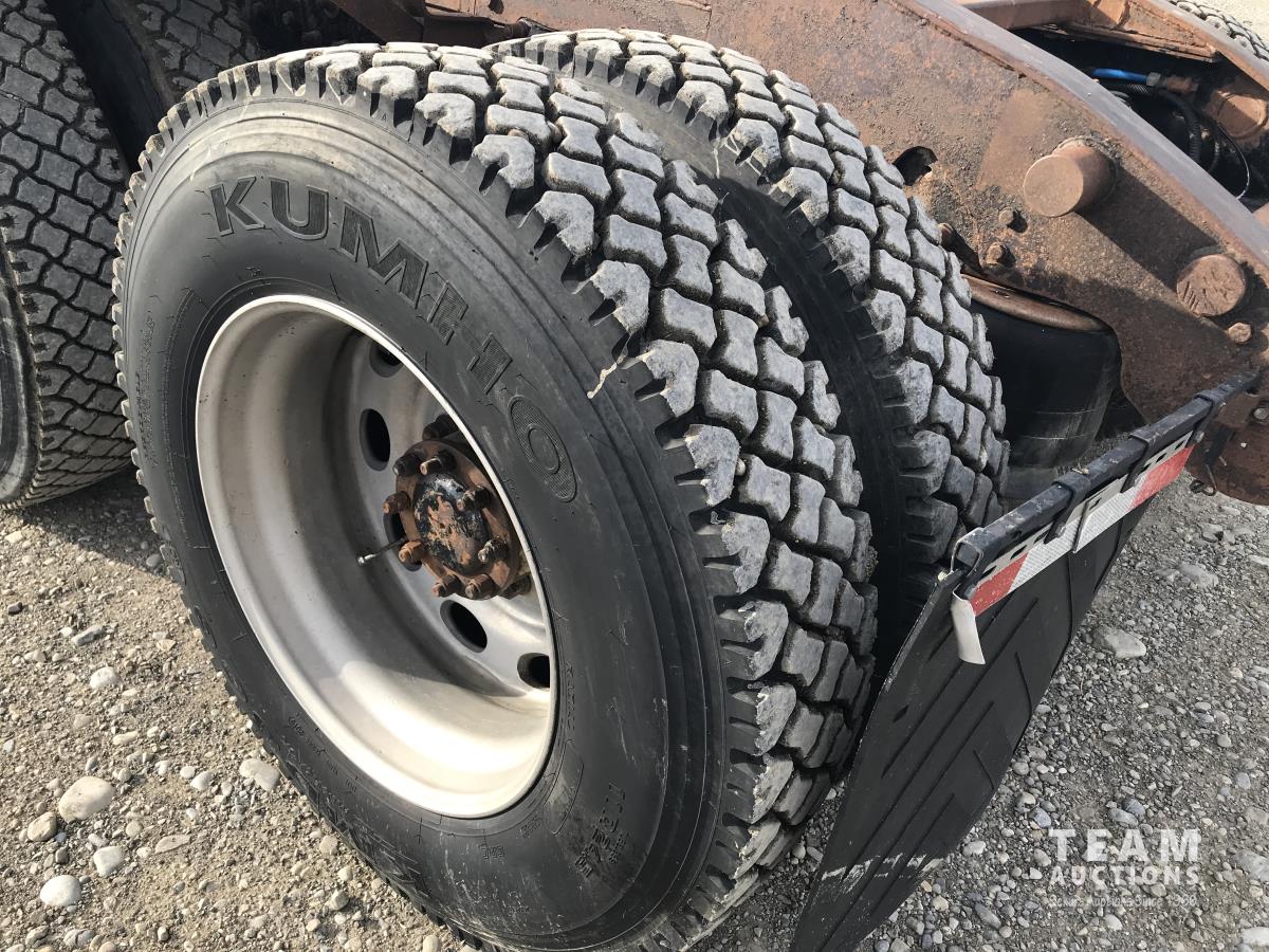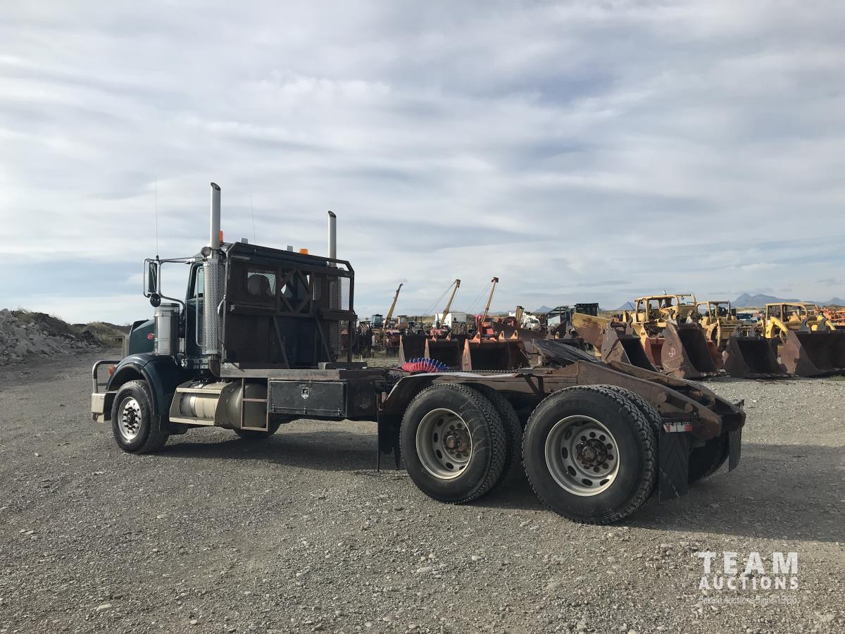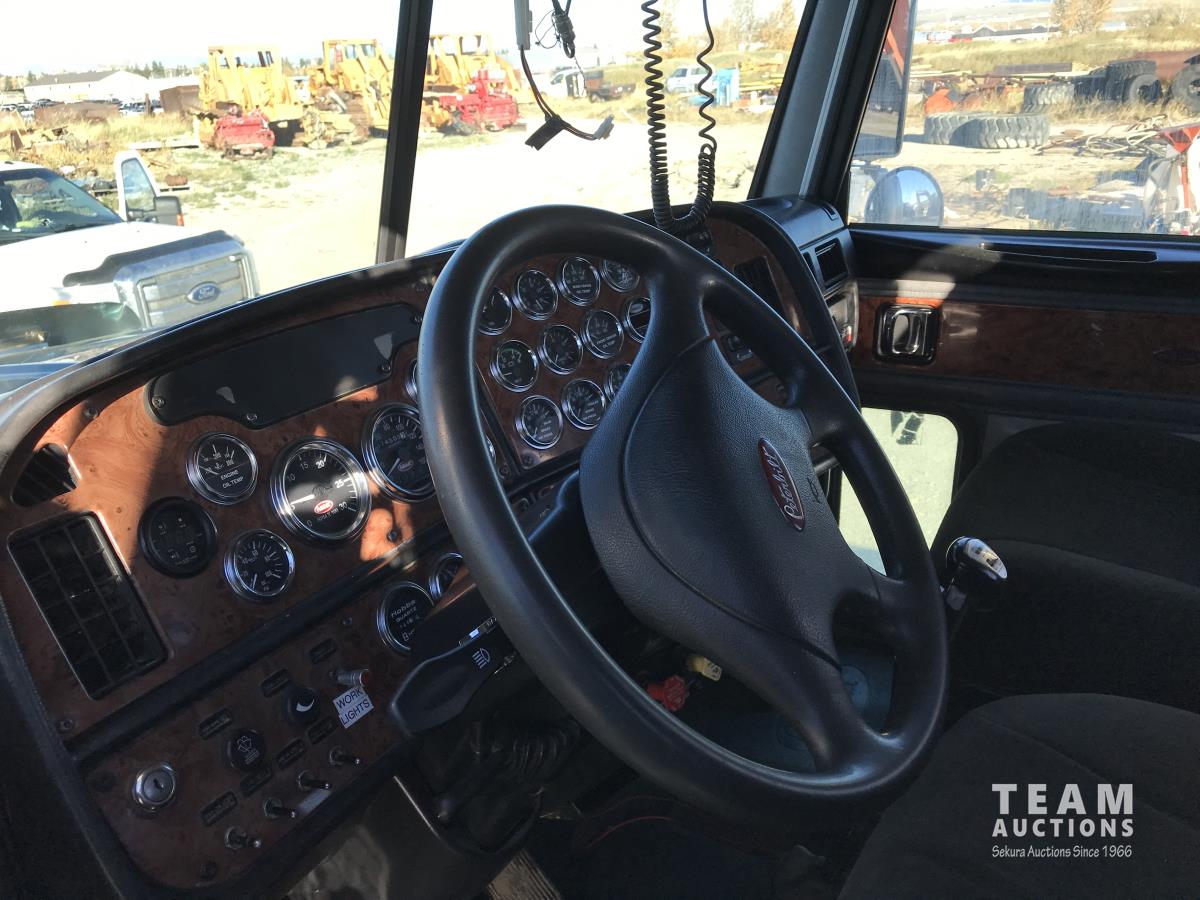 Caterpillar C15 6 cylinder 475 HP engine, engine brake, Eaton Fuller RTLO18918B 18 speed manual transmission, A/C, cruise control, air ride driver seat, Aliarc moose bumper, headache rack, tool boxes, 92 inch x 79 inch deck, beacons, air ride cab, chain holders, air ride suspension, 20,000 lb front axle, 46,000 lb rear axles, full lockers, 4.10 ratio, 244 inch WB, all aluminum wheels, 385/65R22.5 front tires, 11R24.5 rear tires