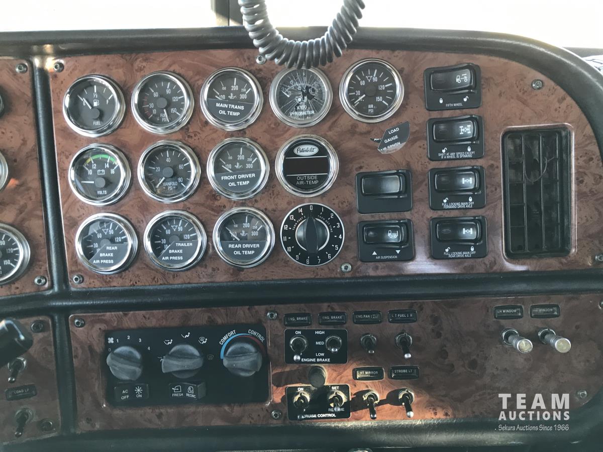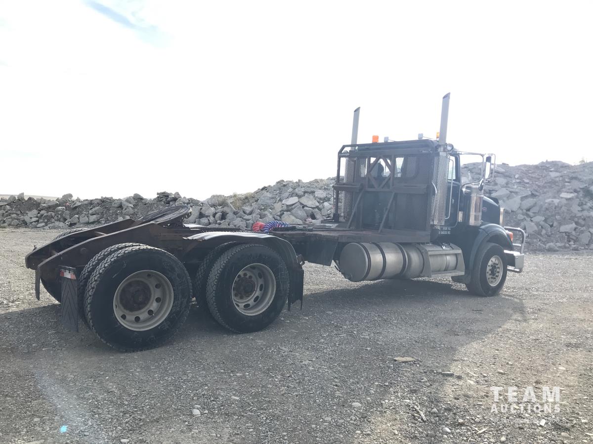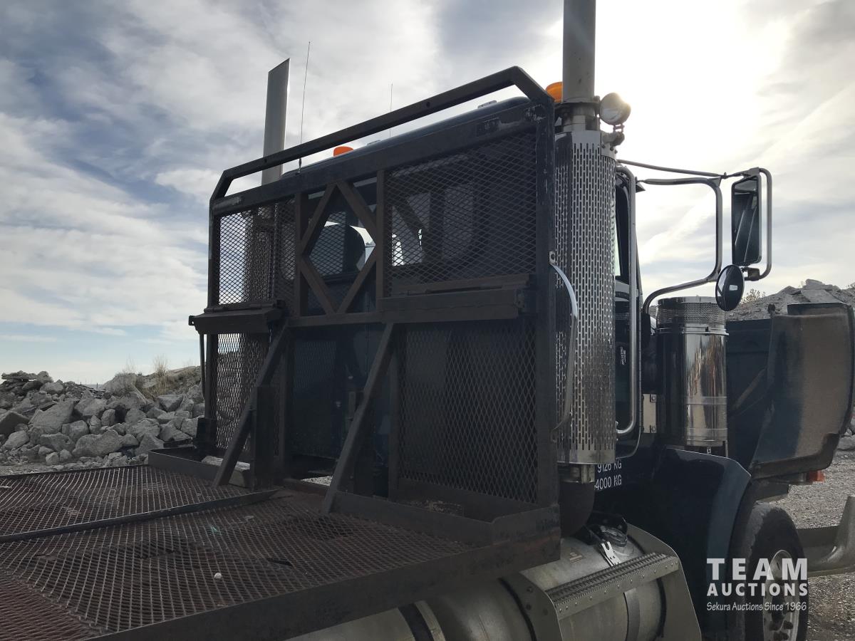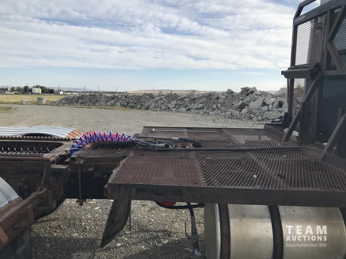 Caterpillar C15 6 cylinder 475 HP engine, engine brake, Eaton Fuller RTLO18918B 18 speed manual transmission, A/C, cruise control, air ride driver seat, Aliarc moose bumper, headache rack, tool boxes, 92 inch x 79 inch deck, beacons, air ride cab, chain holders, air ride suspension, 20,000 lb front axle, 46,000 lb rear axles, full lockers, 4.10 ratio, 244 inch WB, all aluminum wheels, 385/65R22.5 front tires, 11R24.5 rear tires
