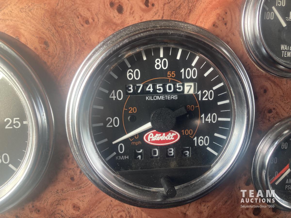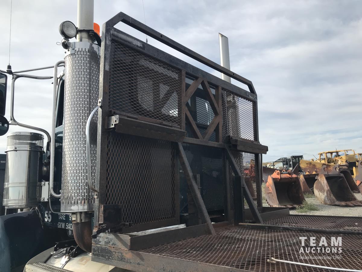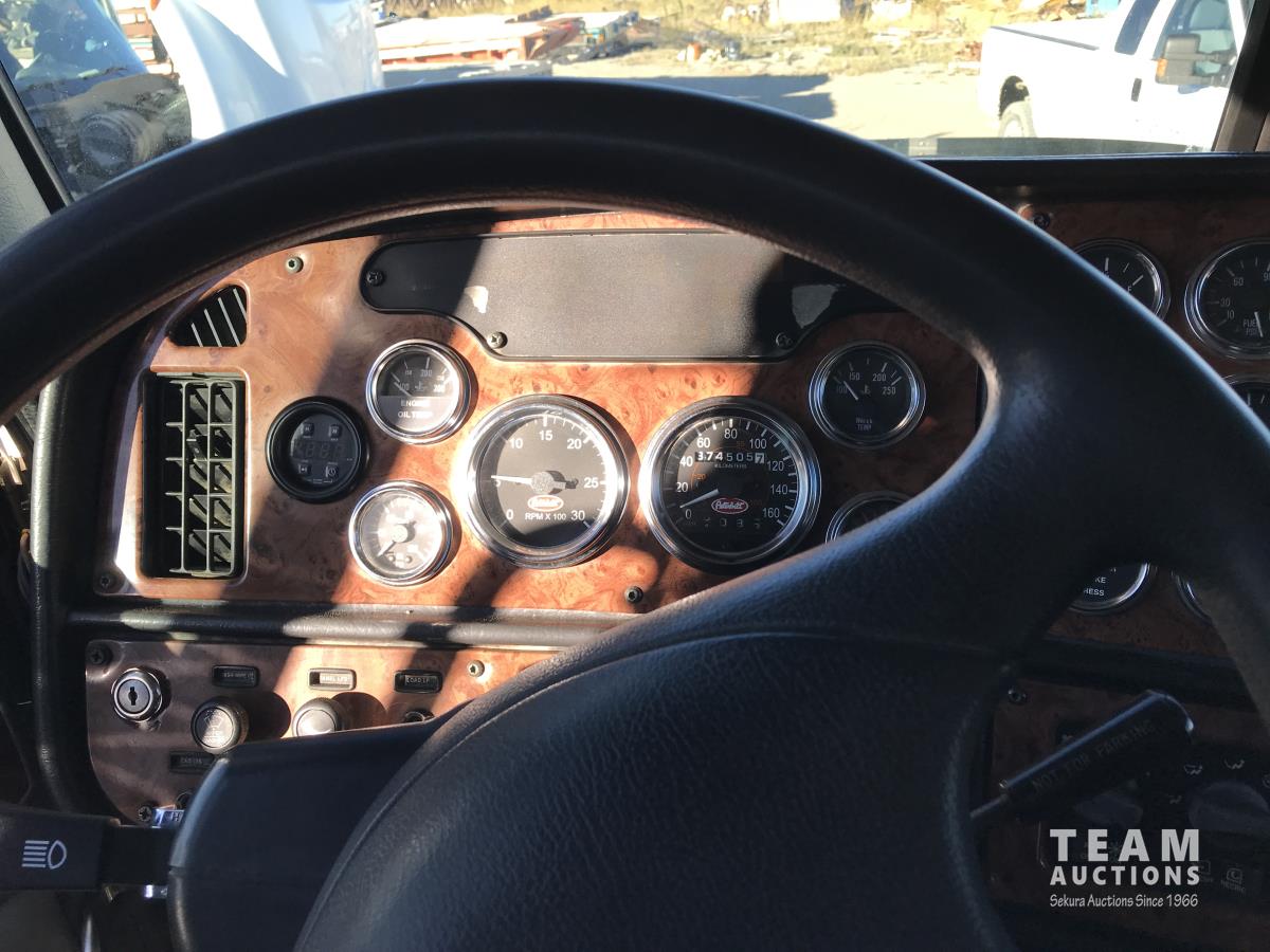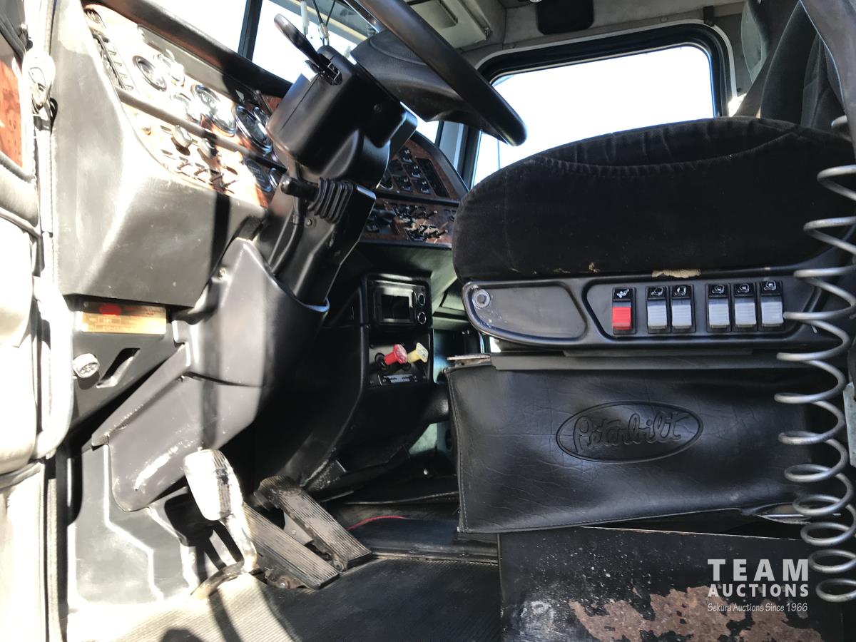 Caterpillar C15 6 cylinder 475 HP engine, engine brake, Eaton Fuller RTLO18918B 18 speed manual transmission, A/C, cruise control, air ride driver seat, Aliarc moose bumper, headache rack, tool boxes, 92 inch x 79 inch deck, beacons, air ride cab, chain holders, air ride suspension, 20,000 lb front axle, 46,000 lb rear axles, full lockers, 4.10 ratio, 244 inch WB, all aluminum wheels, 385/65R22.5 front tires, 11R24.5 rear tires