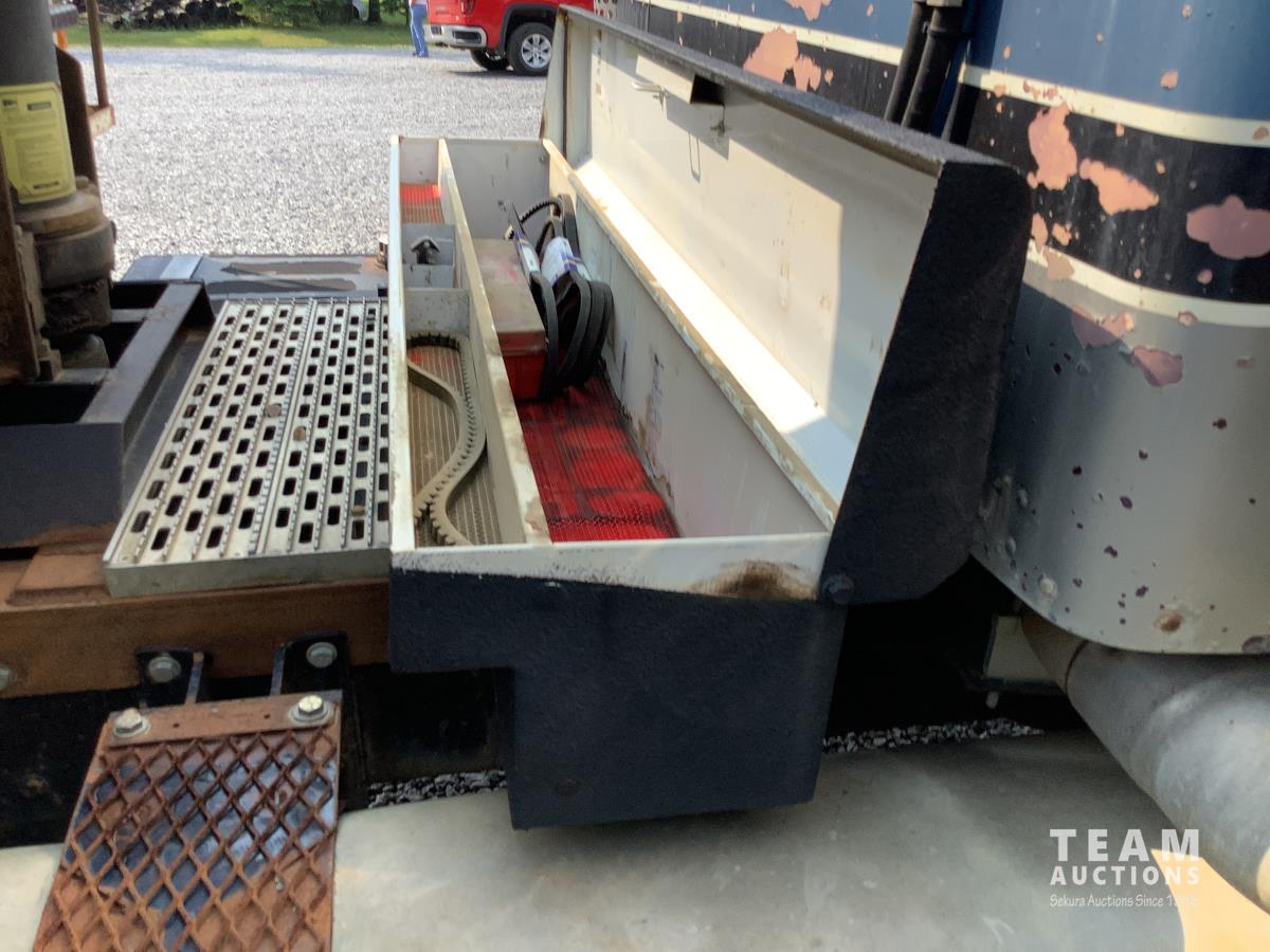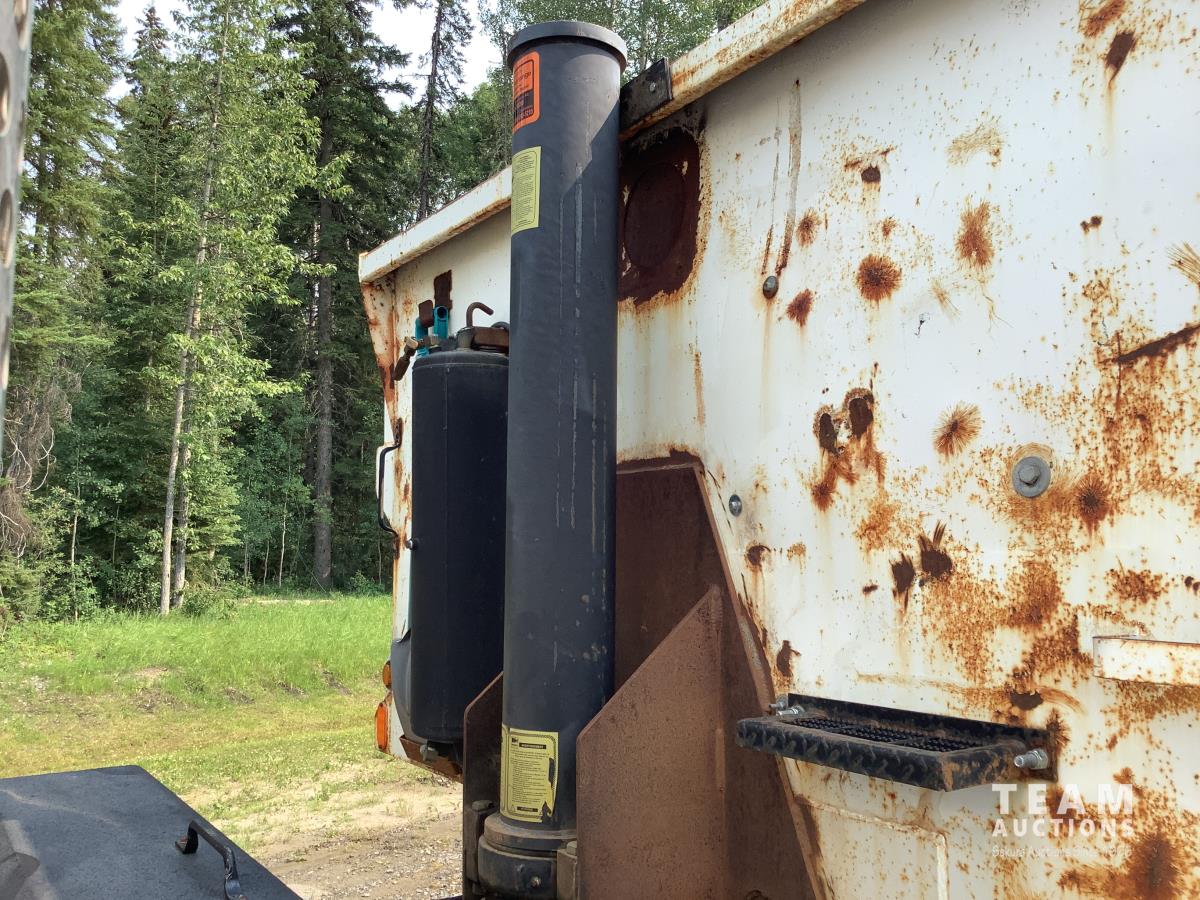 Caterpillar C15 3406B engine, Engine Pro engine heater, engine brake, Eaton Fuller 15 speed manual transmission, cab heater, Henderson rubber block suspension, 12,000 lb front axle, 40,000 lb rear axles, diff lock, engine pro heater, master switches, toolbox, rear trailer air supply valve, 15 ft steel box with Teflon liner, air shift PTO in cab controller, 11R24.5 rear tires