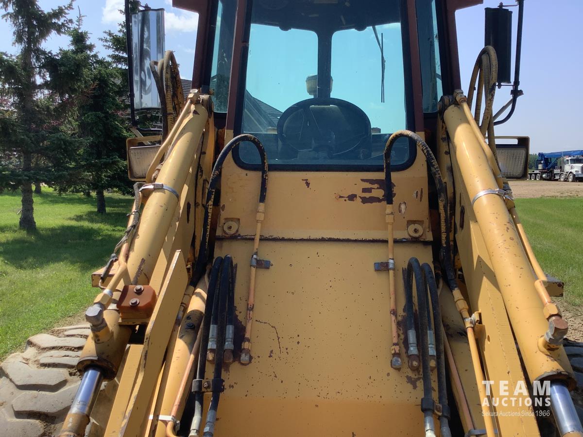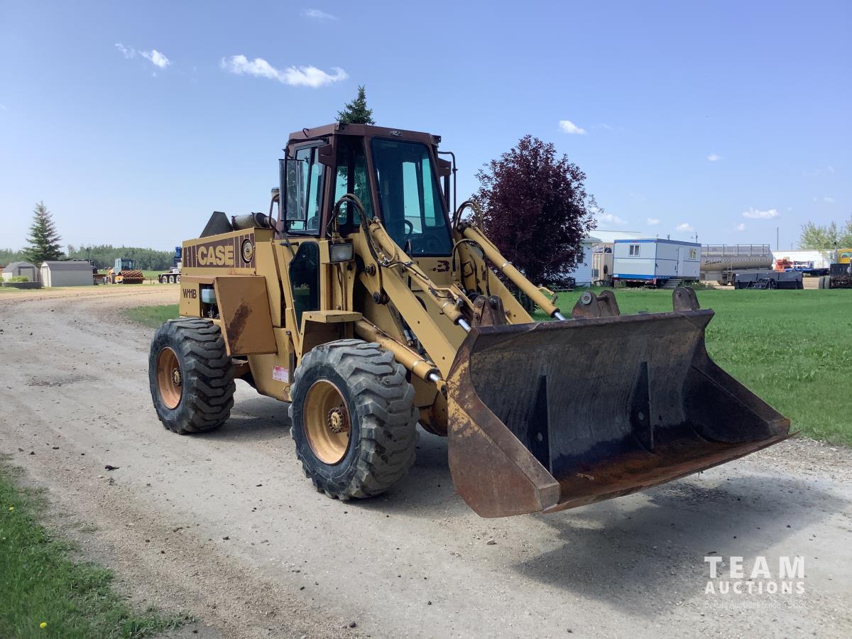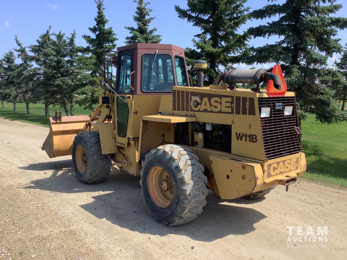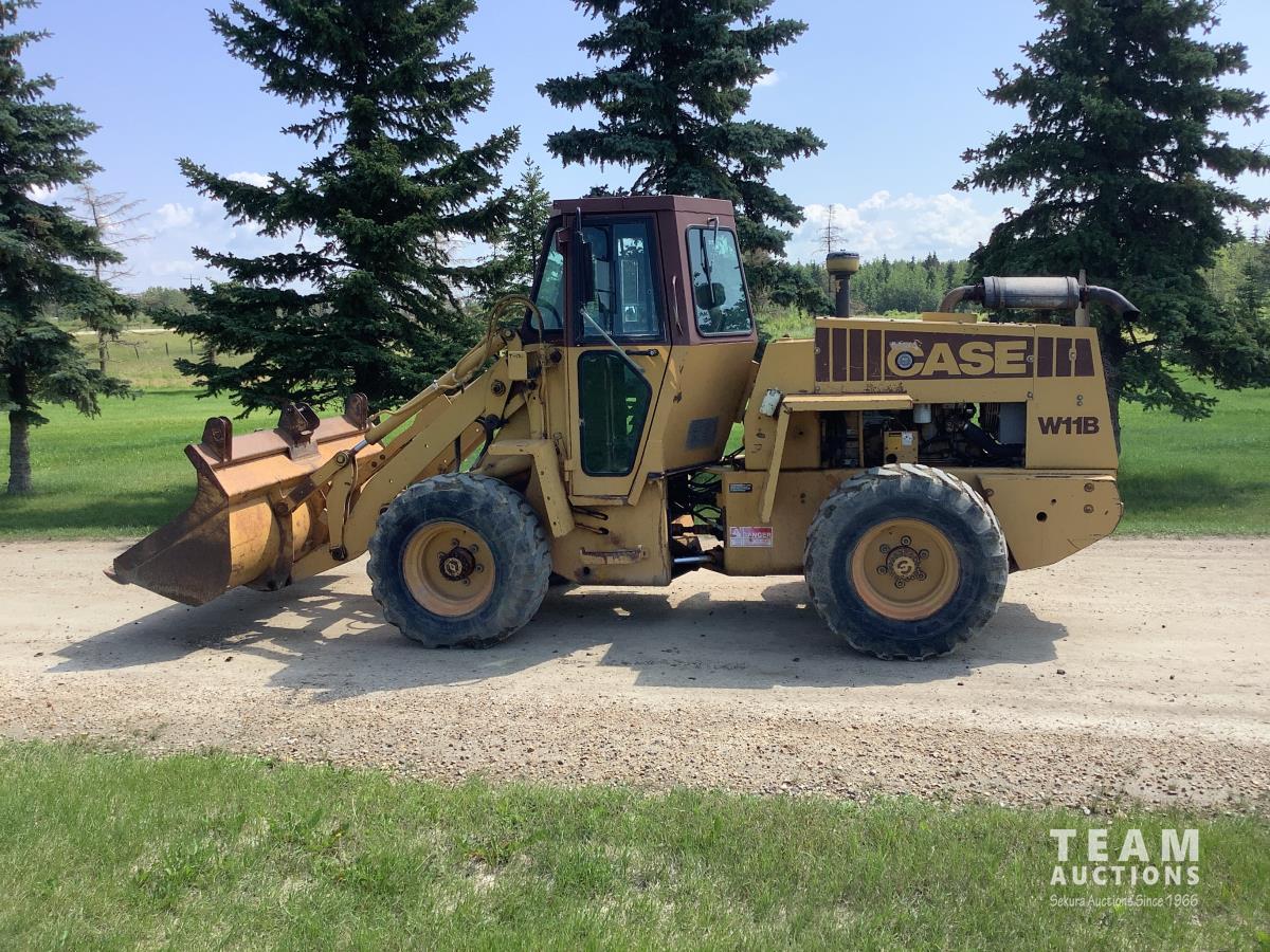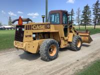 Case 4 cylinder, 390 diesel engine, 3 speed forward and reverse, power shift transmission, inline loader linkage arms for good vision of bucket, integrated hydraulic system, torque proportioning differentials, 4 wheel drive, Sims ROPS cab, heater, tight pins on the loader
