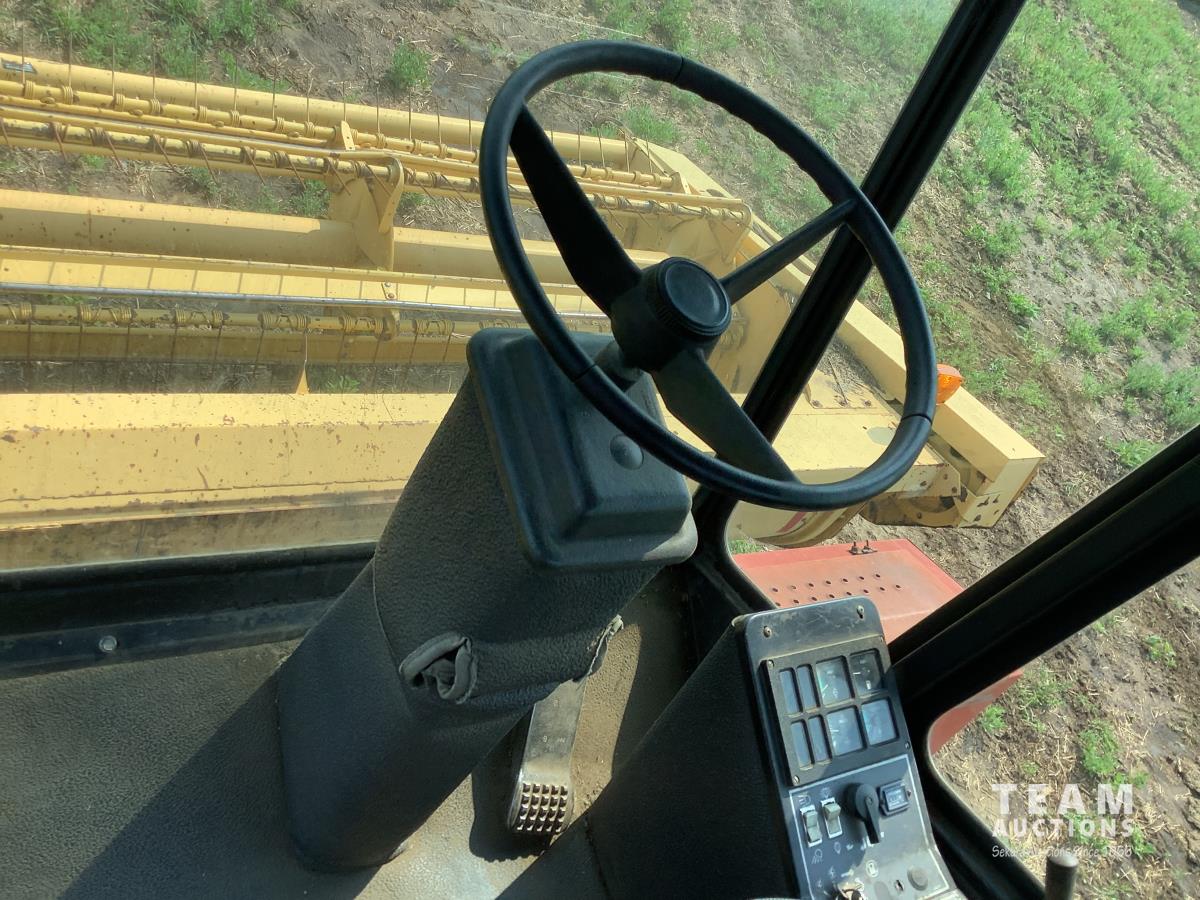 4 cylinder diesel engine, hydrostatic drive, cab, heat, AC, radio, dual knife drive 21.5:-16.1 drive tires