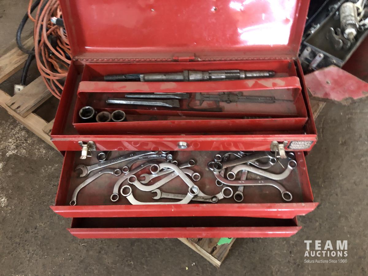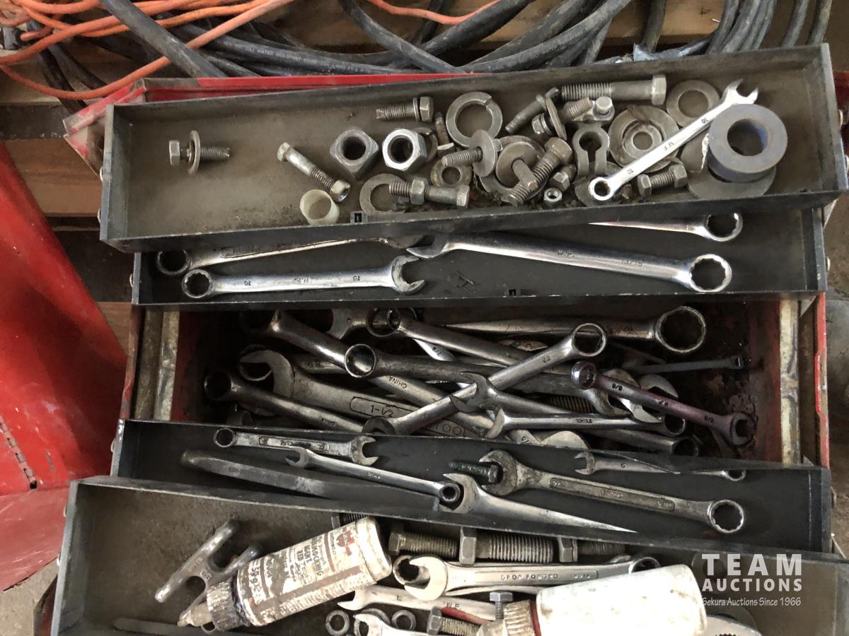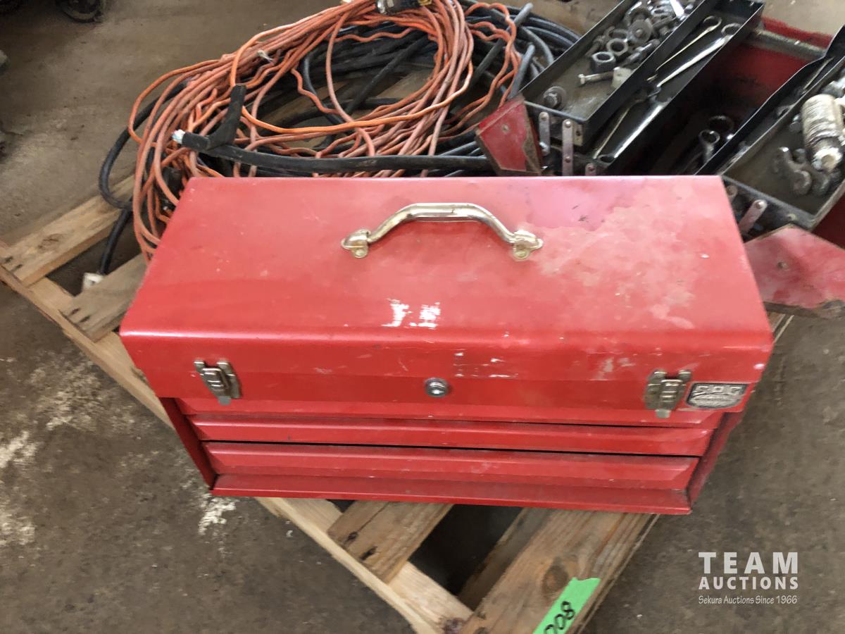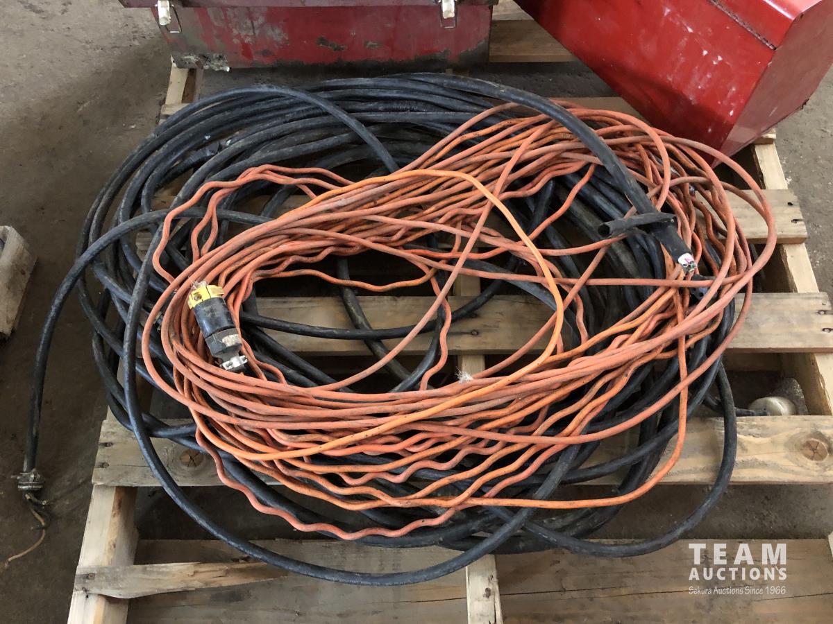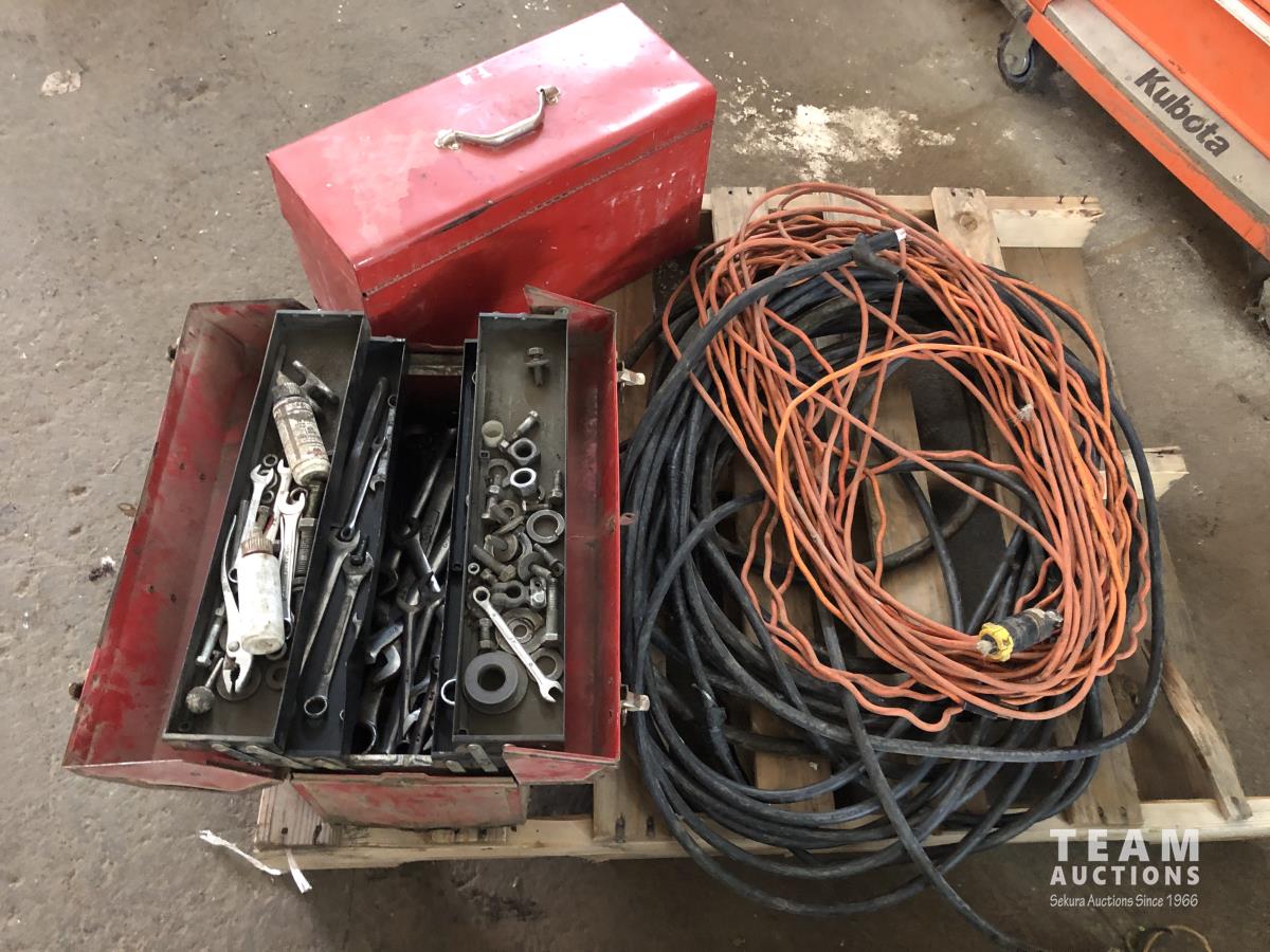 257 (2) Metal Tool Boxes with Contents, (2) Long Extension Cords