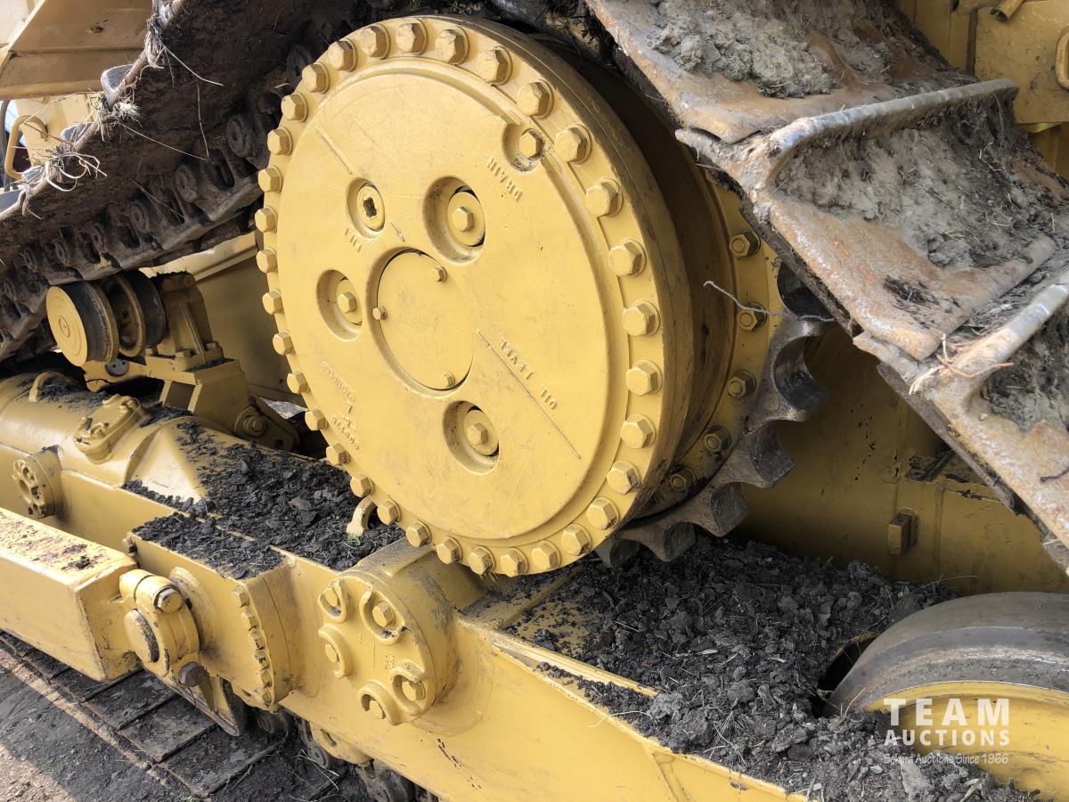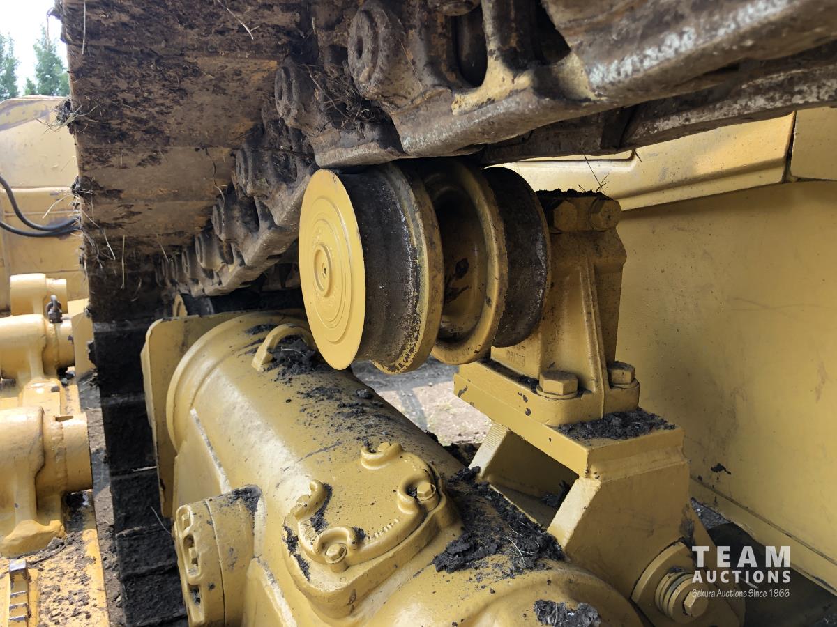 13 ft dozer, single tilt, enclosed cab, brush sweeps, single barrel three shank ripper, two ripper shanks, differential steer, 24 inch pads