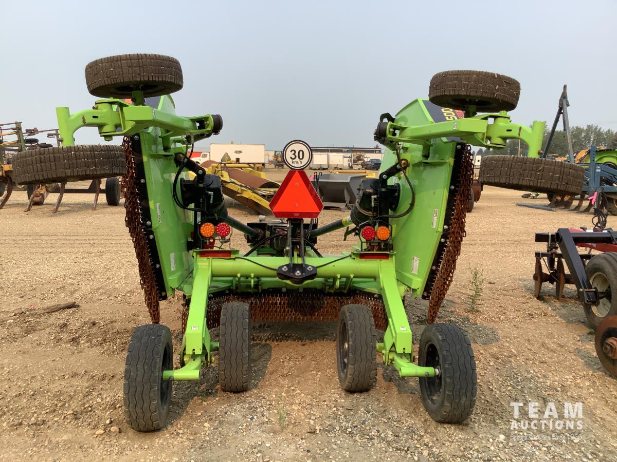1000 PTO, front and rear safety chains, light package, walking axles on main frame and wings, 24X8.00-14 tires on main frame, solid rubber tires on wings