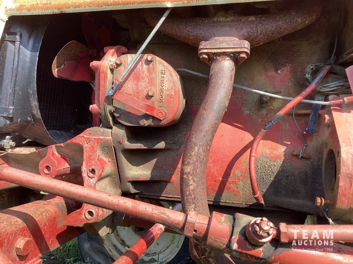 International 2.5 L 4 cylinder 43 HP, gas engine, 8 speed manual transmission, 540 PTO, 3 point hitch, 1 rear hydraulic outlets, 14.9-28 rear tires