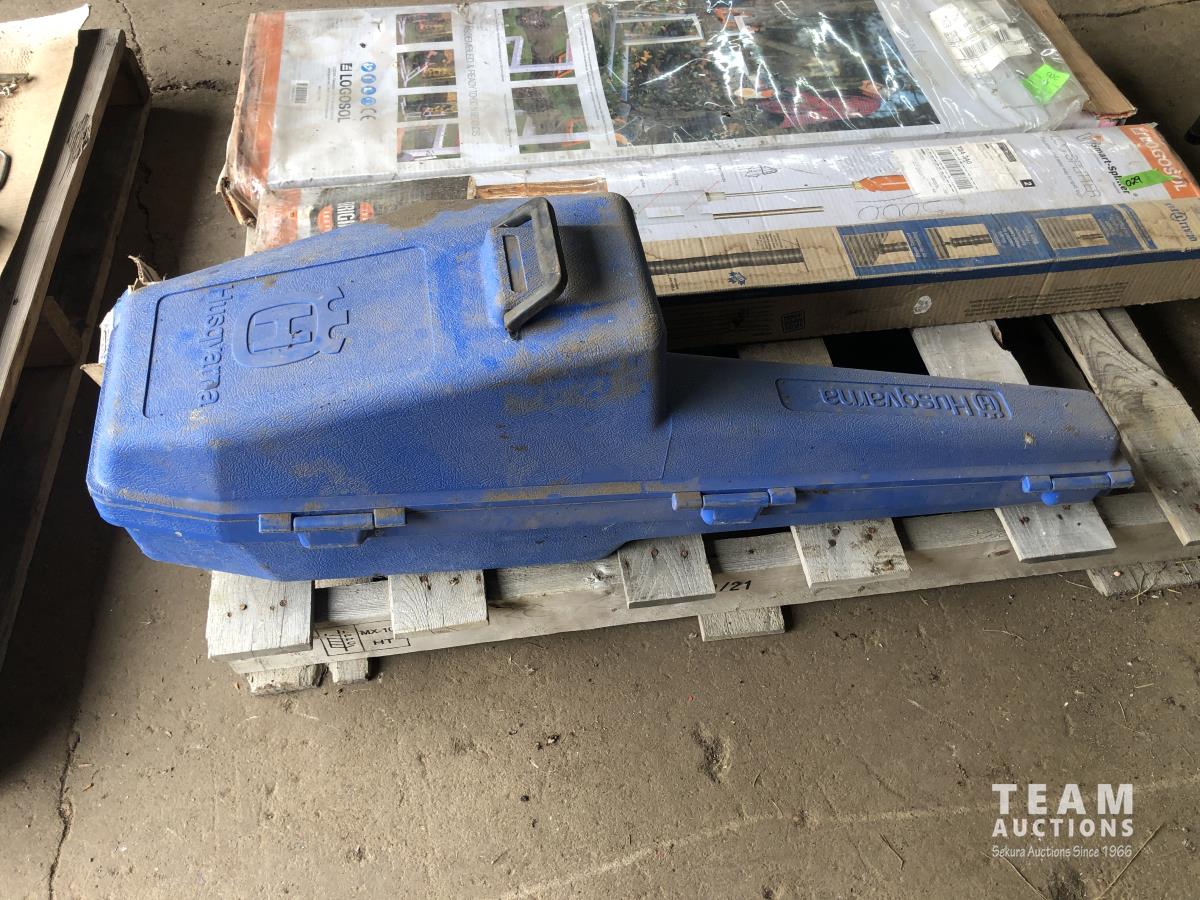 Husqvarna chain saw case, V -Smart log Splitter (unused), Smart Log Holder (unused), (2) boat supports, Adjustable support post