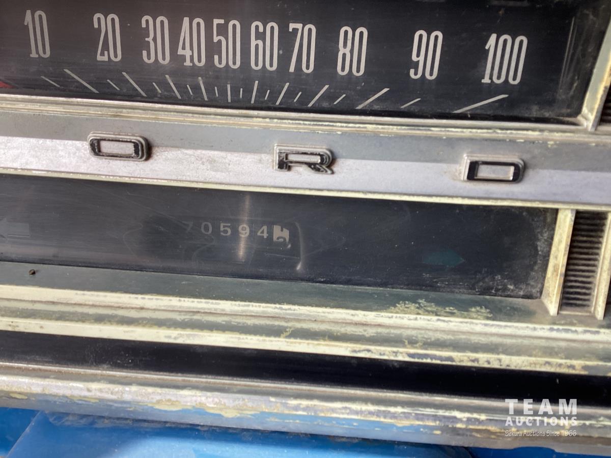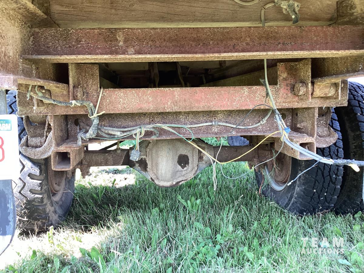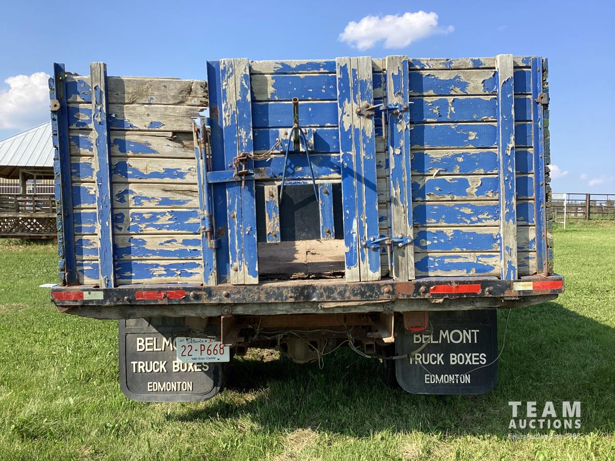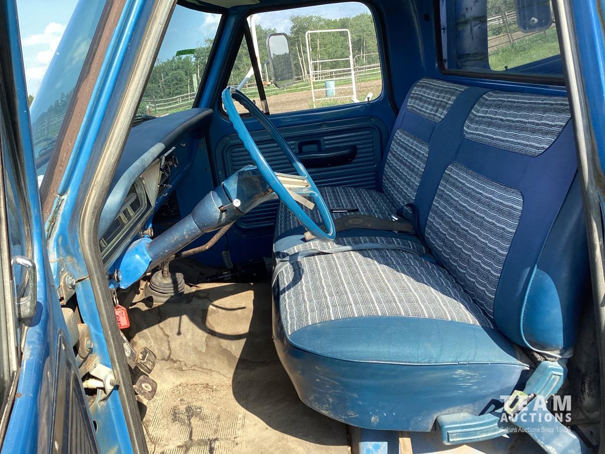 Ford 400 cu in V8 gas engine, 4 speed manual transmission, hoist, 12' wood box, power brakes, power steering, 750-16LT tires