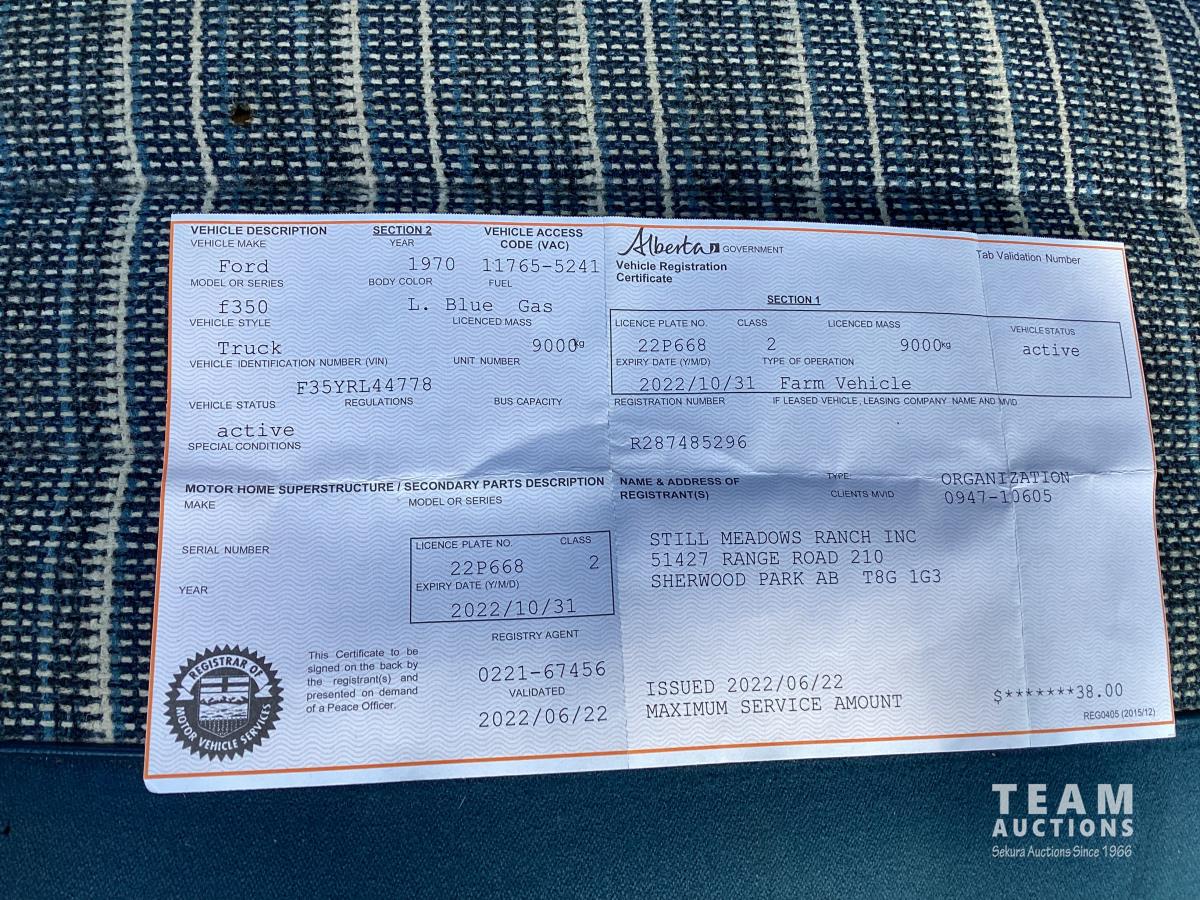 90 1970 Ford F350 S/A Day Cab Grain Truck