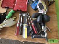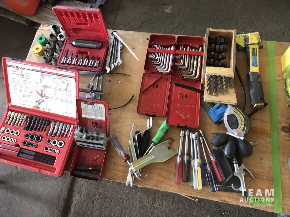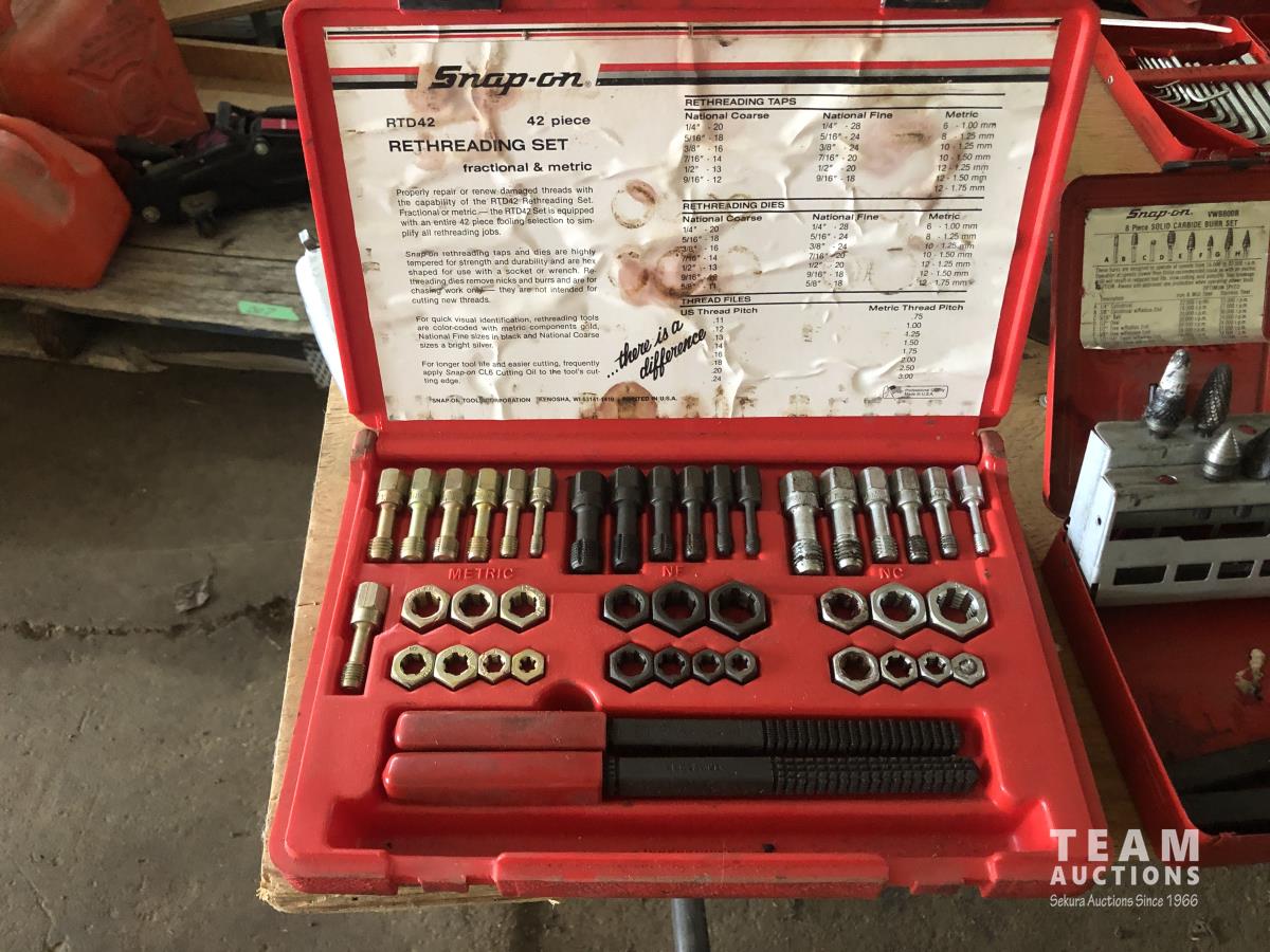 Snap-On rethreading Kit, burr tools, Allen keys, Stanley stapler, 7 piece screwdriver set, miscellaneous tools