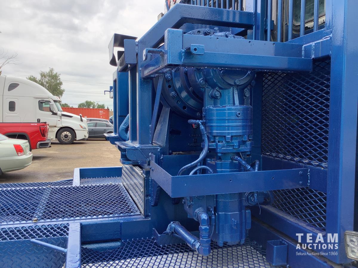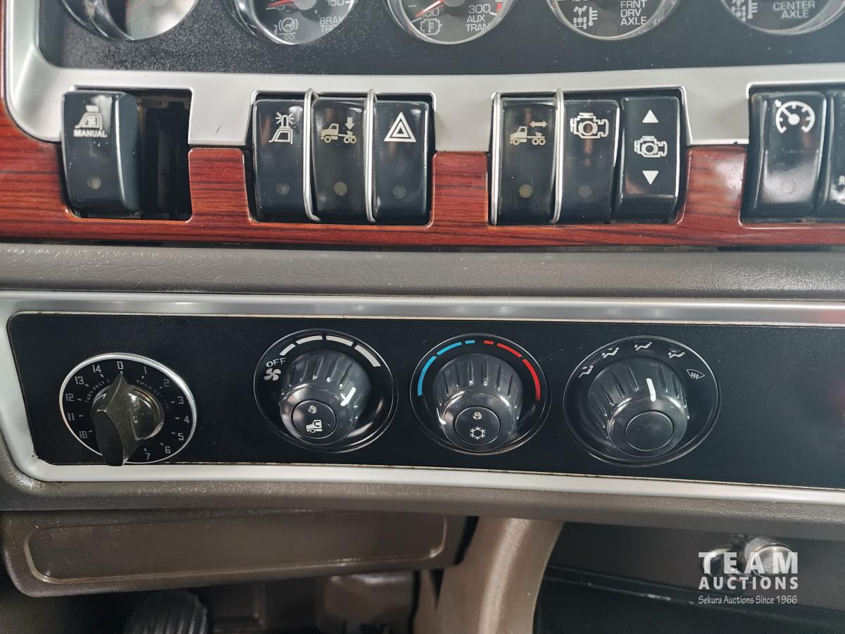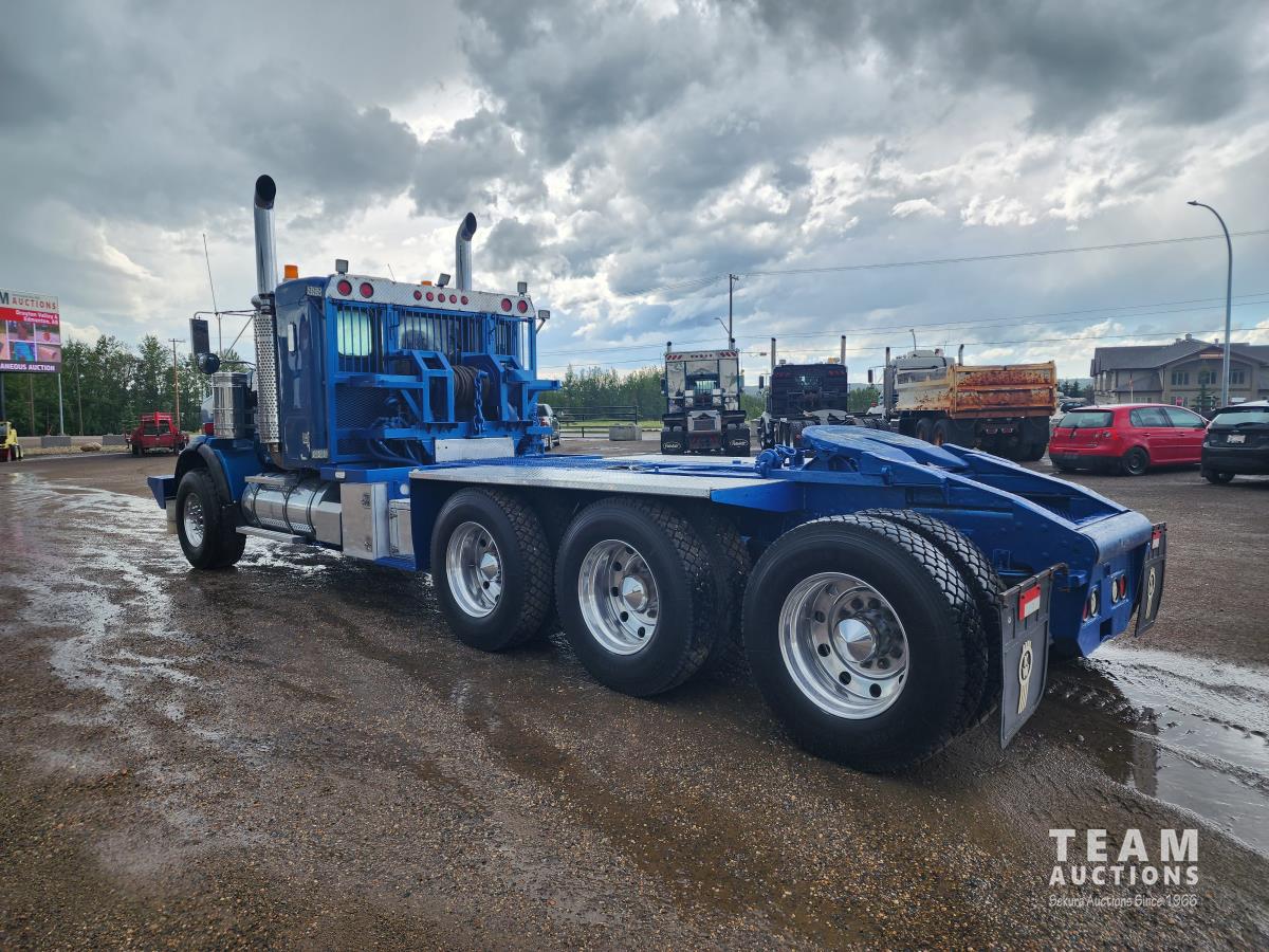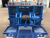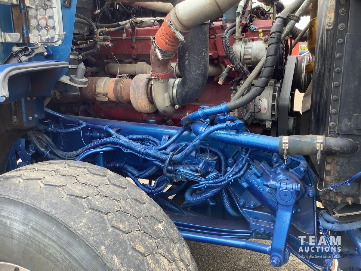 Cummins ISX 565 HP engine, Webasto engine heater, engine brake, Eaton Fuller 18 speed manual transmission, Roda emergency air shut down on engine, sleeper, aluminum tool boxes, beacons, Braden 30 T hydraulic winch, new winch cable, front mount oil tank, Neway air ride suspension, full lockers, 18,000 lb front axle with twin steering boxes, Integro 42 inch flat top sleeper, roof mount AC, air slide 5th wheel, rear live roll, rear aluminum fenders, tilt telescopic steering wheel, 425/65R22.5 front tires, 11R24.5 rear tires