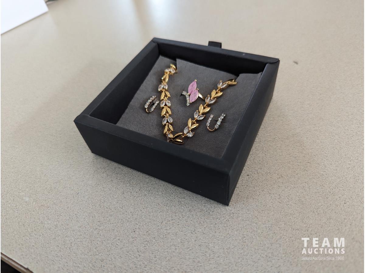 20 14K Gold Plated Pink Marquise Cz 3 Piece Set (Unused)