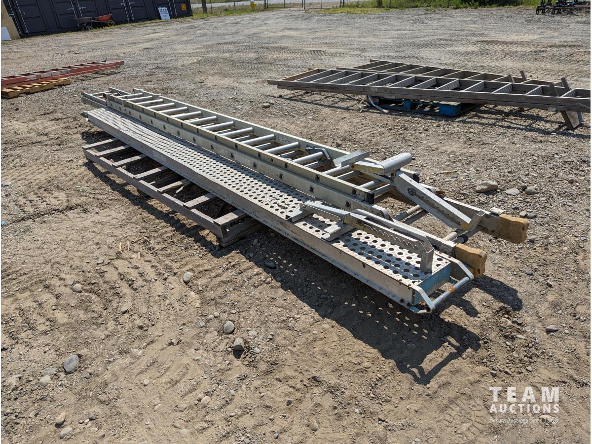 281 (2) Aluminum Extension Ladders, Platforms & (2) Ladder Jacks