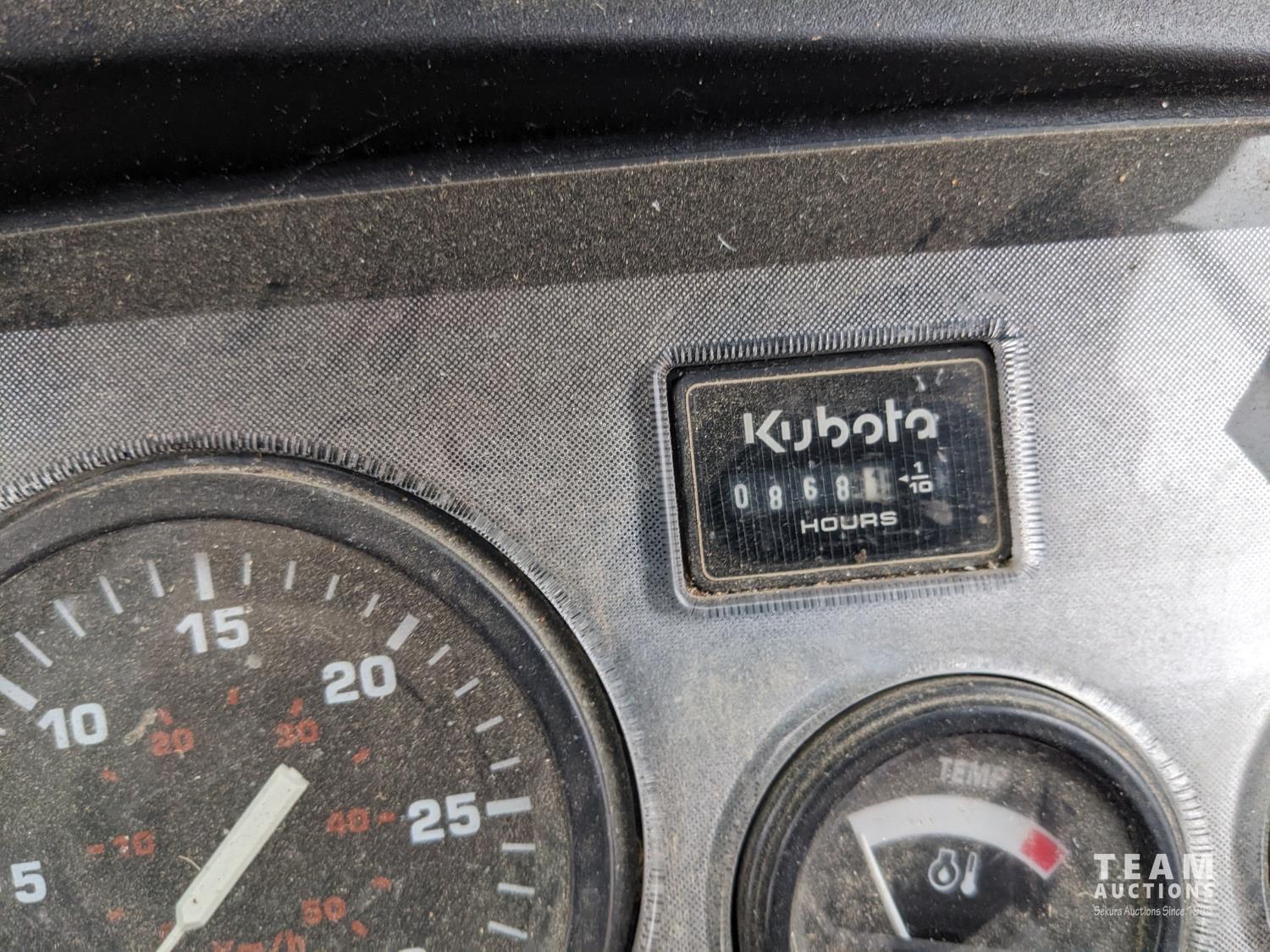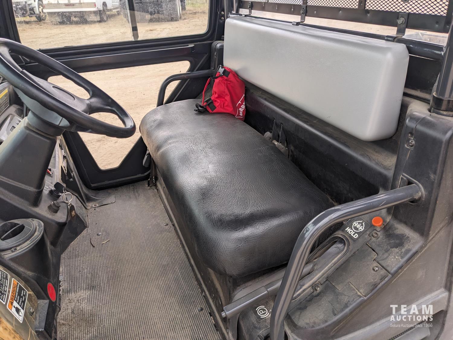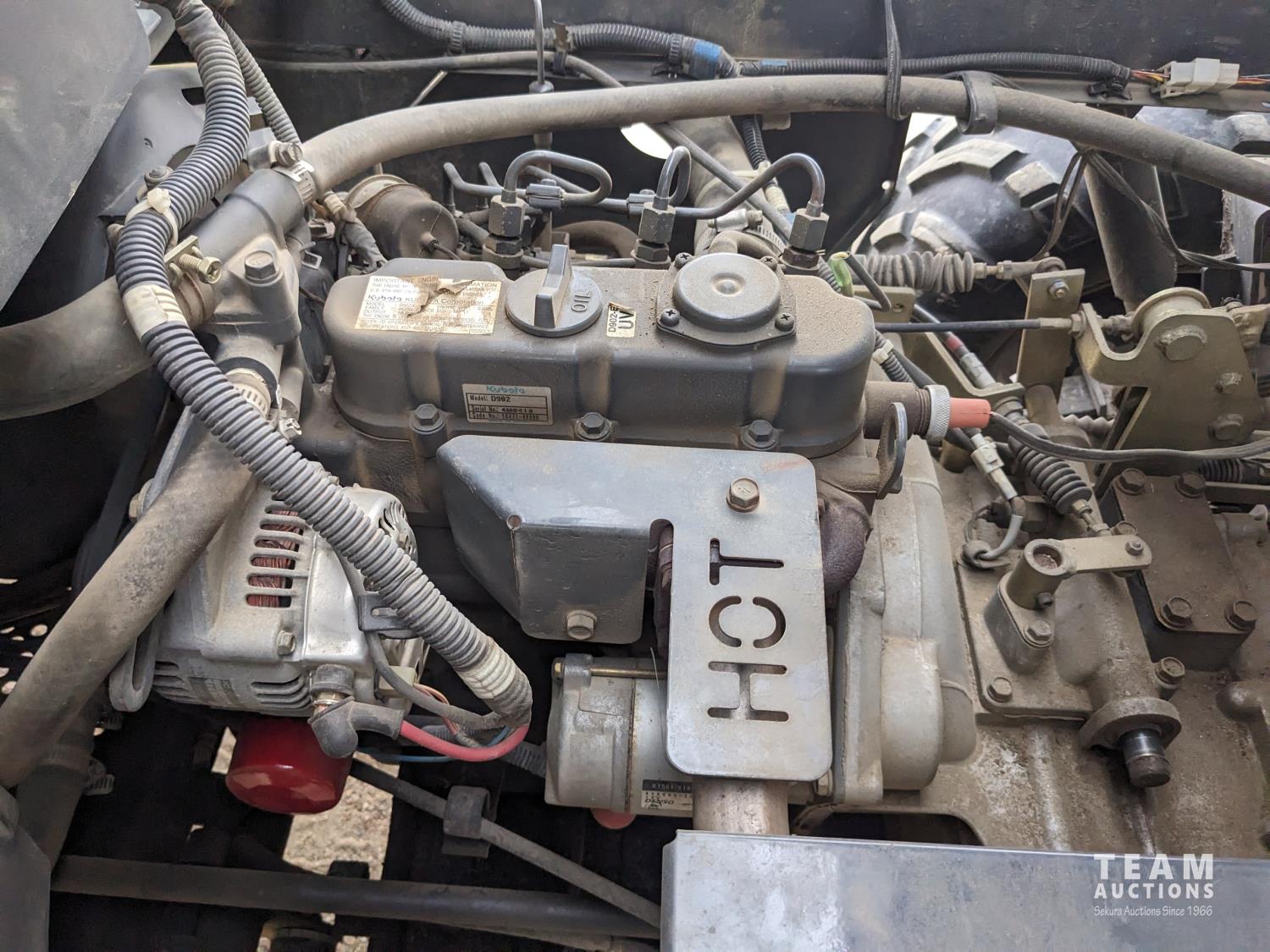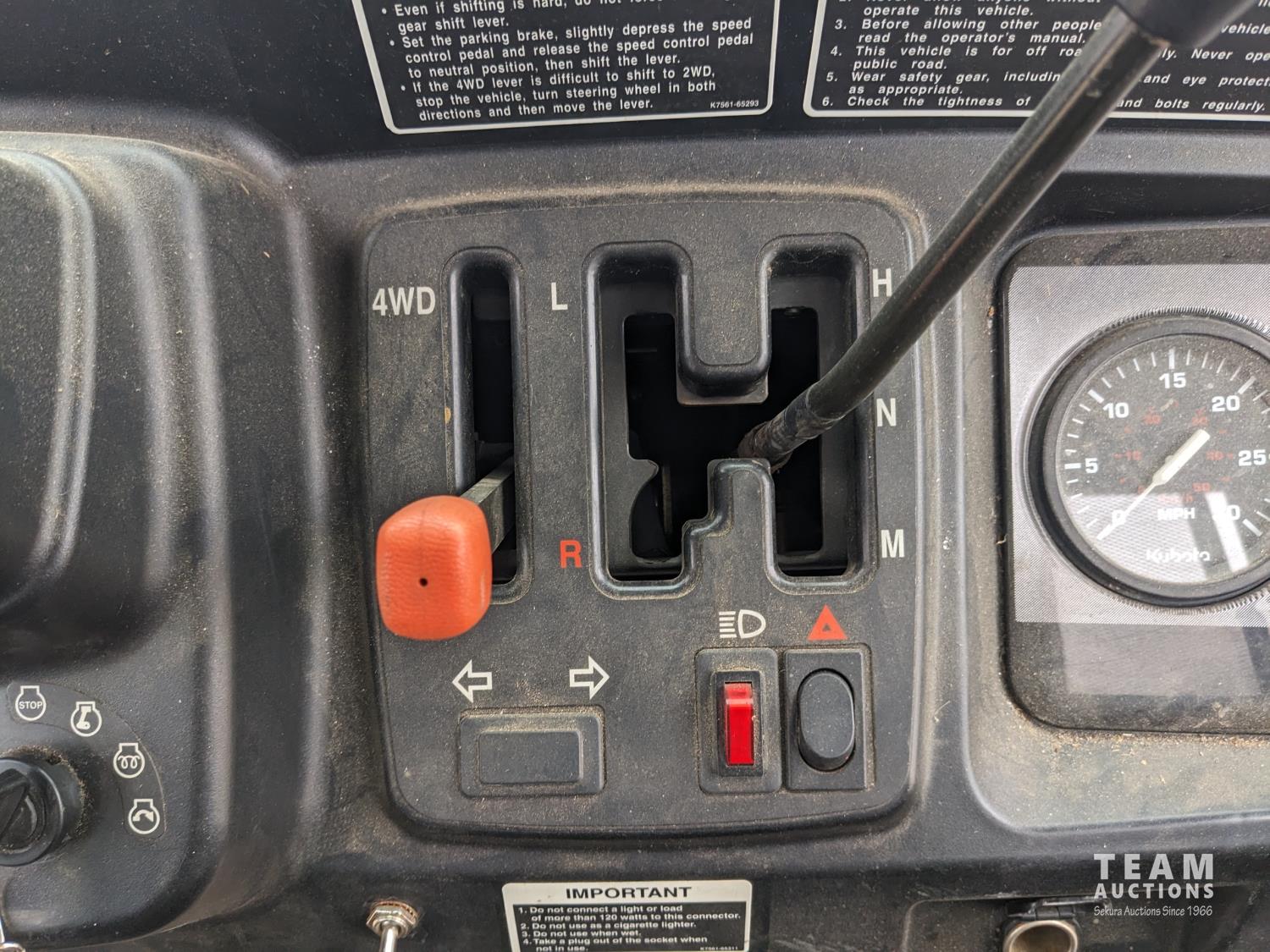 3 cylinder Kubota diesel engine, 3 speed hydro transmission, front winch, heated cab, power steering, manual dump box, 25X10-12 tires