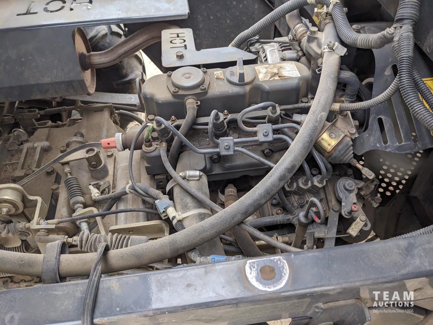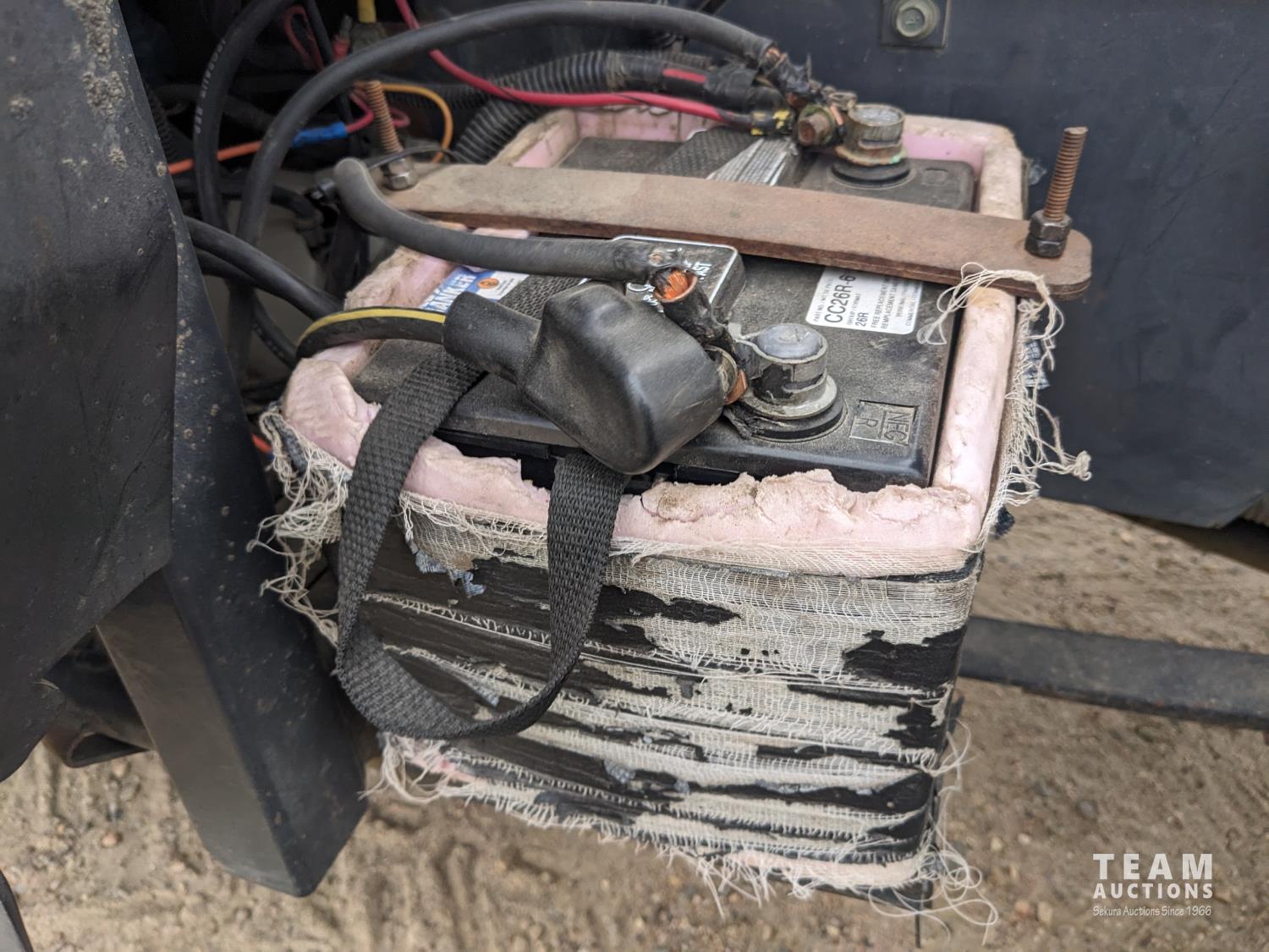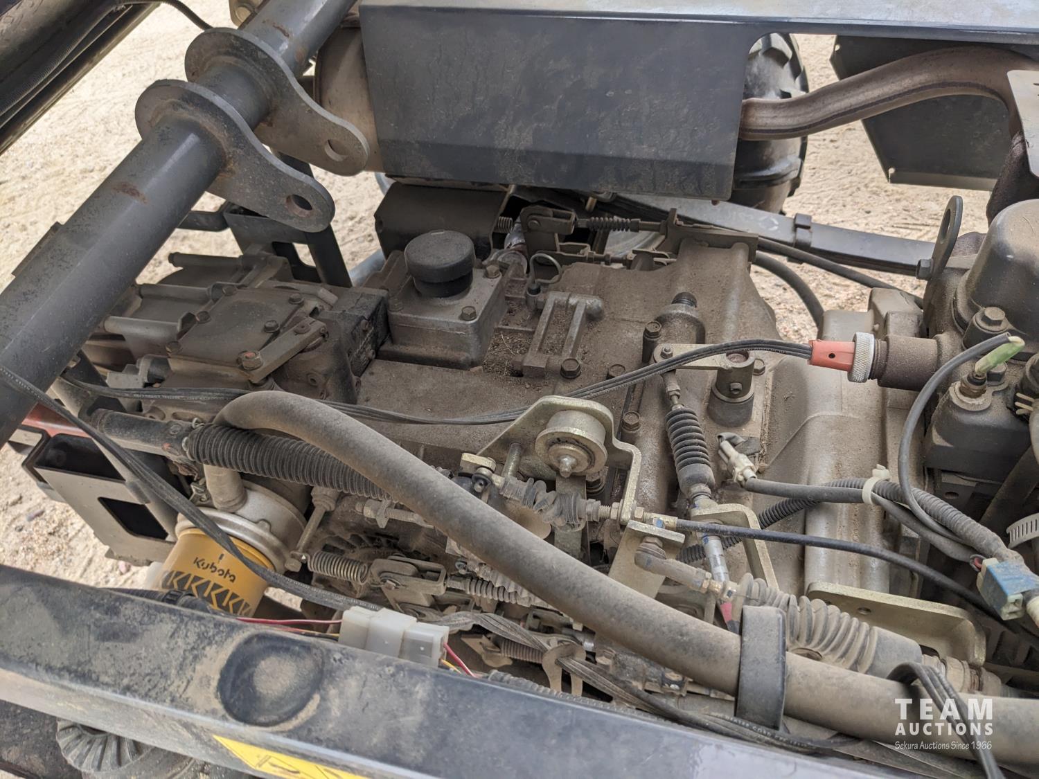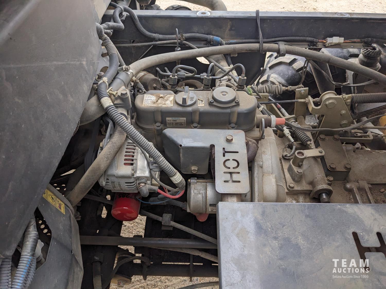 3 cylinder Kubota diesel engine, 3 speed hydro transmission, front winch, heated cab, power steering, manual dump box, 25X10-12 tires