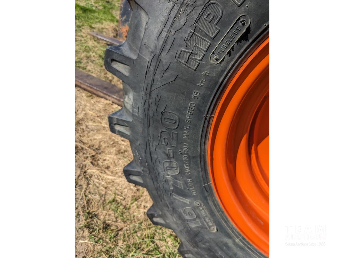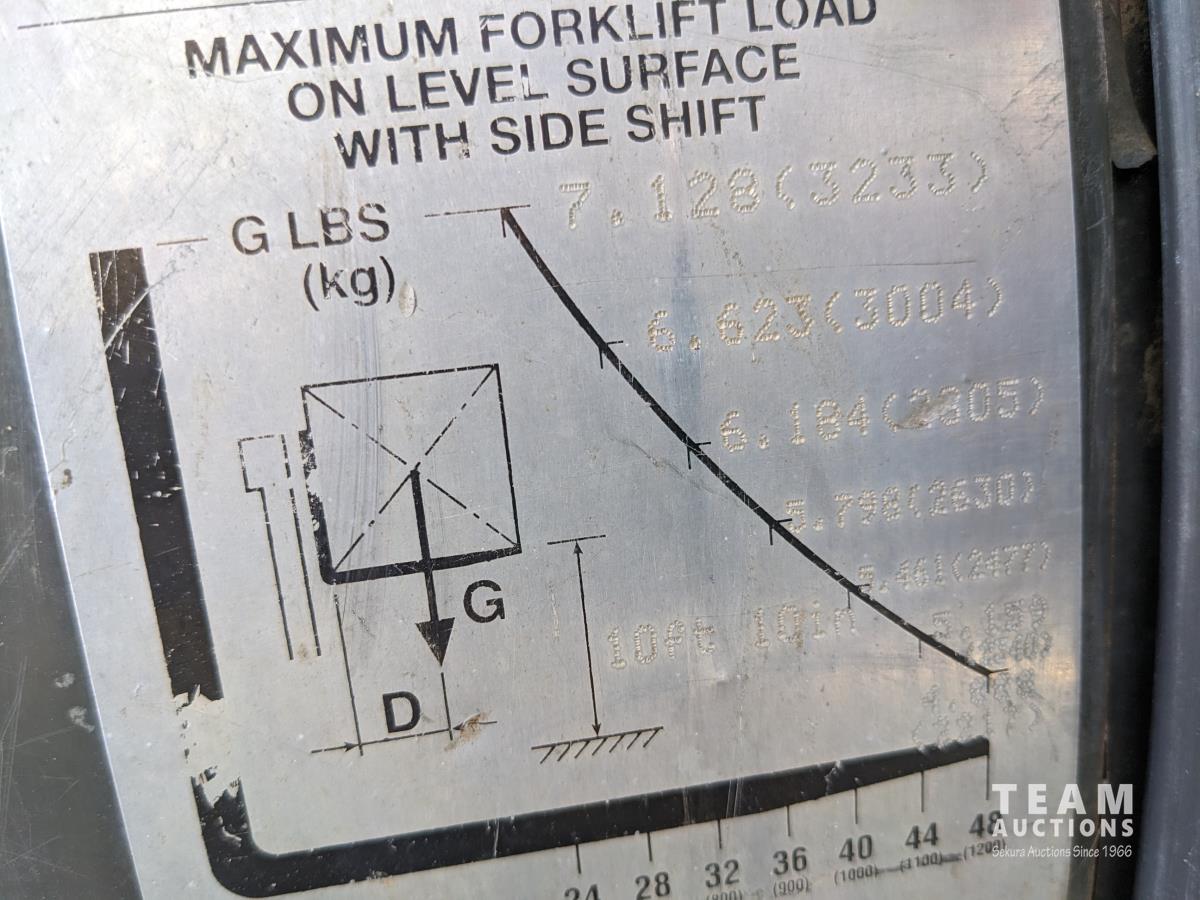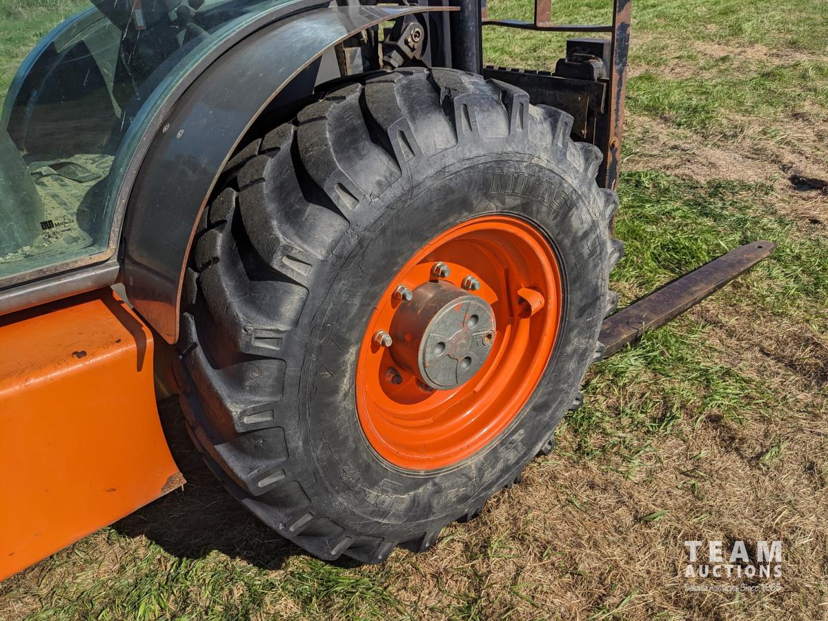 Kubota 4 cylinder 66 HP diesel engine, hydrostatic transmission, enclosed cab, 48 inch pallet forks, side shift, 2 stage mast, 13 ft 11 inch lift, 16/70-20 front, 10.0/75-15.3 rear tires
