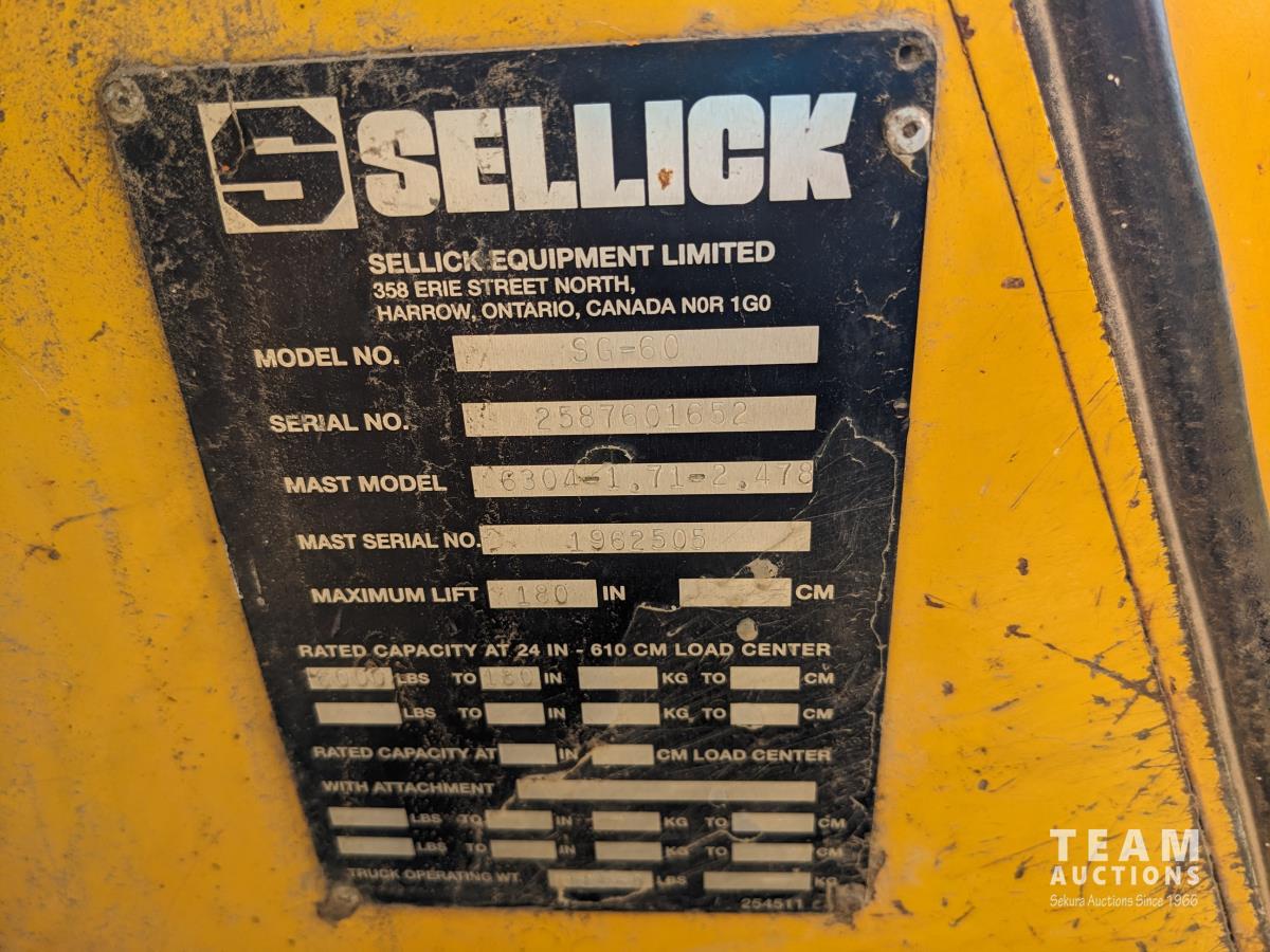 211 Sellick SG-60 2WD 6000 lb Rough Terrain Forklift
