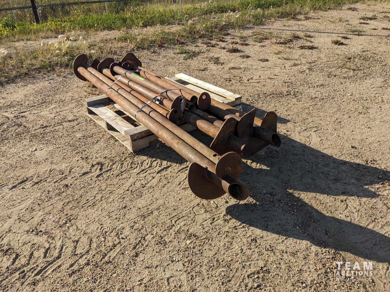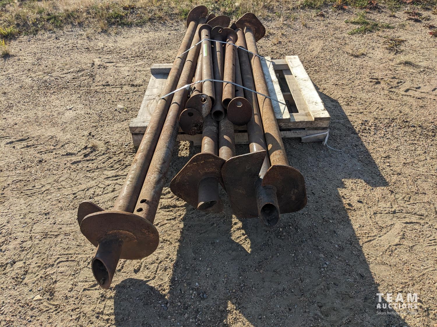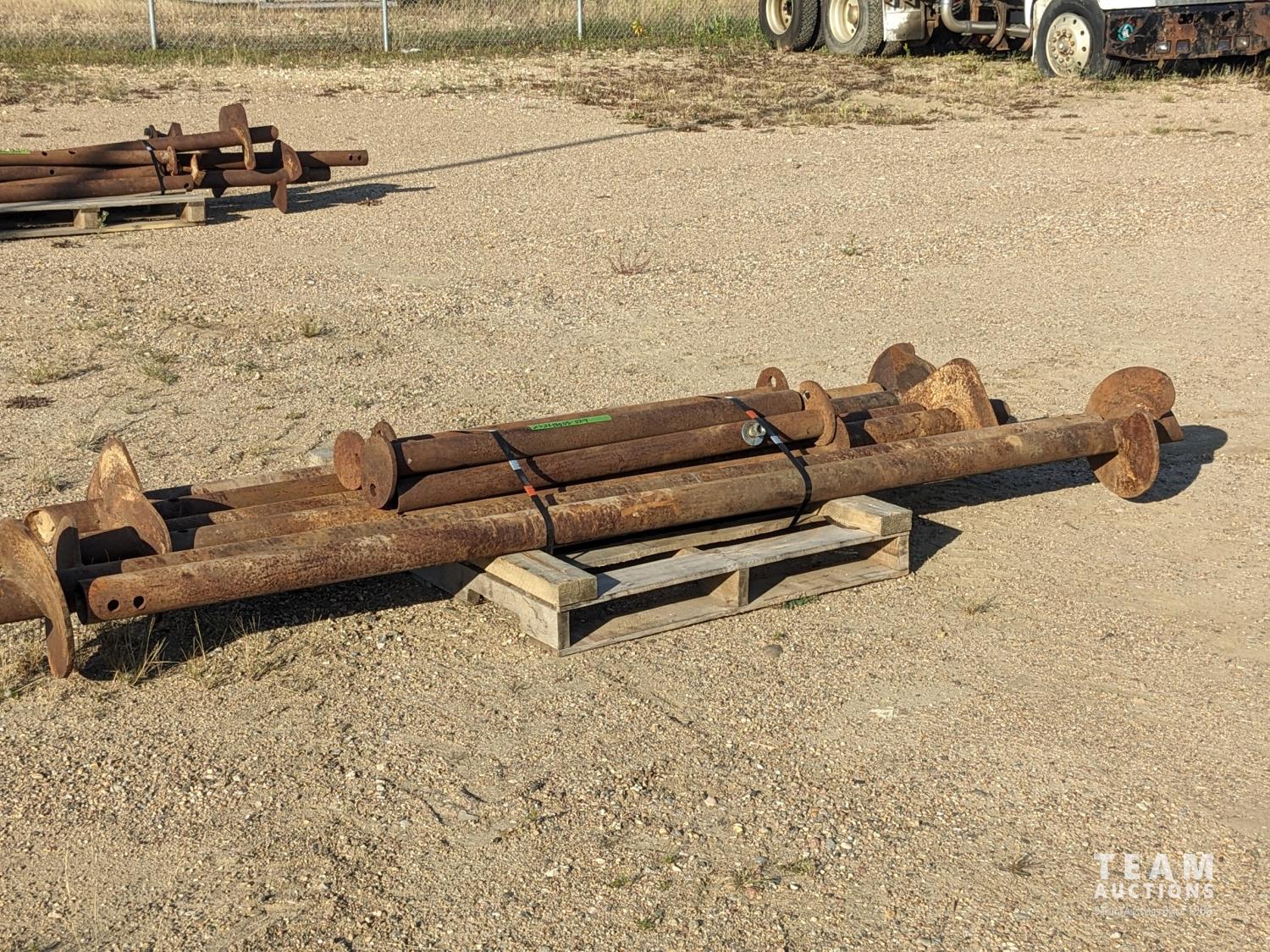 36 (6) 12 Inch Screw Piles with 3.5 Inch Center Pipe 10± Ft Long, (6) 48 Inch Pile Insert Beam Stand