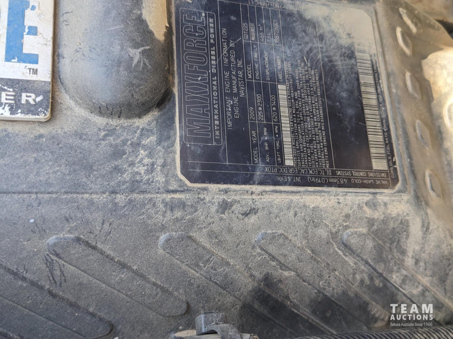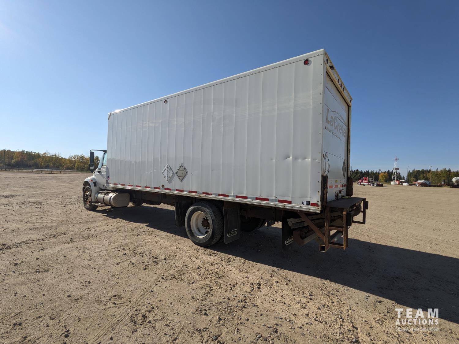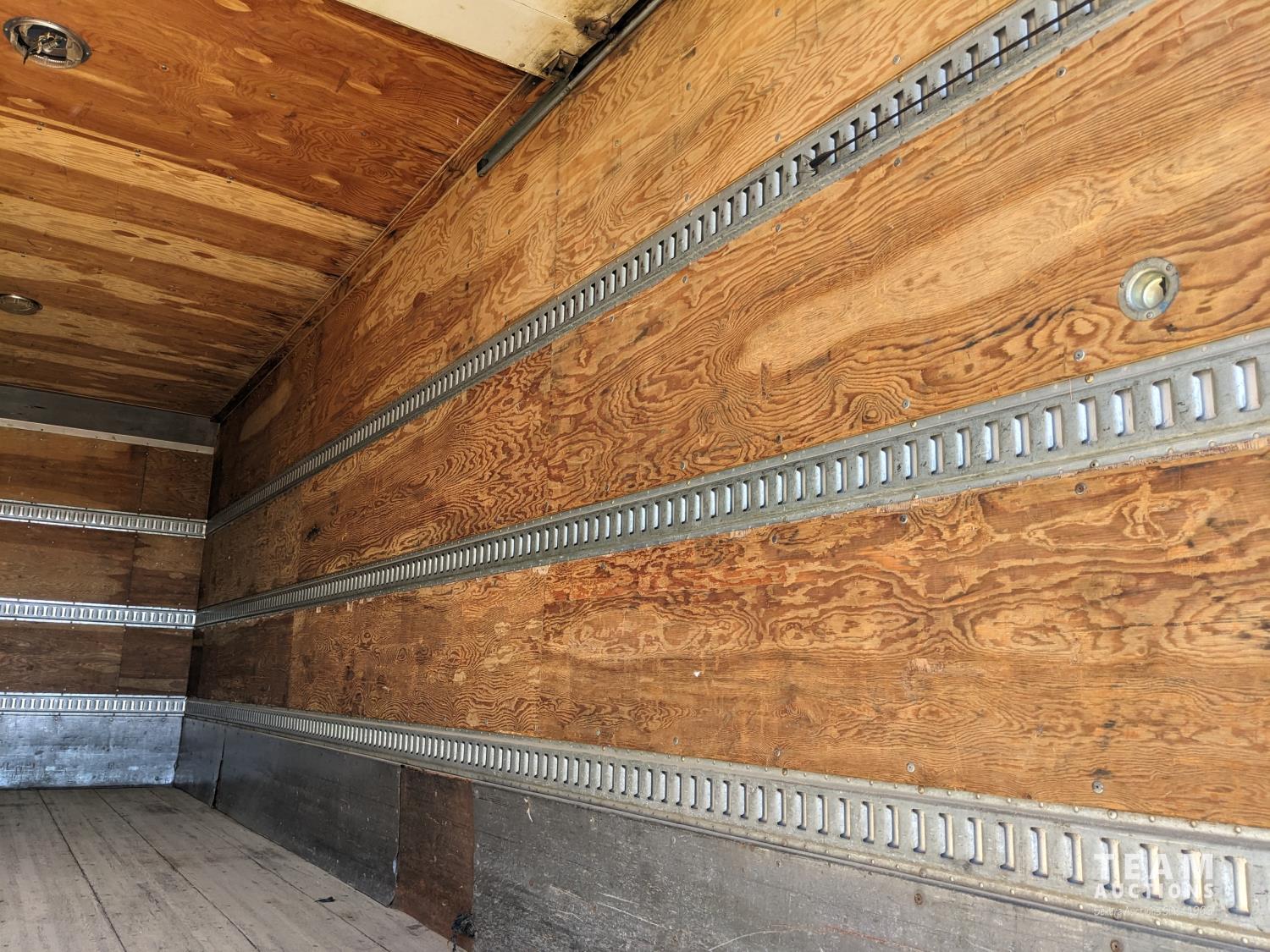 International MaxxForce DT 7.6 6 cylinder 225 HP diesel engine, engine heater, engine brake, positive air shutoff, Eaton Fuller 6 speed manual transmission, A/C, cruise control, air ride driver seat, radio, CB radio, 2-way radio, stereo, 24 ft van, 96 inch wide, 94" high, rear lift tailgate, spring suspension, 10,000 lb front axle, 19,000 lb rear axles, 254 inch WB, 11R22.5 tires