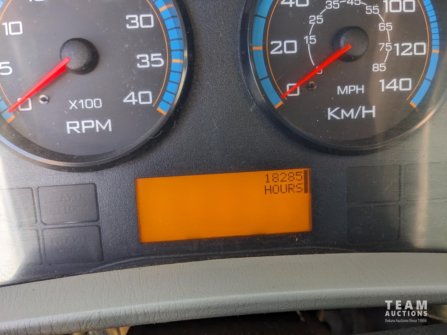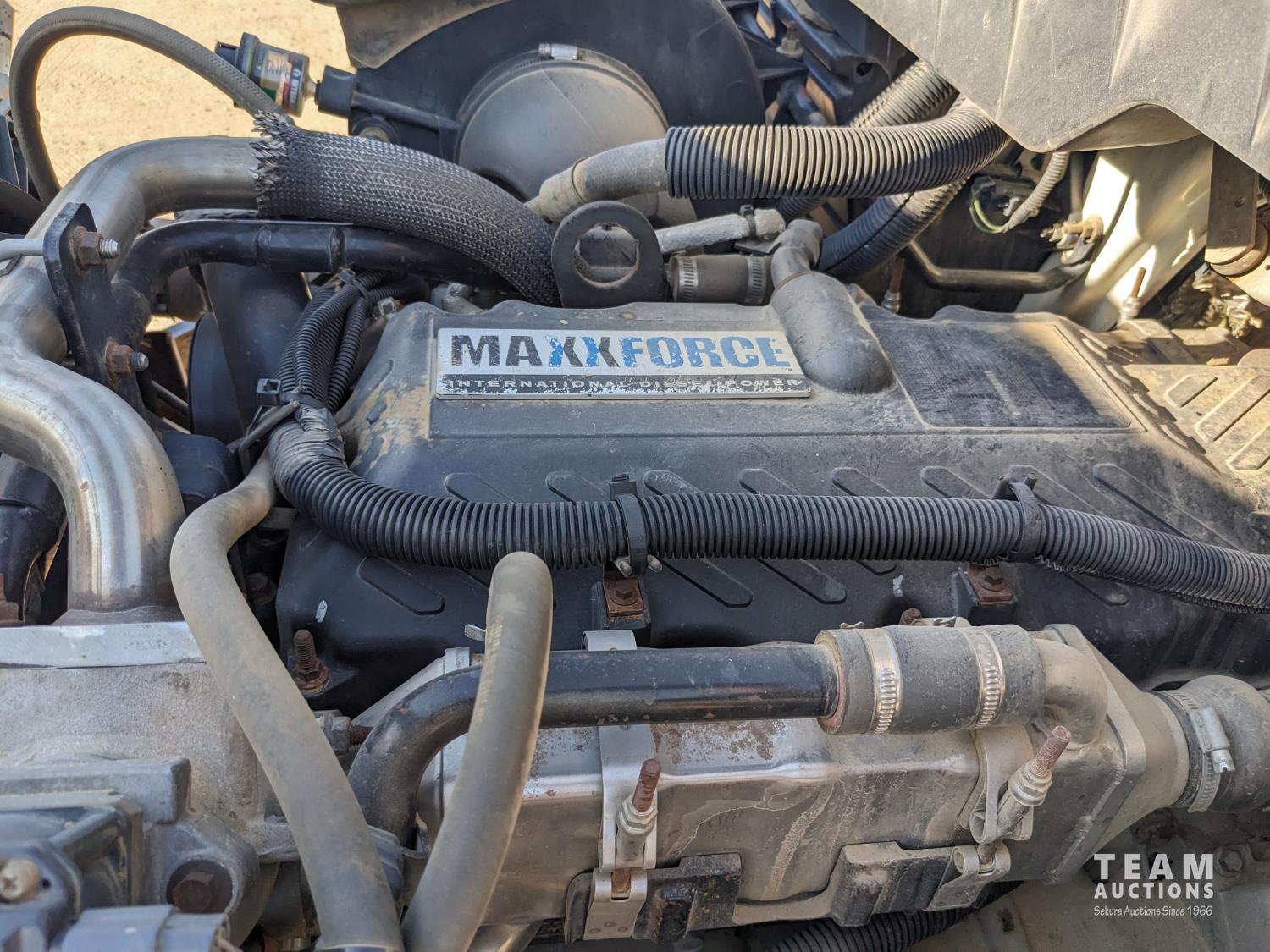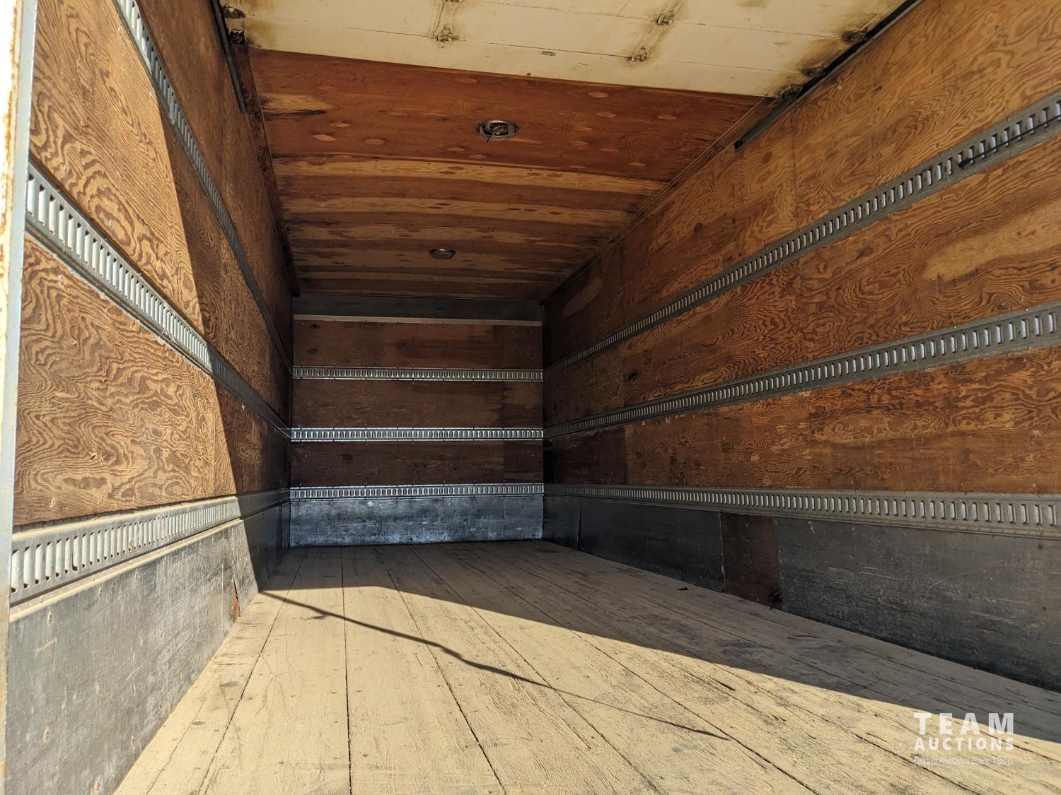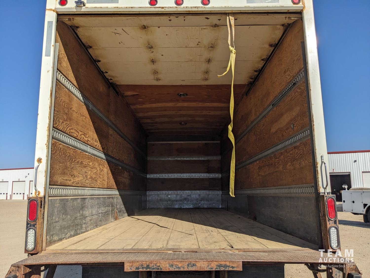 International MaxxForce DT 7.6 6 cylinder 225 HP diesel engine, engine heater, engine brake, positive air shutoff, Eaton Fuller 6 speed manual transmission, A/C, cruise control, air ride driver seat, radio, CB radio, 2-way radio, stereo, 24 ft van, 96 inch wide, 94" high, rear lift tailgate, spring suspension, 10,000 lb front axle, 19,000 lb rear axles, 254 inch WB, 11R22.5 tires