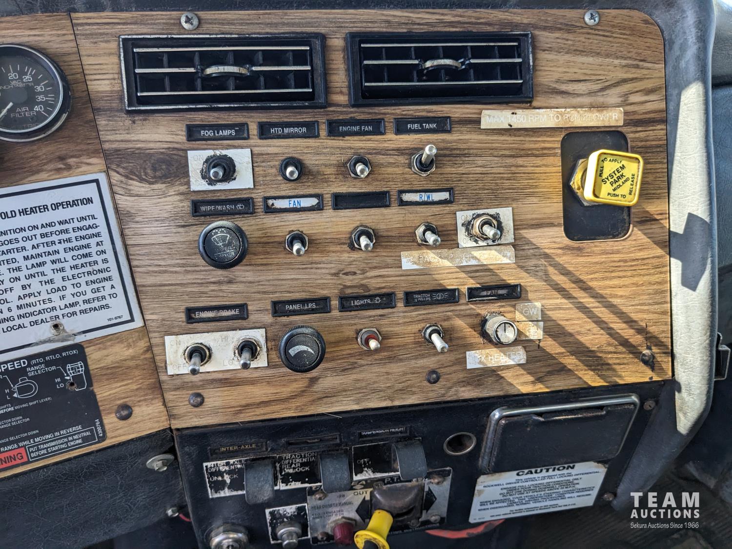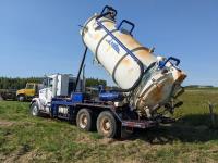 Caterpillar 3306 10.5 L 6 cylinder 300 HP diesel engine, Eaton Fuller RTL0-12713A 13 speed manual transmission, Fruitland 1200 pump, Westech WT82 1 compartment tank, hydraulic driven agitator, heated cabinet, hoist, opening end gate, air ride suspension, 16,000 lb front axle, 40,000 lb rear axles, 3 way diff locks, 230 inch WB, 385/65R22.5 front tires, 11R22.5 rear tires