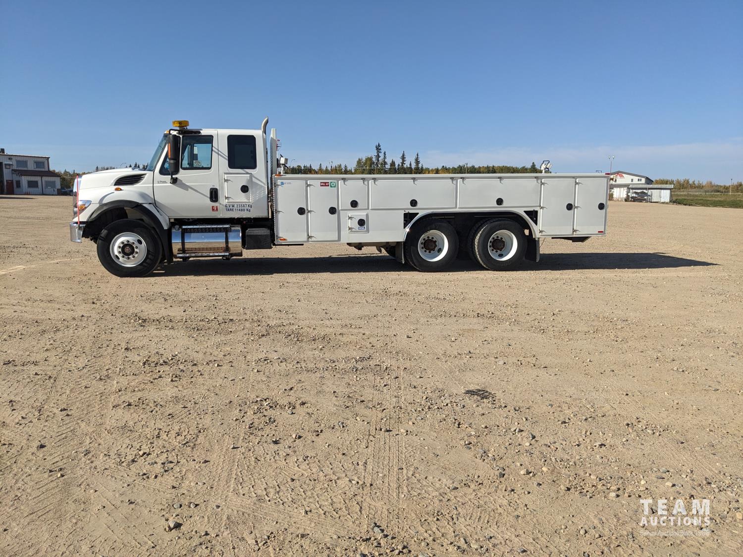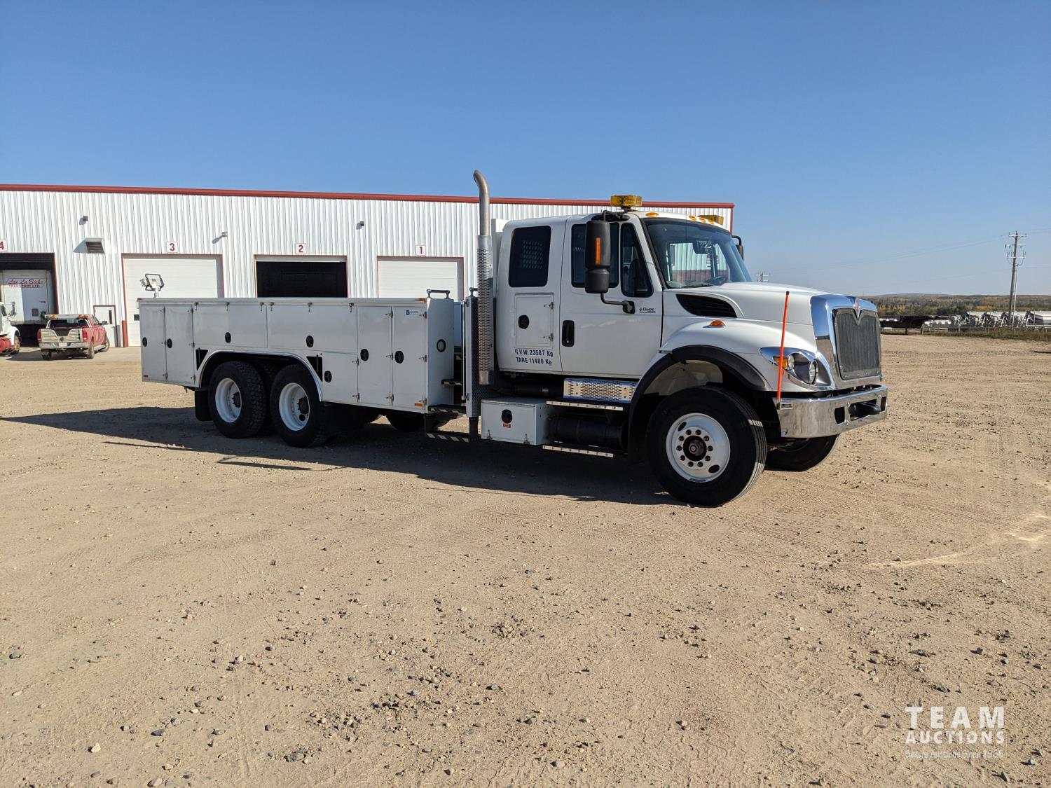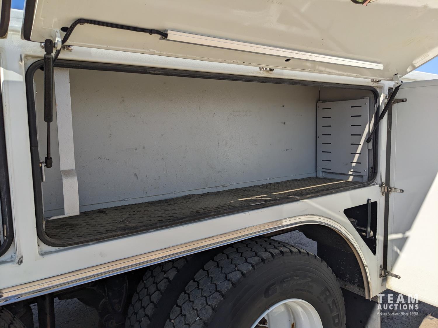 International 7.6 L 6 cylinder 300 HP diesel engine, automatic transmission, A/C, cruise control, air ride seats, radio, stereo, P/L, P/W, P/Mirrors electric brake controller, , air ride cab, General 21 ft service body, beacon lights, work lights, air ride suspension, 12,000 lb front axle, 40,000 lb rear axles, full lockers, 242 inch WB, rear pintle hitch, 11R22.5 front tires