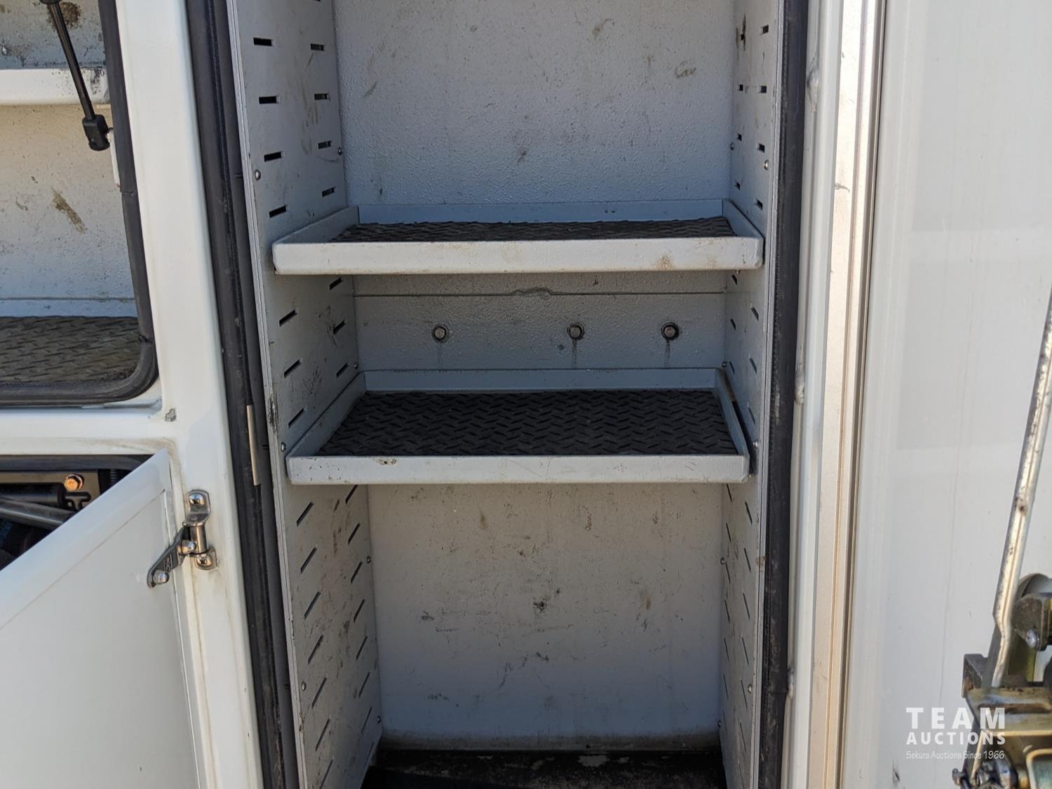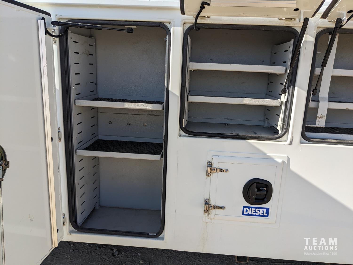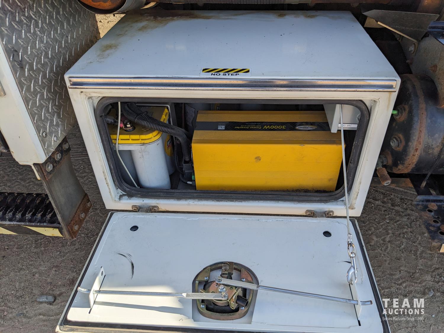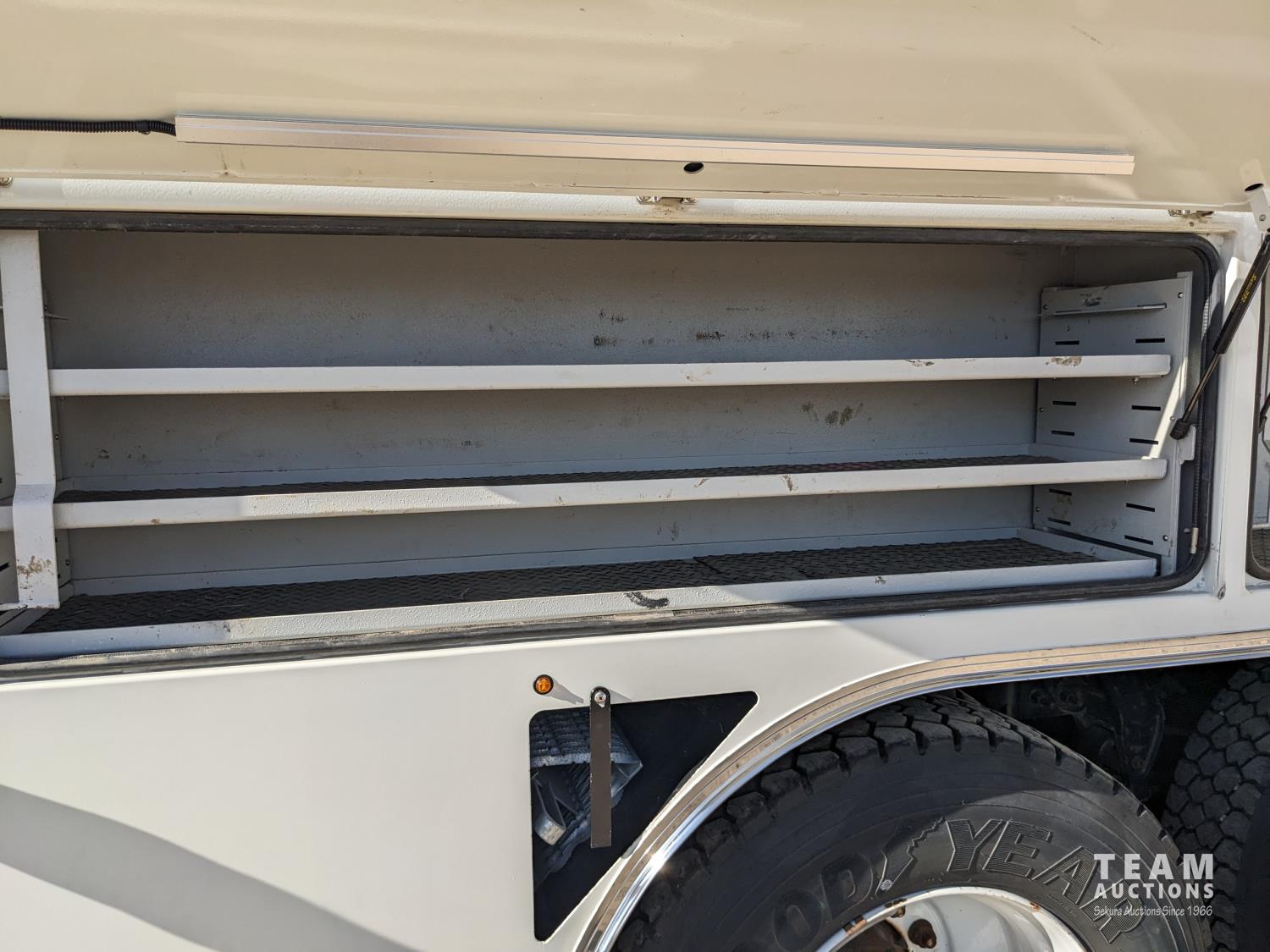 International 7.6 L 6 cylinder 300 HP diesel engine, automatic transmission, A/C, cruise control, air ride seats, radio, stereo, P/L, P/W, P/Mirrors electric brake controller, , air ride cab, General 21 ft service body, beacon lights, work lights, air ride suspension, 12,000 lb front axle, 40,000 lb rear axles, full lockers, 242 inch WB, rear pintle hitch, 11R22.5 front tires