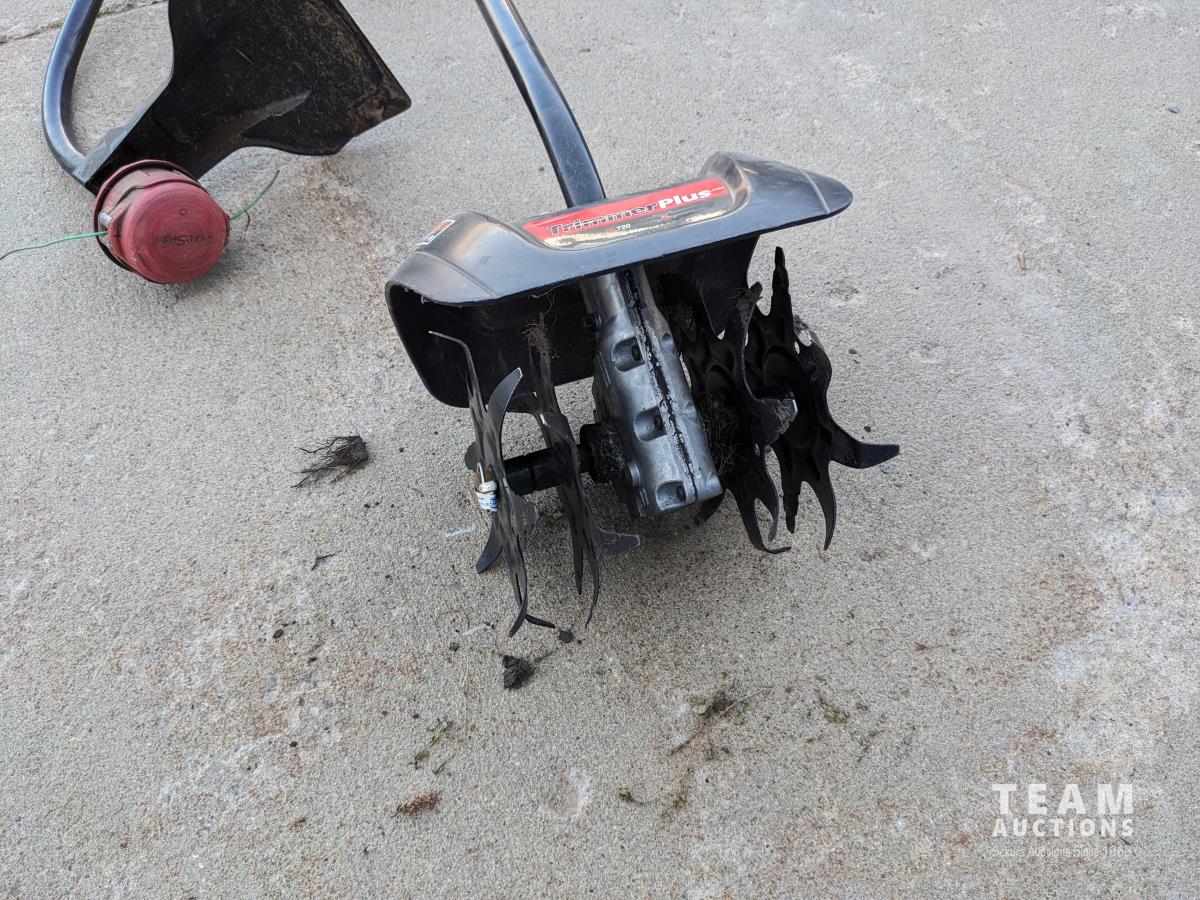 Grass trimmer attachment, rototiller attachment, 4 cycle gas engine, 110 volt electric start