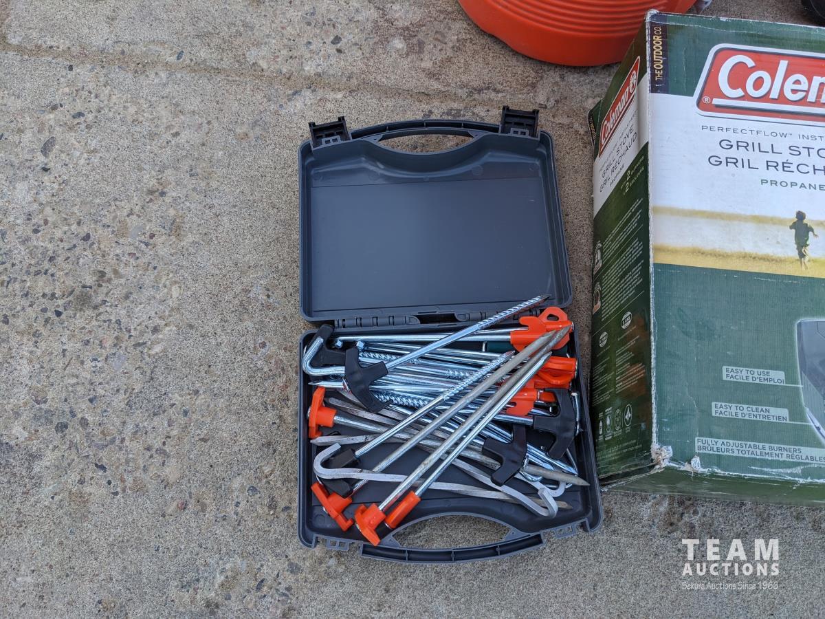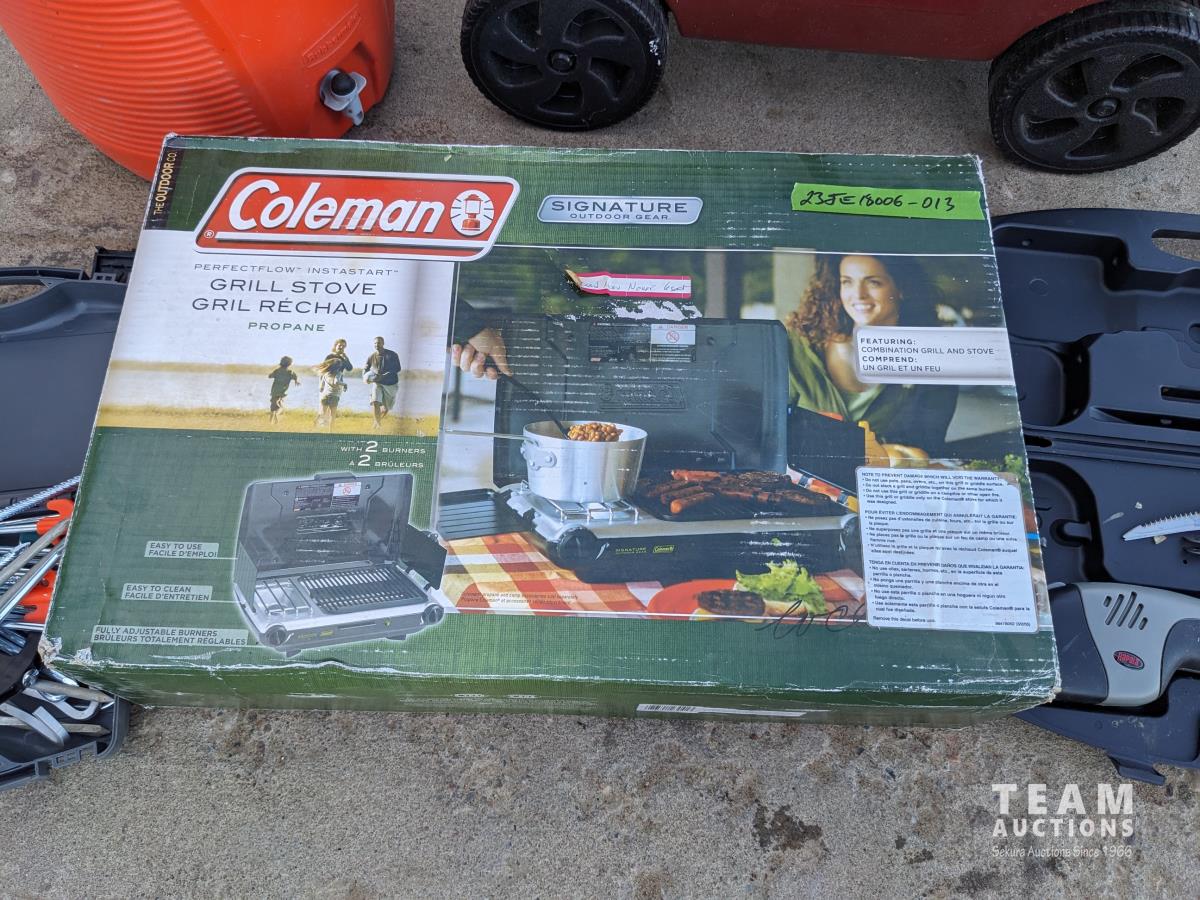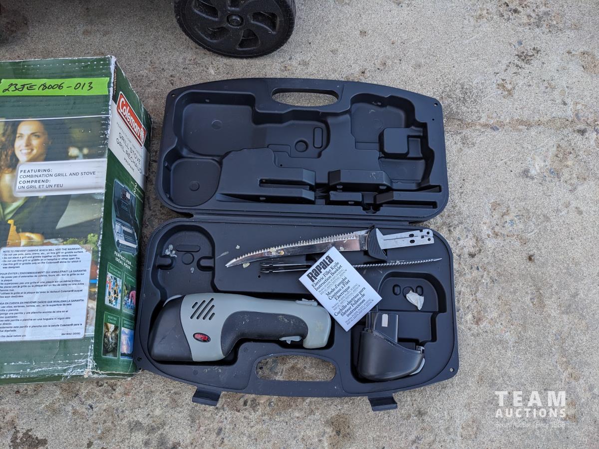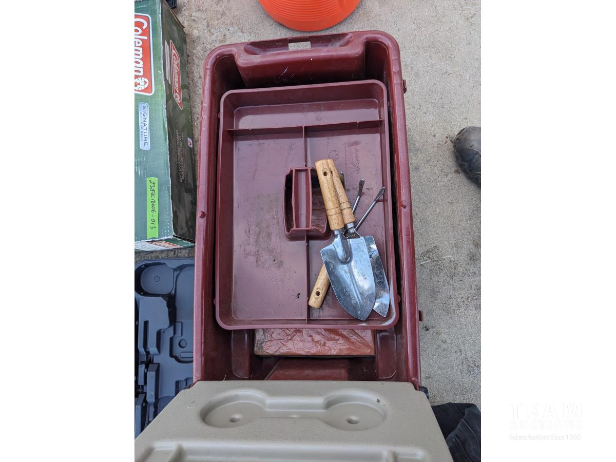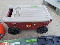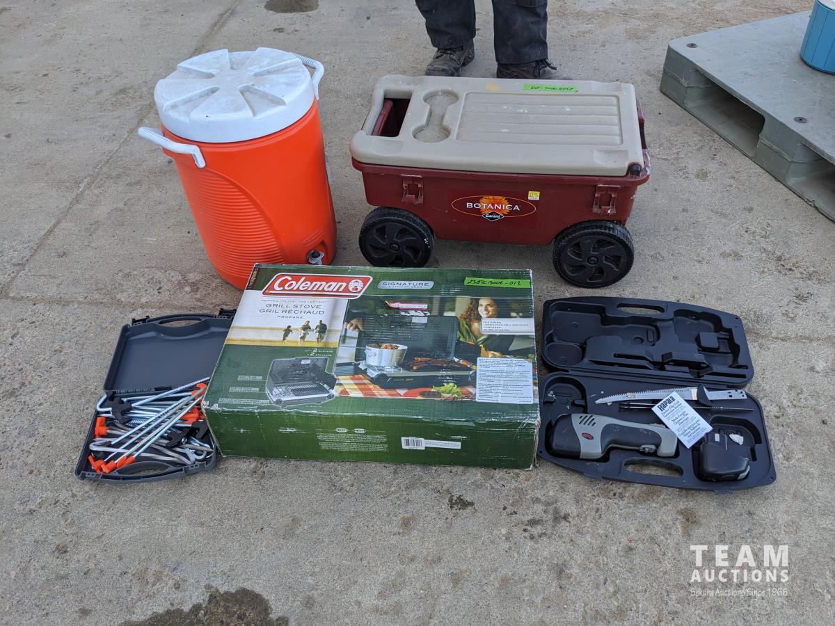 143 Water Cooler, 4 Wheel Garden Wagon, Coleman Stove, Cordless Knife