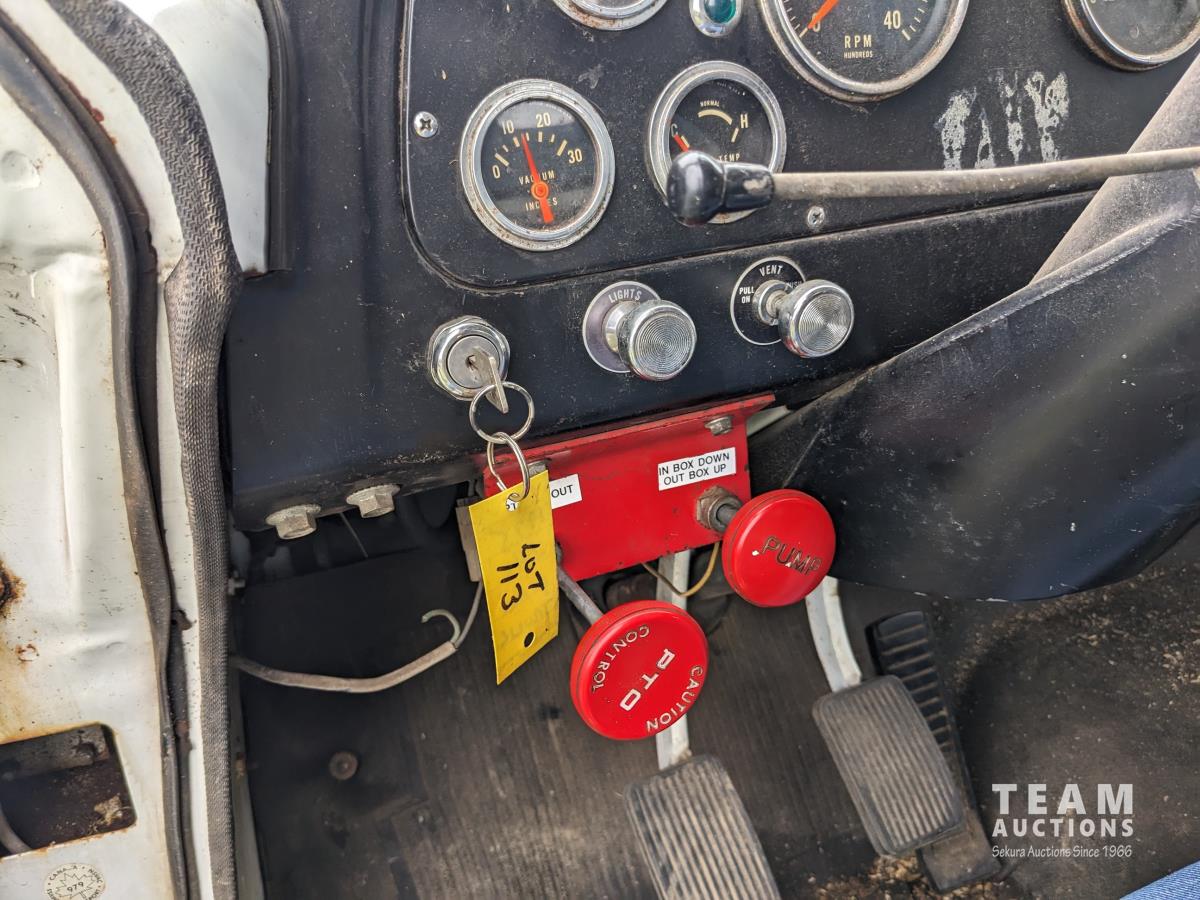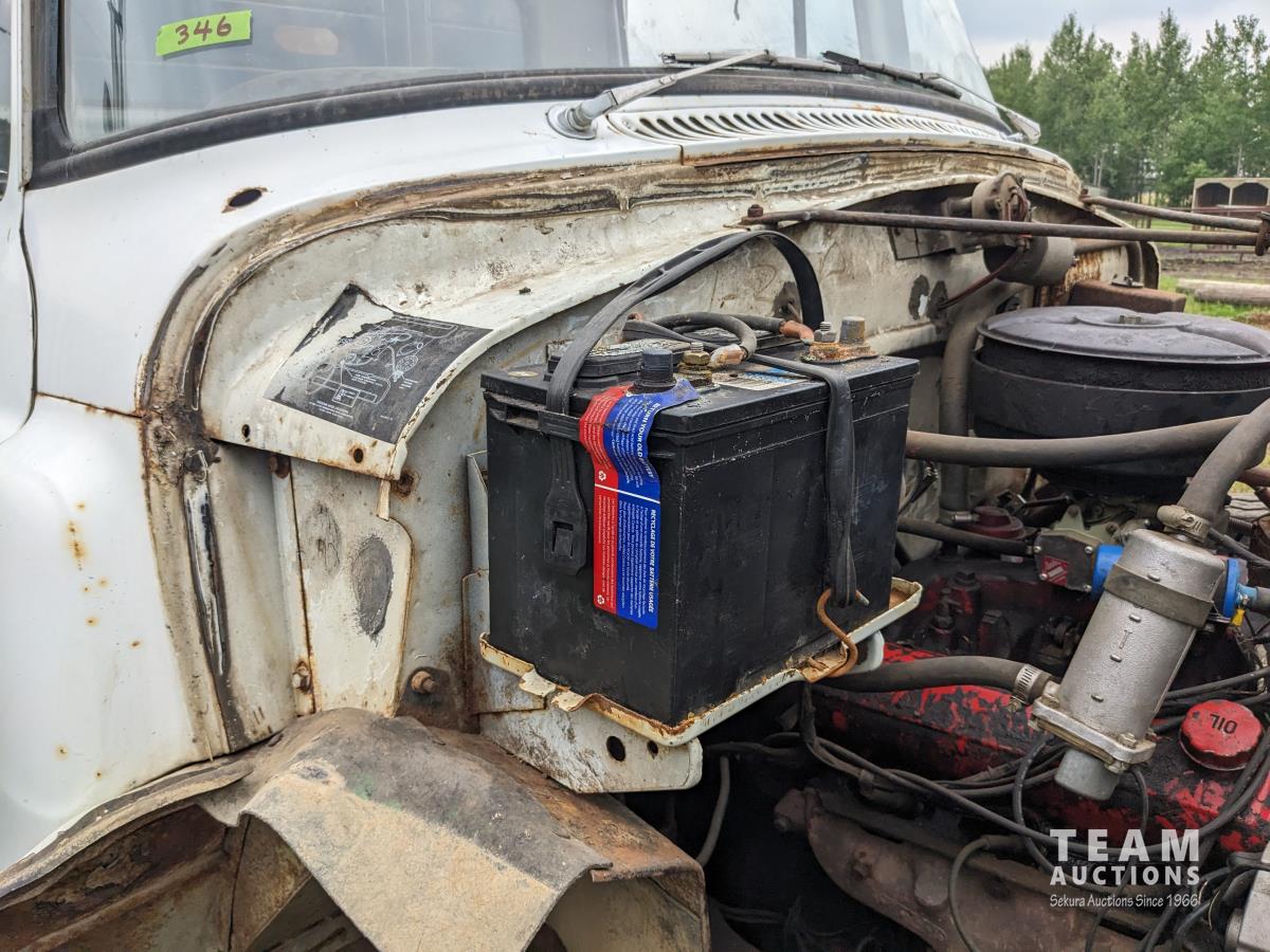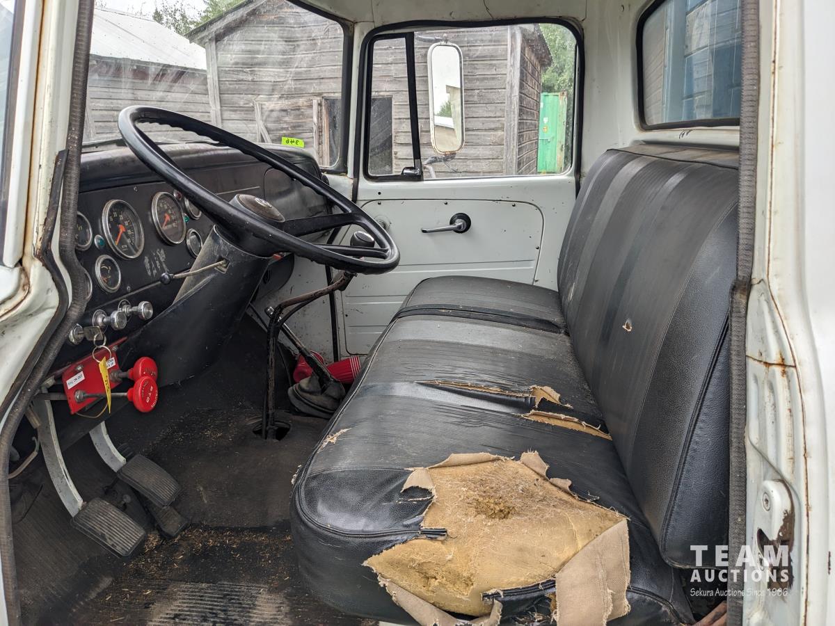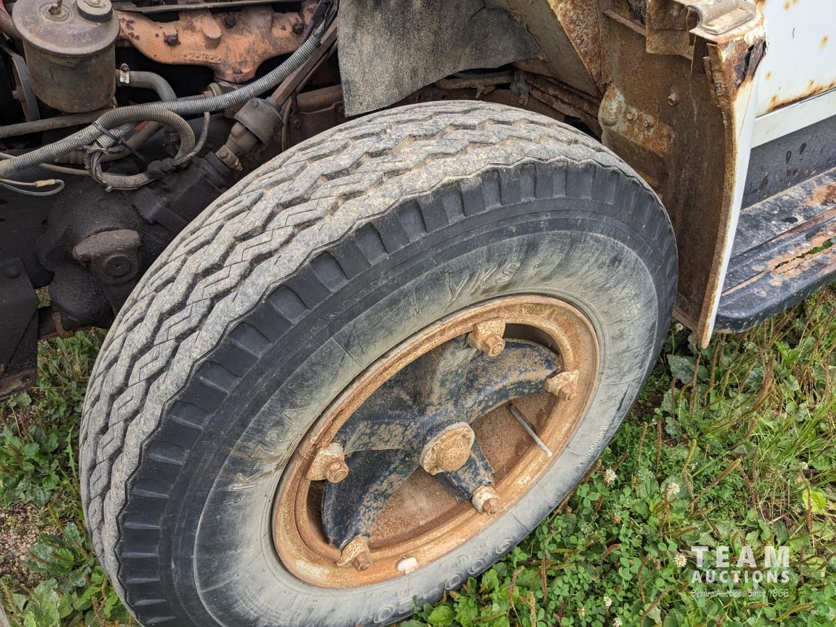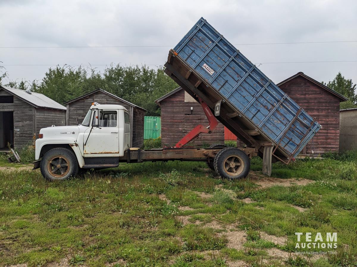 International V8 gas engine, 5 speed transmission, 15 ft box, hoist, single cylinder, spring suspension, 151 inch WB, 2 speed axle, 9.00-20 front tires, 8.25-20 rear tires