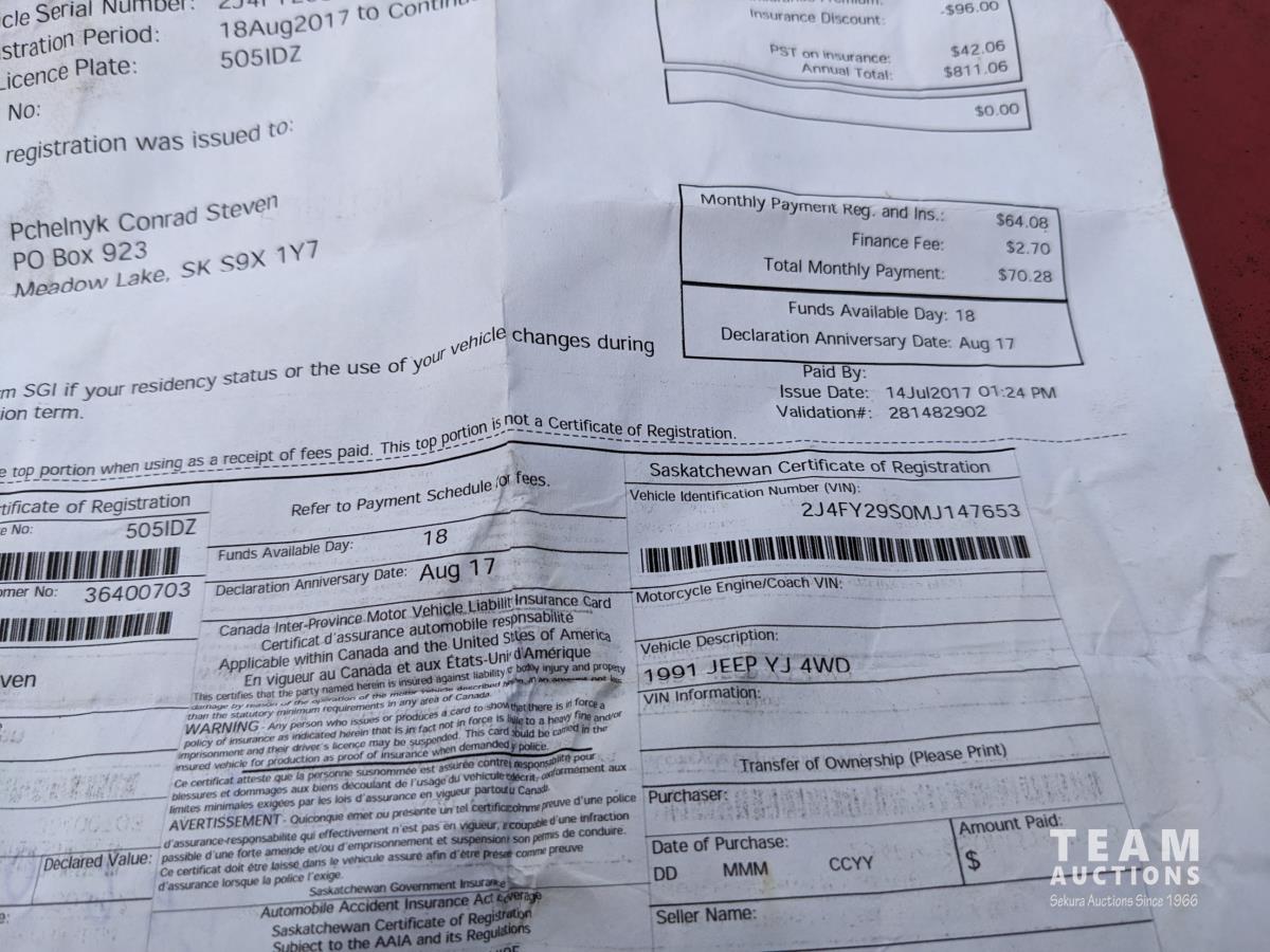 258 1991 Jeep YJ 4X4 Sport Utility Vehicle