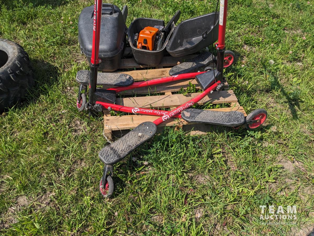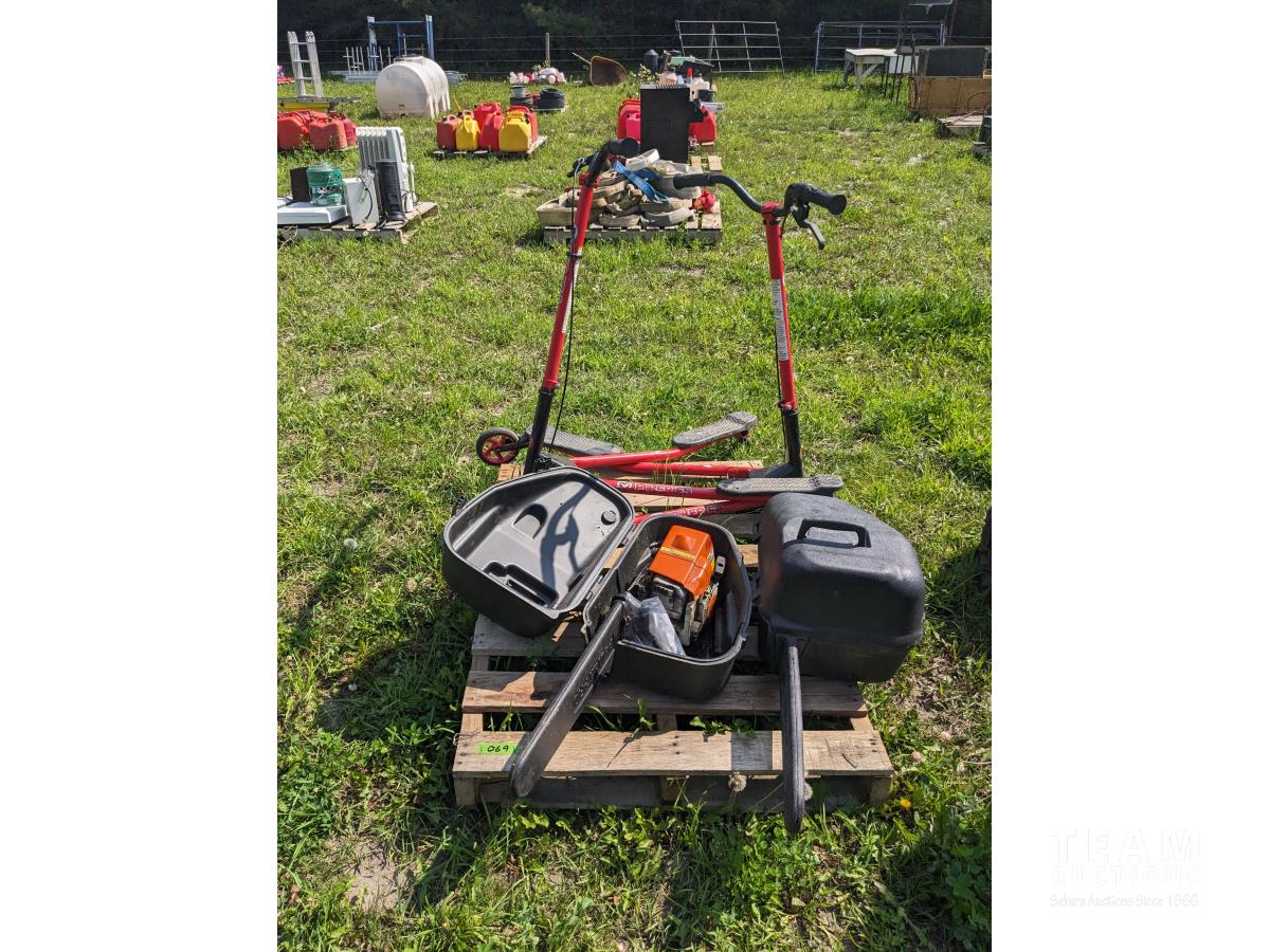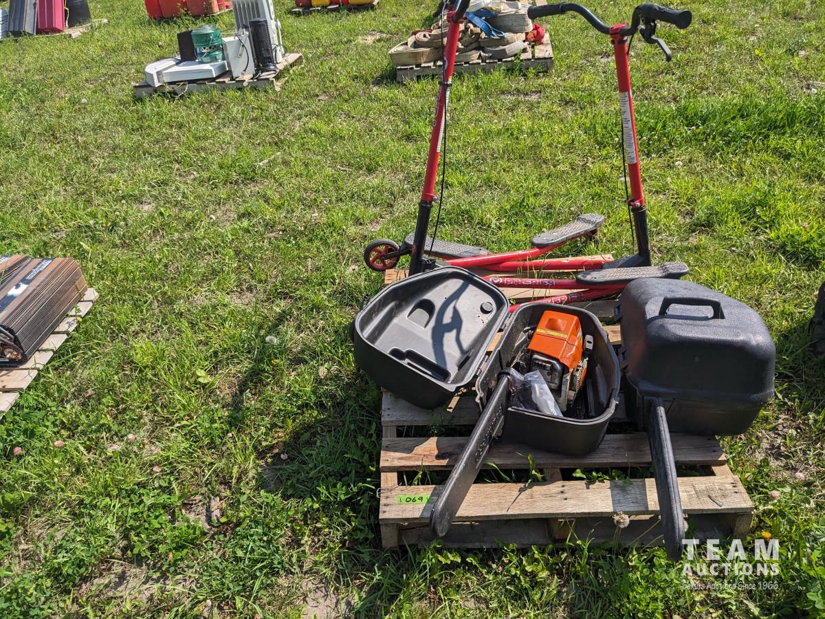 72 (2) 3 Wheel Scooters, Chainsaw Case, Stihl Chain Saw with Case