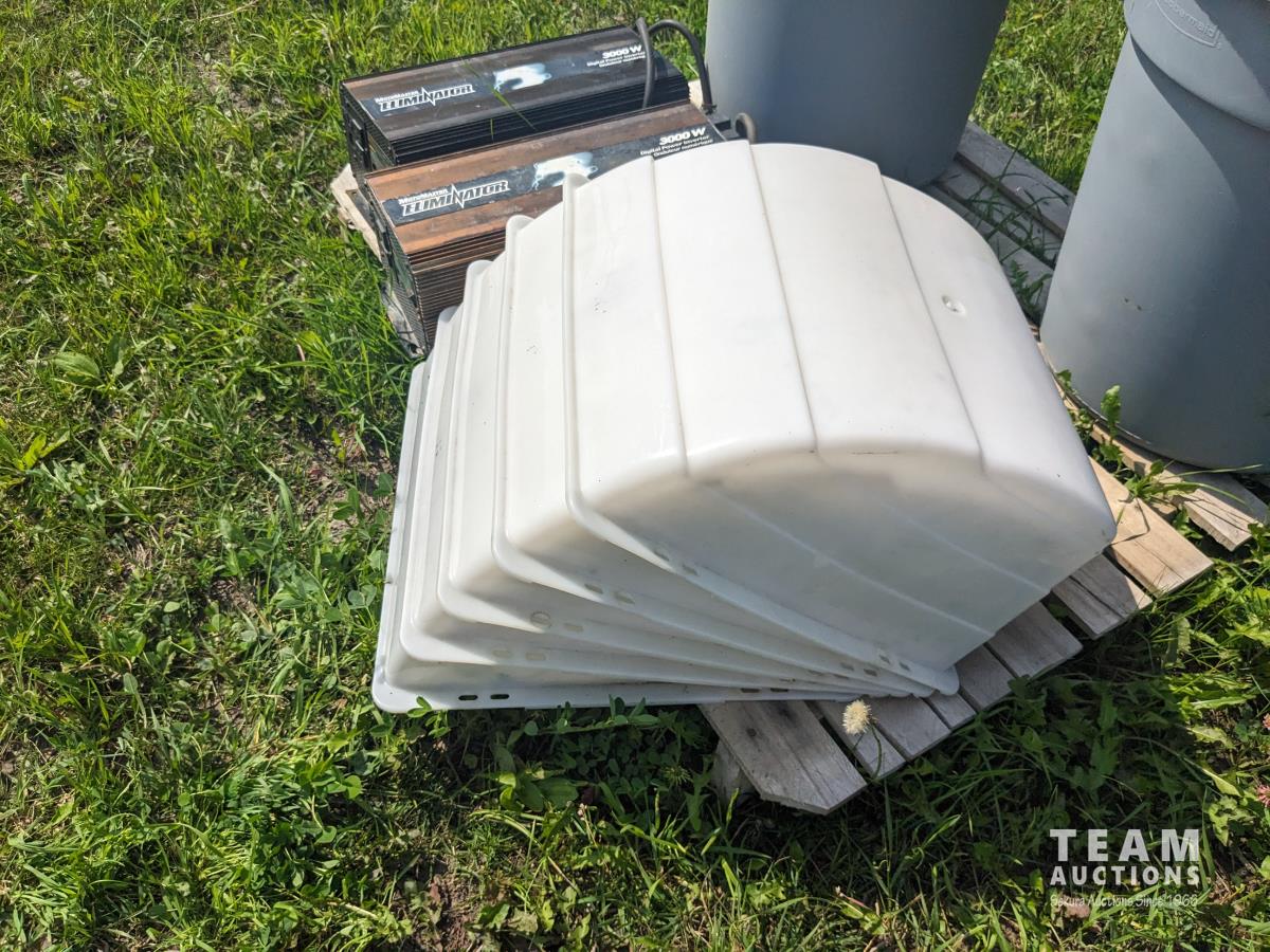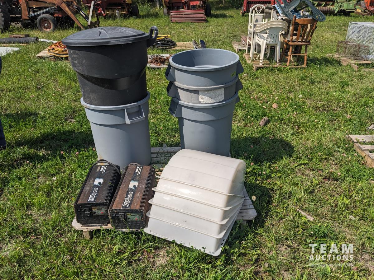 71 (2) Eliminator 3000W Invertors, (5) Poly Garbage Cans, Qty of RV Roof Vents