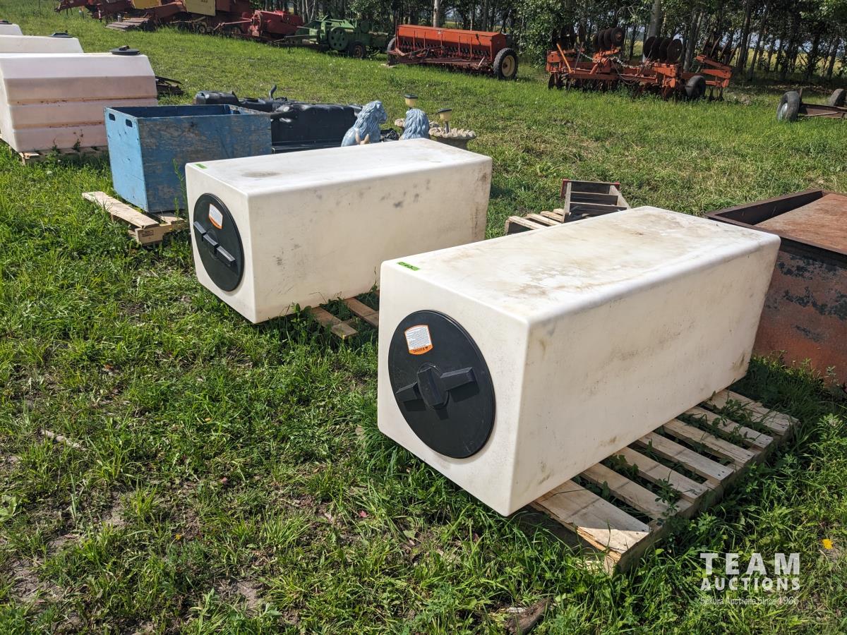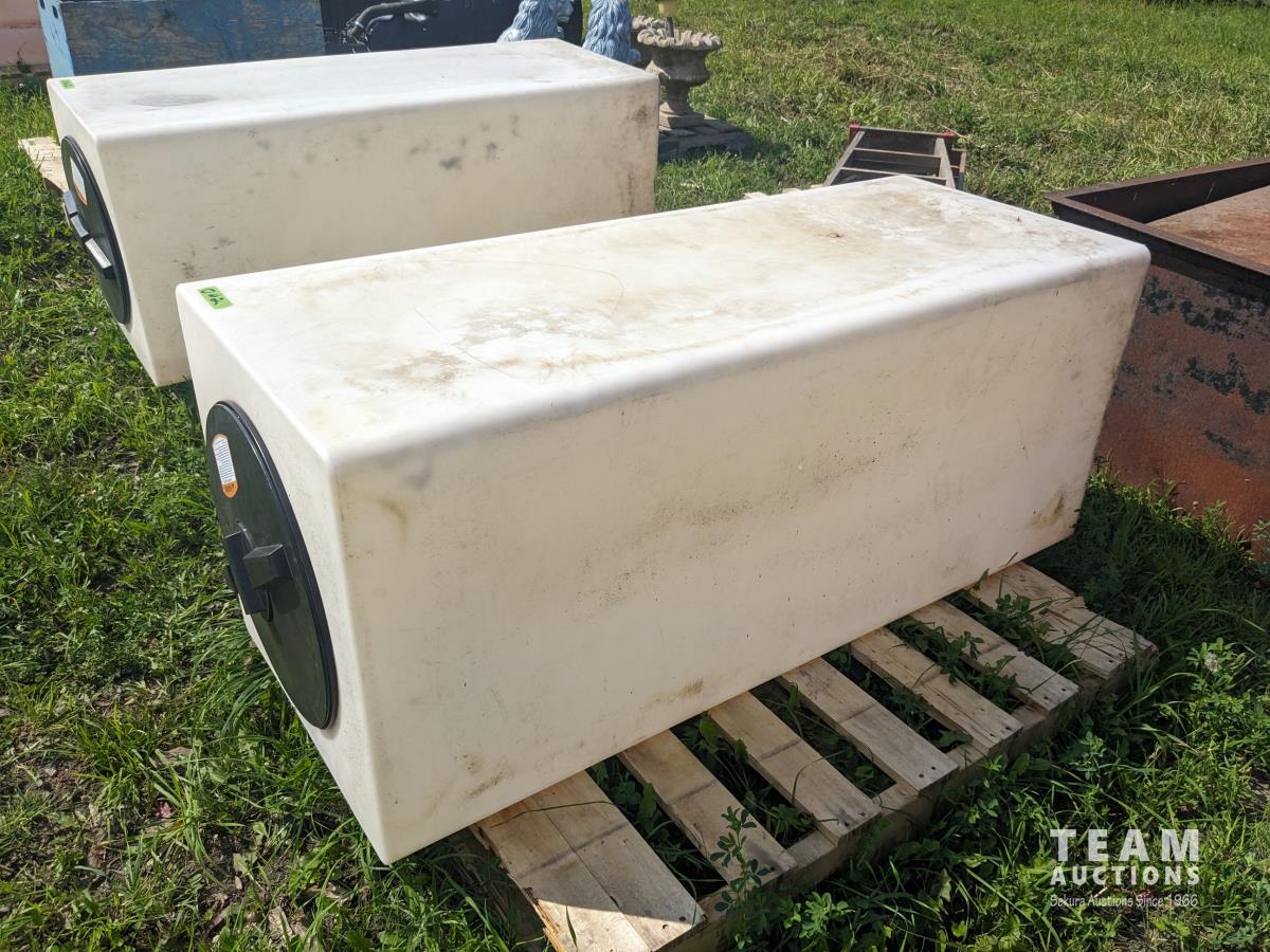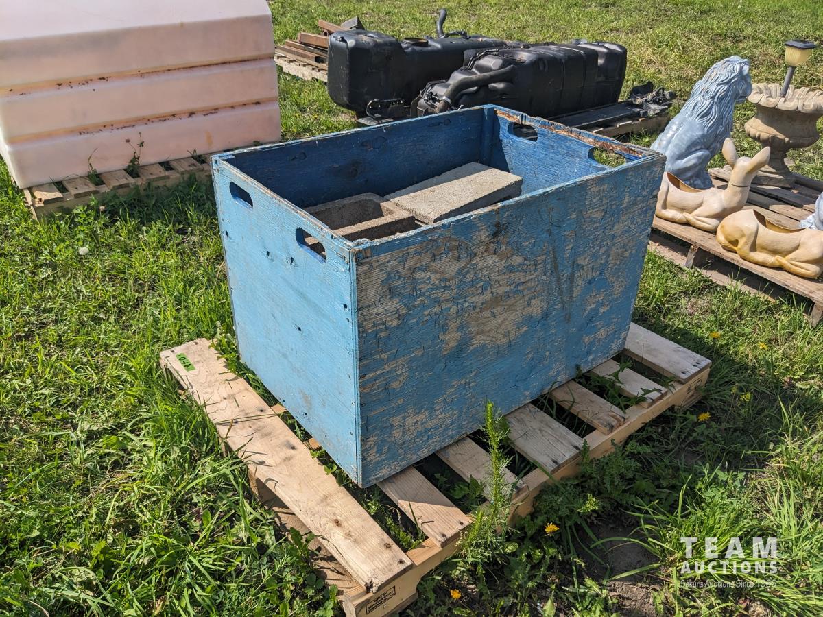 39 (2) Poly Tanks, (1) Wood Box with (7) Concrete Blocks
