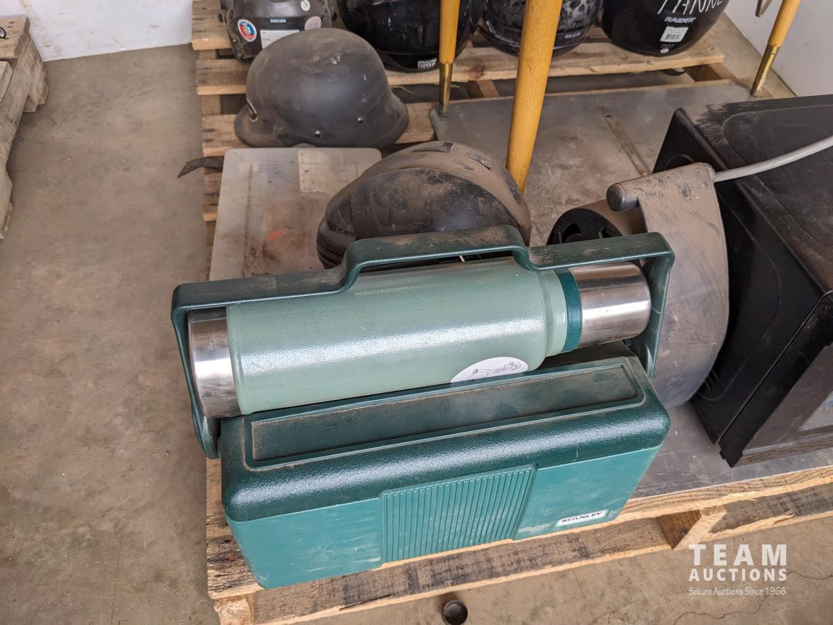378 (6) Helmets, Table, Microwave, Lunch Box, Thermos, Fishing Lures