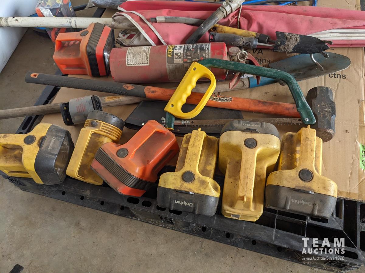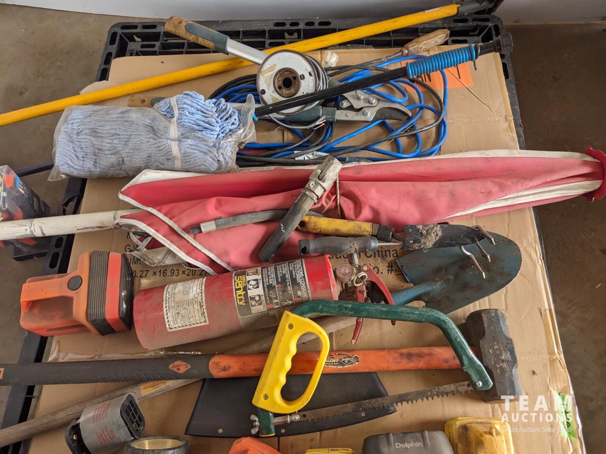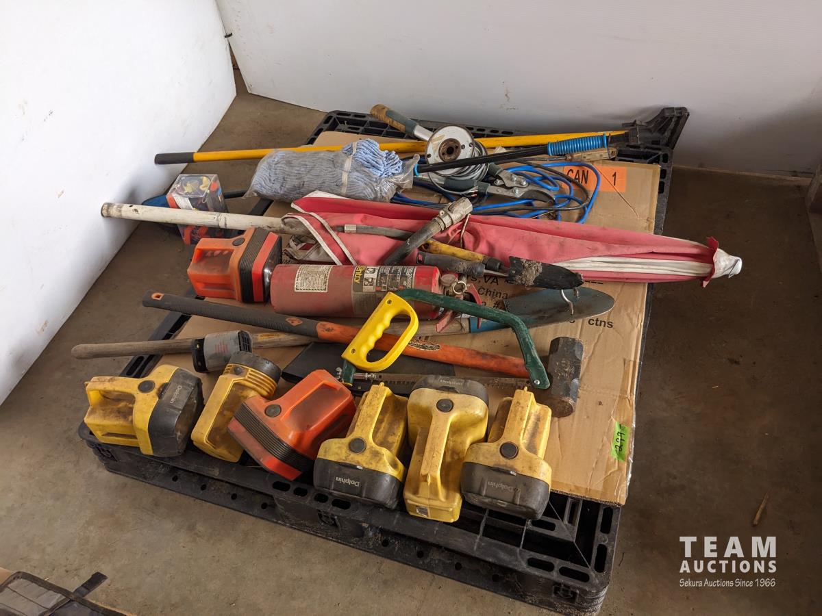 370 Assorted Flashlights, Garden Tools and Patio Umbrella