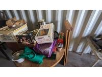Vintage RCA TV, wood tool box, household furniture, collector books, kitchen cookware, small cabinet, (4) tables, miscellaneous
