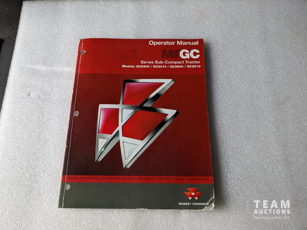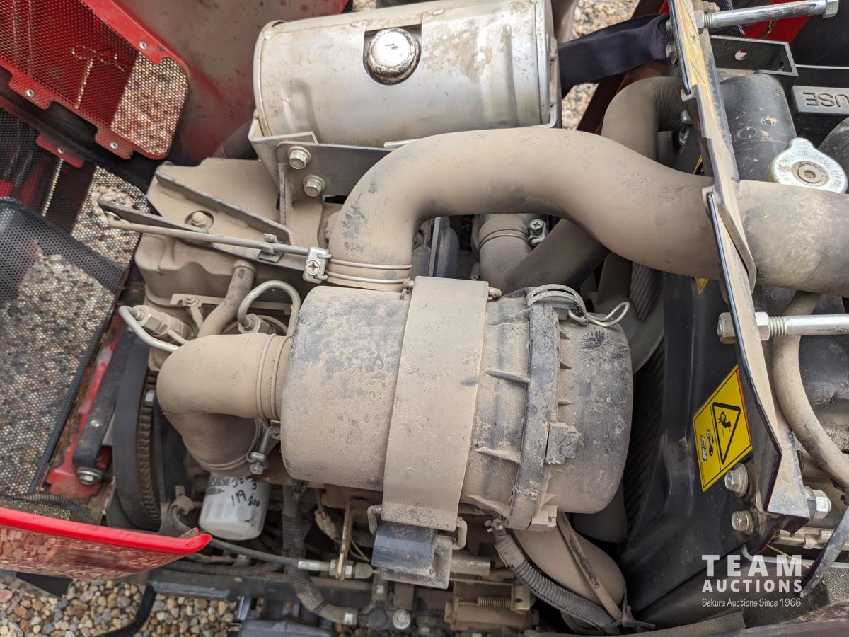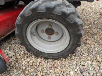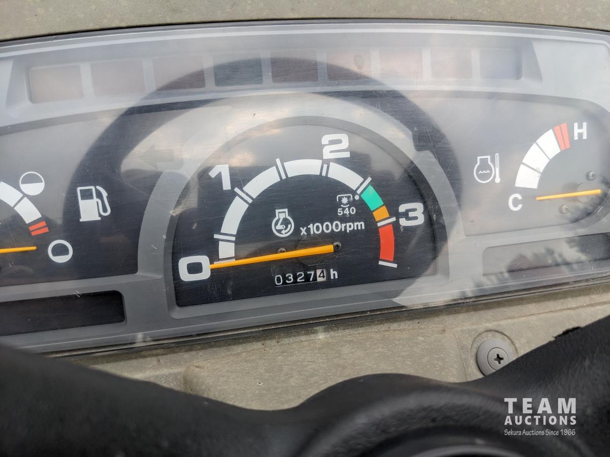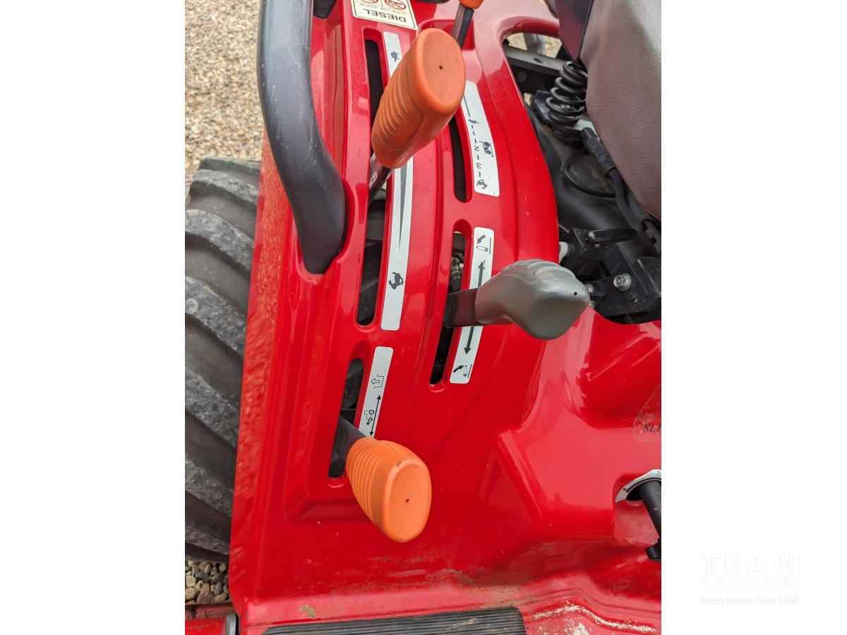 Massey Ferguson DL100 loader, 48 inch bucket, Iseki 1.1 L 3 cylinder 22.5 HP, diesel engine, 18.7 PTO HP, hydro 2 range transmission, 540 PTO, 3 point hitch, 18X8.50-10 front tires, 26X12.00-12 rear tires, tire chains, MF2325 60 Inch mower deck