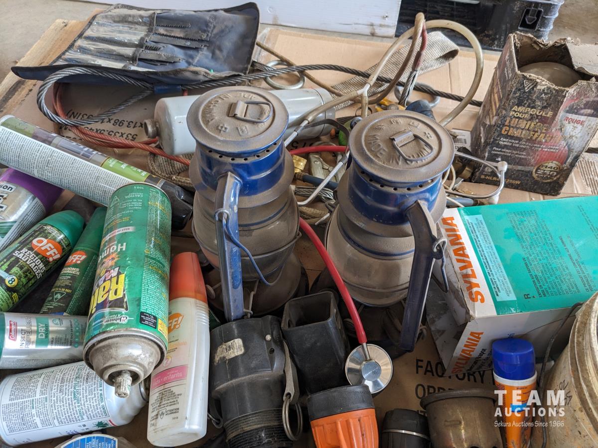 377 Misc Hand Tools, 7 Inch Fan (Unused), (2) Kerosene Lamps