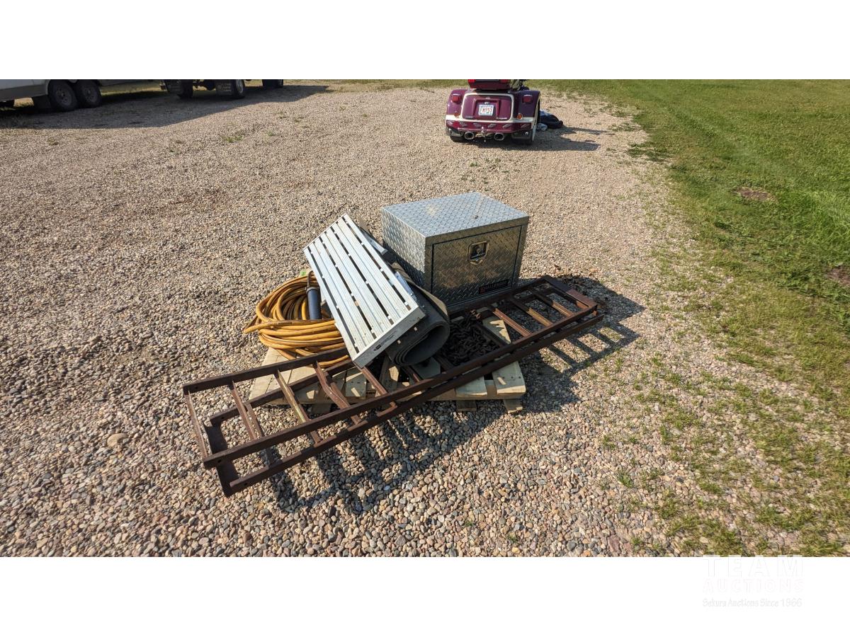 Mastercraft Step Platform, grease gun, Stanley Fat Max hose, rool of foam, Challenger under mount storage box 24 inch l X 18 inch d X 18 ft h