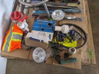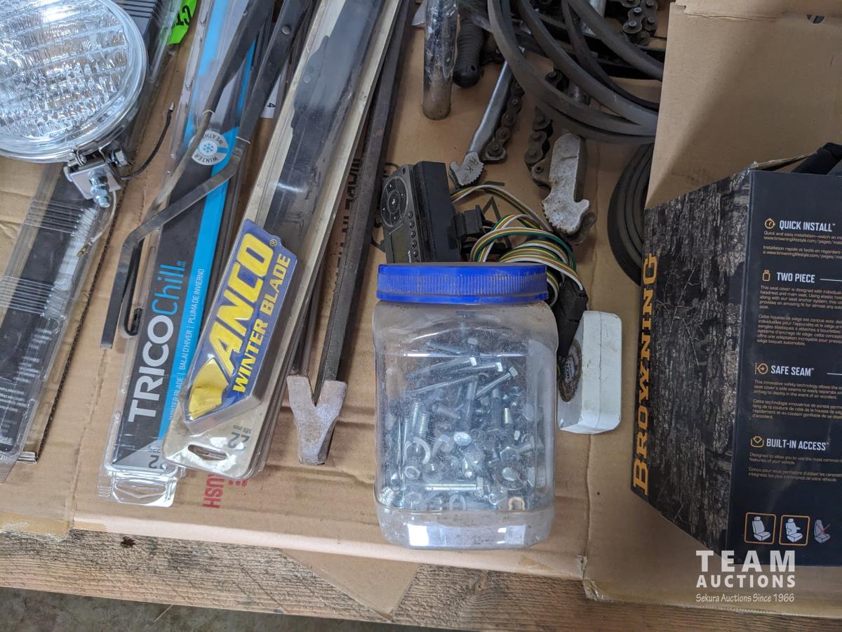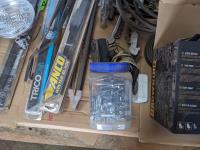 Harley Davidson Bar Stool, crowbar, seat covers, spot lights, (3) 22 inch wiper blades, (2) 20 inch wiper blades, miscellaneous