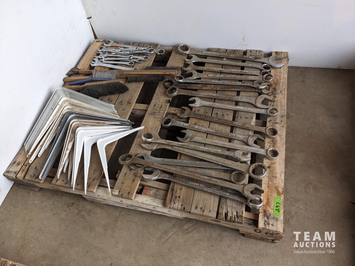 368 Qty of Combination Wrenches, Shelf Brackets and Brushes