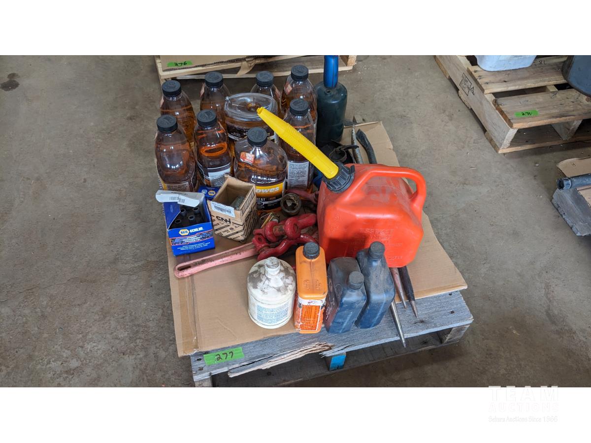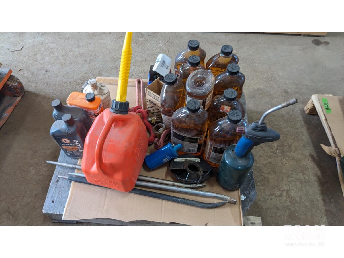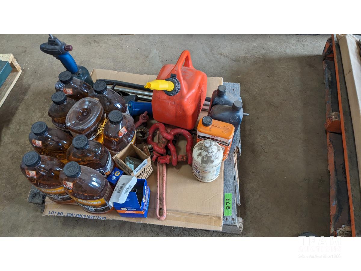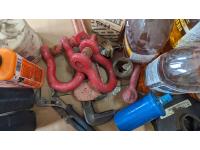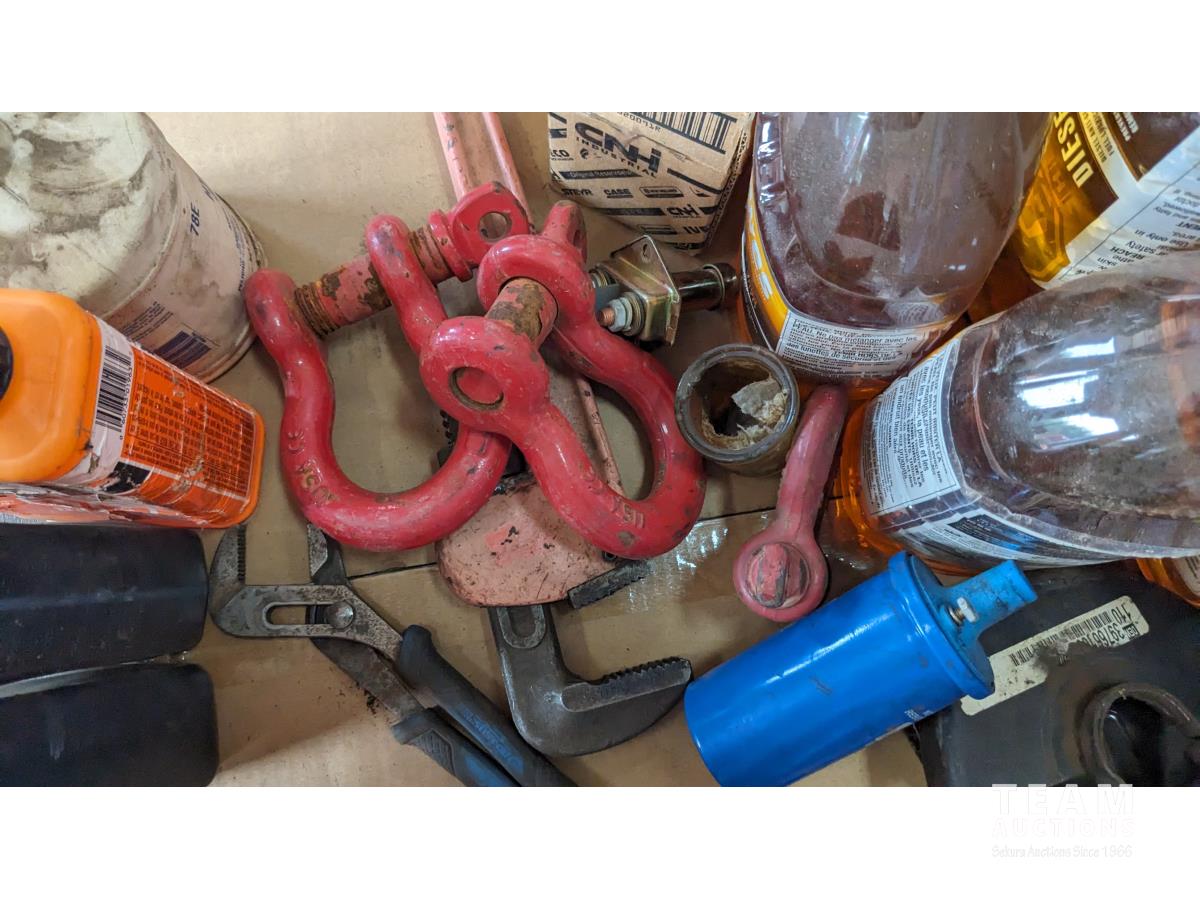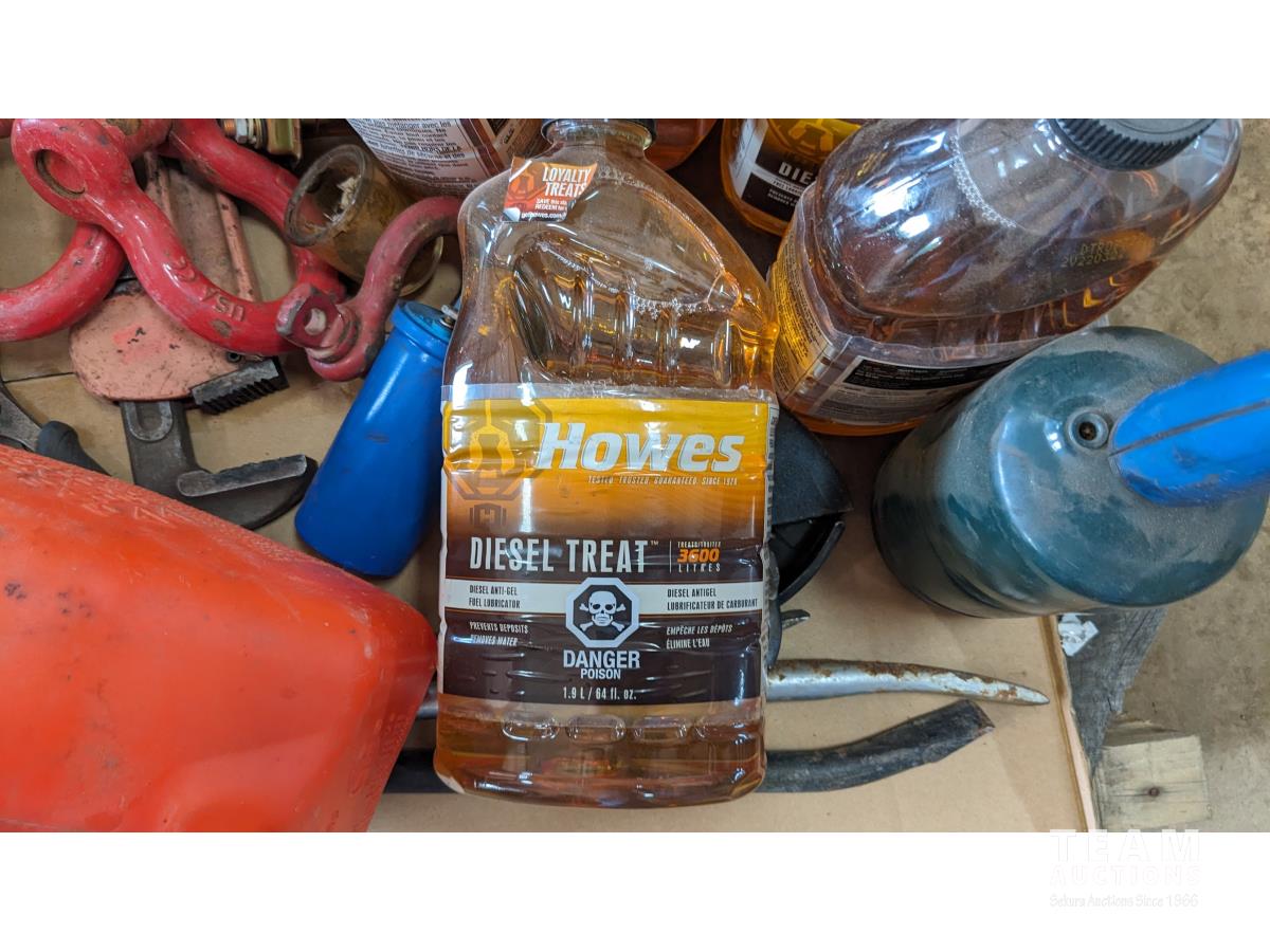 (9) 1.9L Howes diesel treatment, propane torch, shop fluids, pry bars adjustable wrenches, (3) shakles