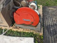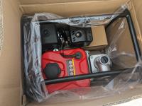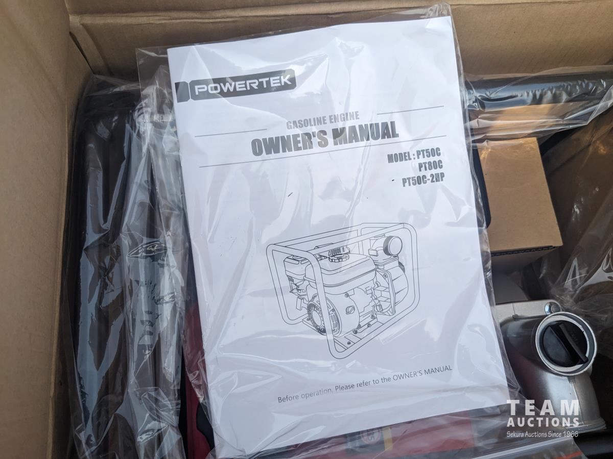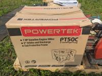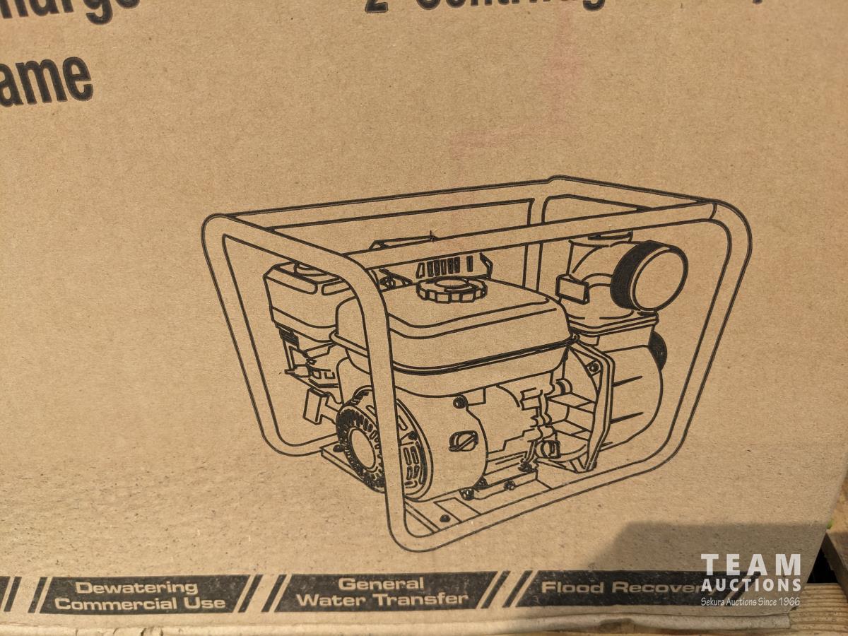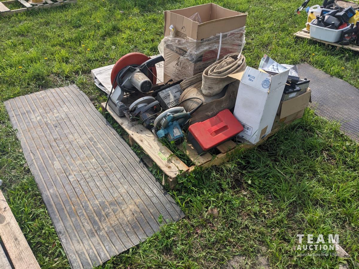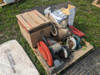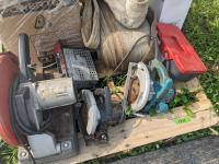 (2) circular saws, 14 inch chop saw, (6) 2 way radios, aviation compass, lifting strap, unused 7 HP Powertek 2 inch water pump with gas engine