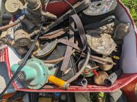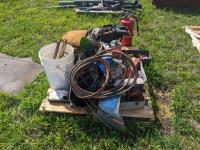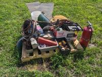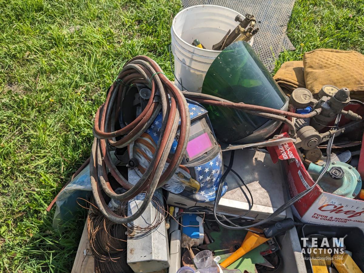 Helmets, (2) torches, assorted welding items