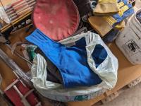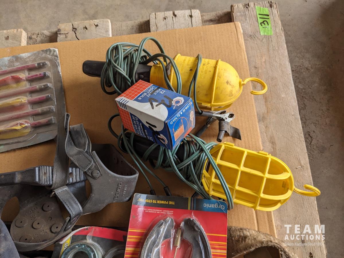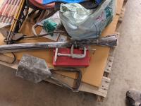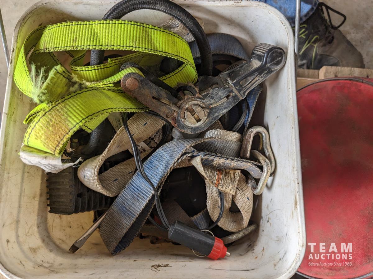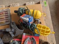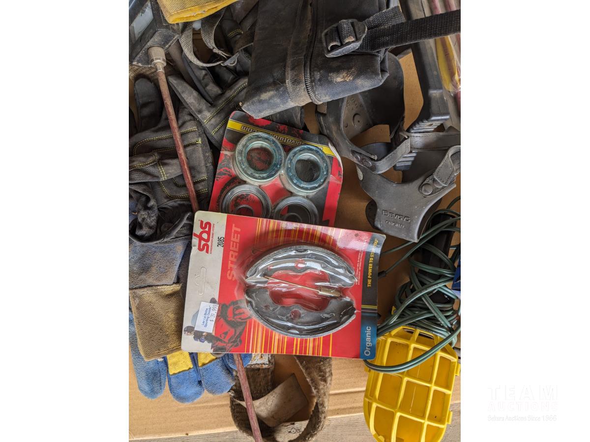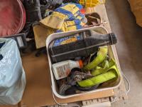 Cross bow arrows (unused), Crossbow, (2) trouble lights, Haymatic H20 tester, folding shovel, knife and tool sharpening kit, gloves, miscellaneous items