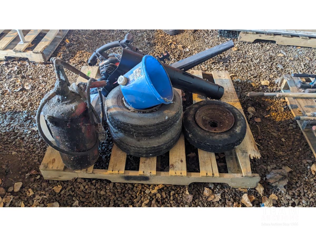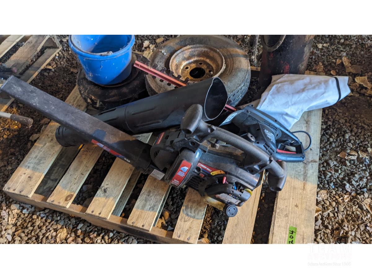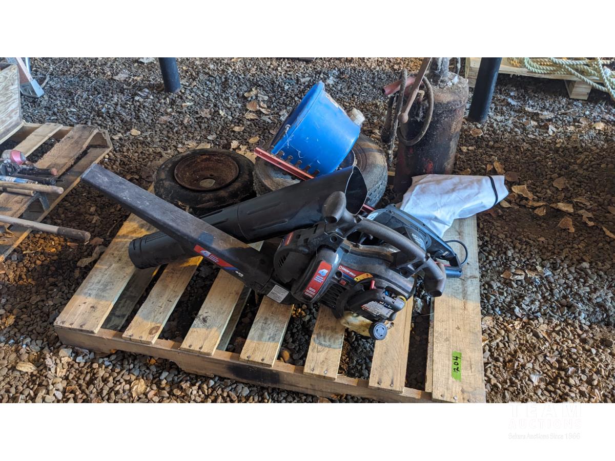 205 Troybilt Gas Leaf Blower, Jobmate Electric Hedge Trimmer, (3) Small Wheels