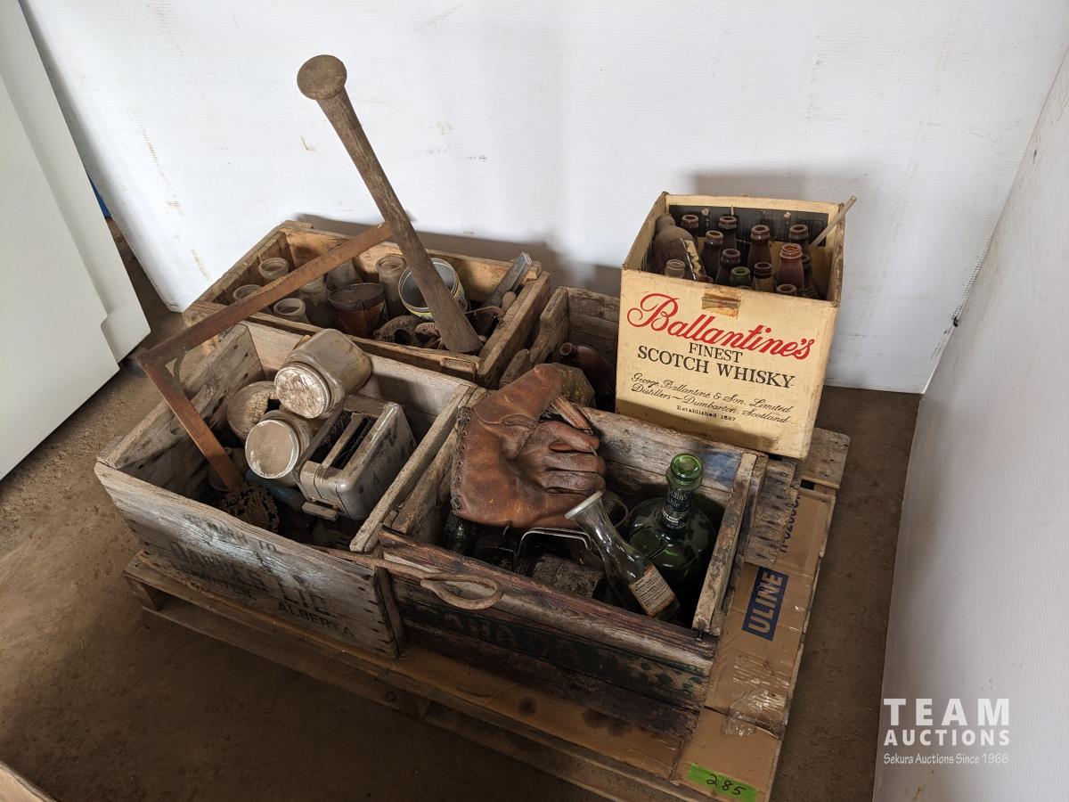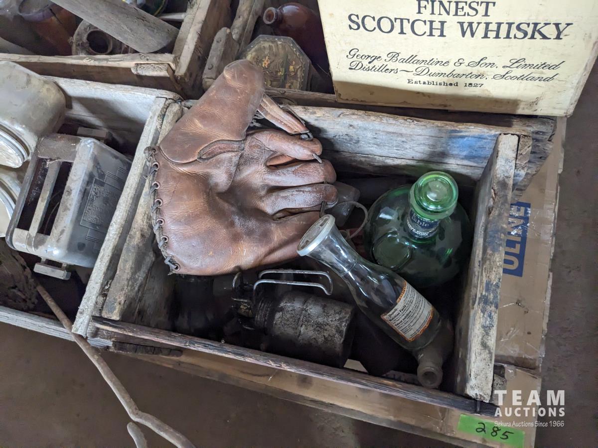 354 Vintage Bottles, Baseball Bat, Baseball Glove, Police Service Badge