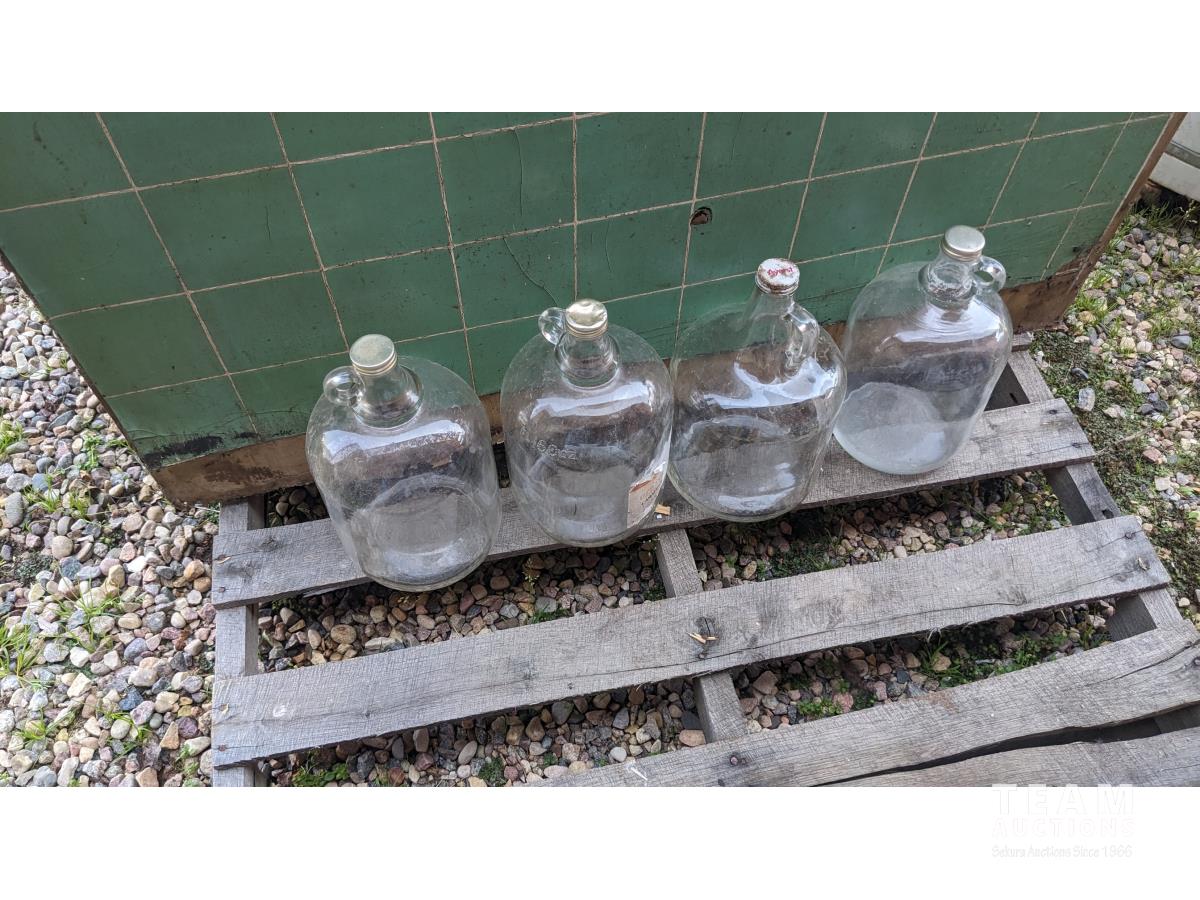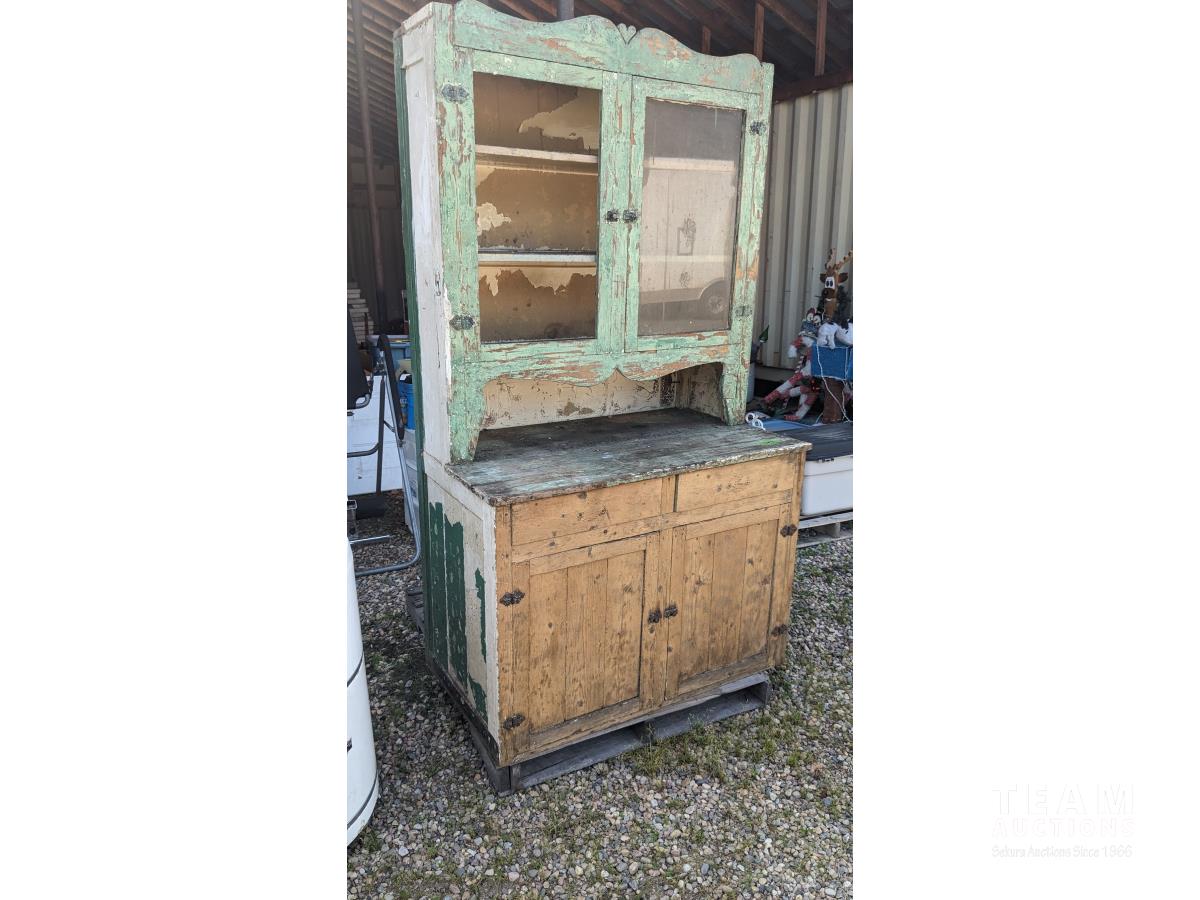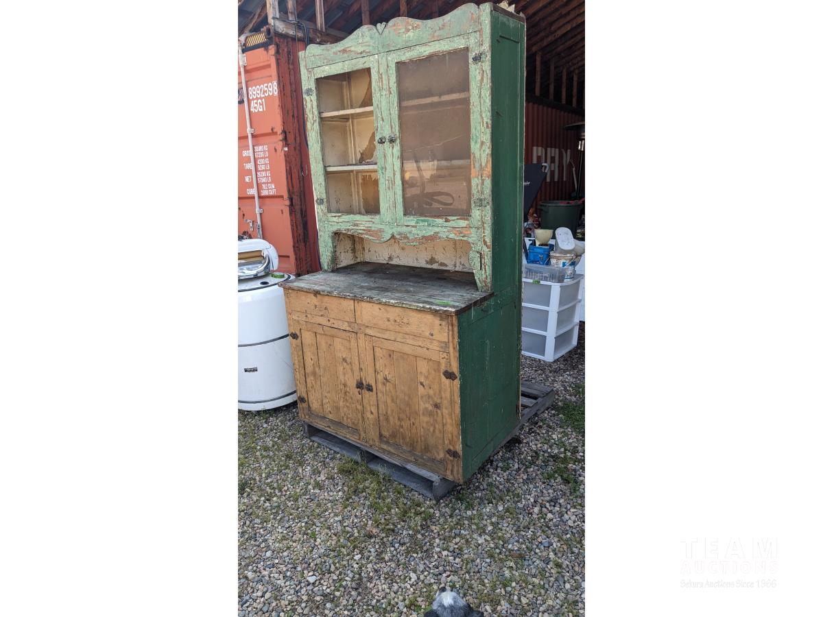 196 Vintage Kitchen Cabinet, (4) Vintage Jugs