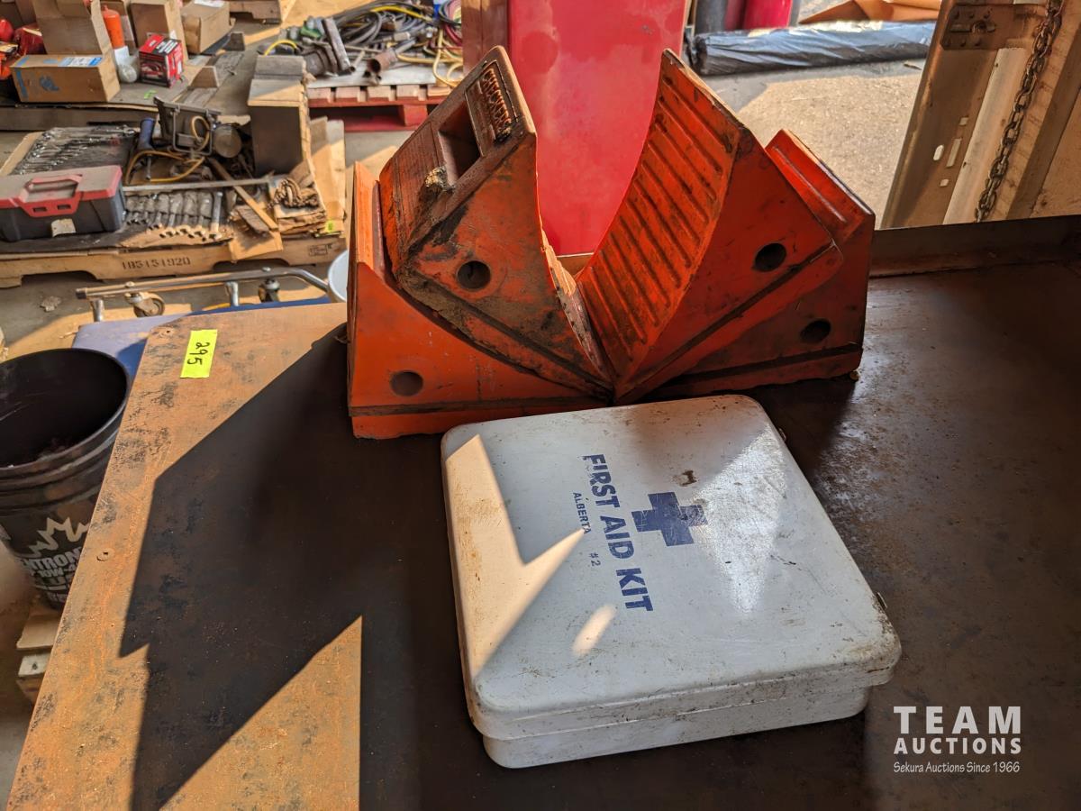 (4) wheel chocks, first aid kit, bench 48 inch wide x 39 inch deep X 36 inch high